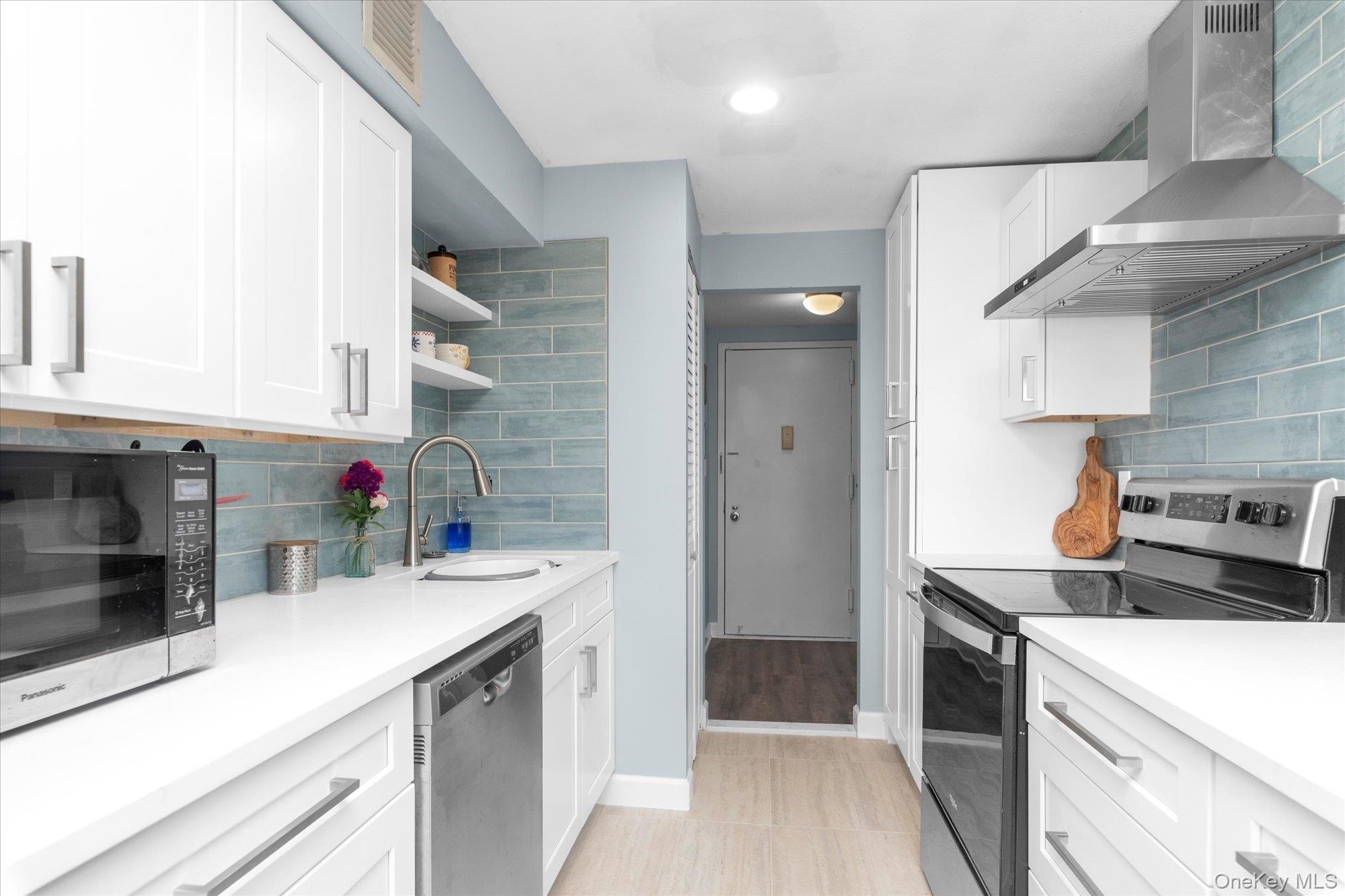 Beautiful 2-Bedroom, 2-Bath with Stunning NYC Views. Welcome to this spacious and sun-filled apartment featuring breathtaking New York City views from your private terrace. The home offers a brand-new open concept kitchen with quartz countertops, range hood, modern appliances (including dishwasher), and brand new GE washer/dryer. The kitchen is accented with sleek tile flooring and a new Friedrich A/C unit ensures comfort year-round. The primary bedroom boasts a walk-in closet, and the apartment provides plenty of additional storage throughout. One parking spot is included for your convenience. Located in a desirable building with great amenities, including a gym and party room on the same floor, this residence offers both comfort and lifestyle. Enjoy everything Long Beach has to offer-from the iconic Boardwalk and Atlantic Ocean to local shopping, dining, and the LIRR for an easy commute.