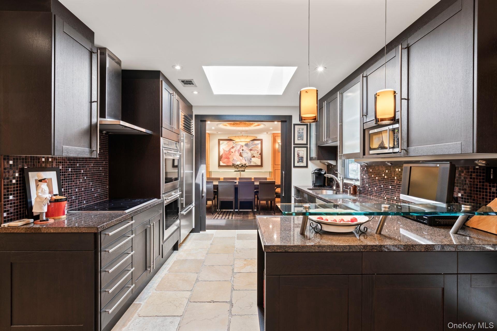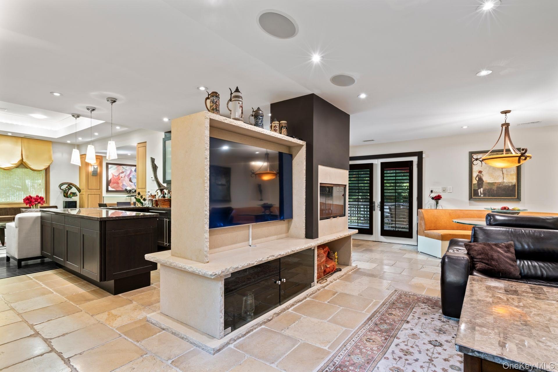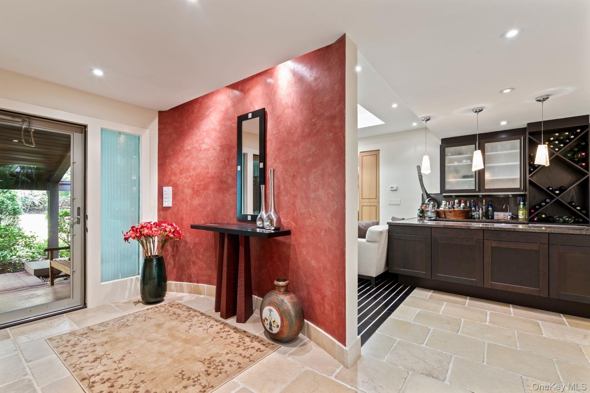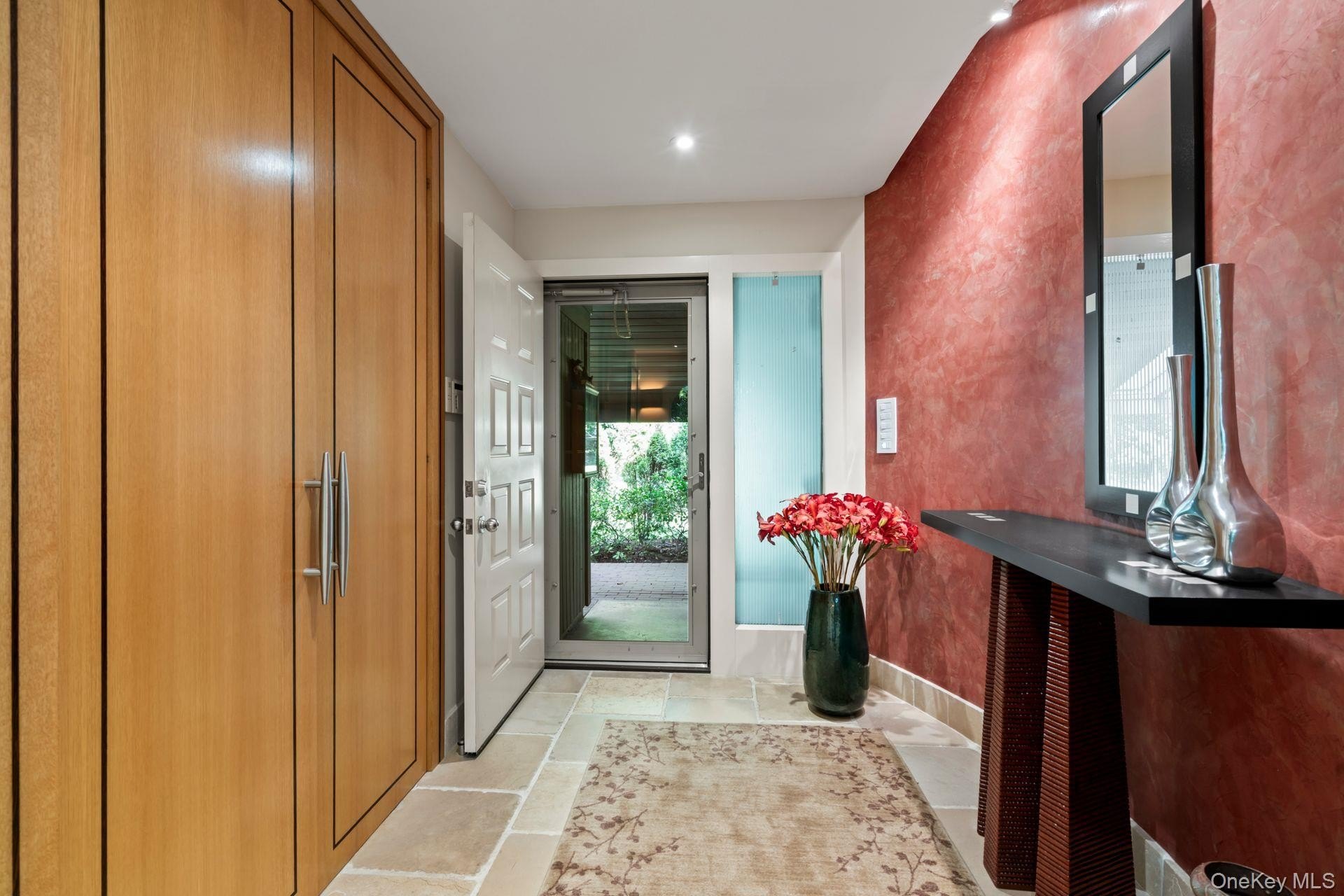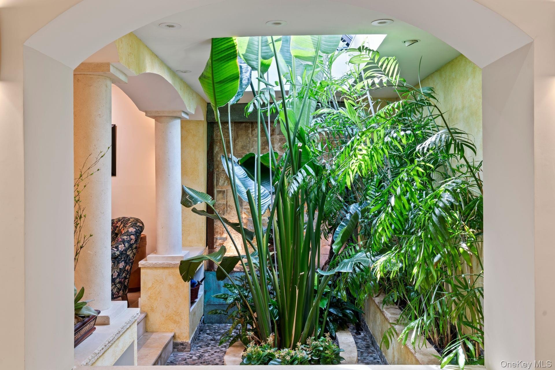 Surrounded by expansive greenery and a wrap around Trex deck, 234 Hamlet Drive is an end unit Ranch with three bedrooms and two and a half baths. Interior is sleek and sophisticated: open floor plan offers spacious rooms; superb materials and workmanship; an eclectic blend of stone and hardwoods; European cabinetry and built-ins throughout! A plant filled indoor atrium features it's own sprinkler and a waterfall! There is a wet bar in the foyer for hosting. Kitchen, with its high-end appliances, connects the formal dinning room to the less formal eating and living areas, providing efficiencies and additional ease of entertaining or quiet enjoyment! Primary bedroom suite offers many built-ins and two spacious walk in closets. A large soaking tub and separate shower are features of the light infused bathroom. Of the two additional bedrooms, one is used as an office; the other, has a "Murphy" bed. The gated community of The Hamlet in Jericho and this California ranch in particular, have so much to offer! Not to be missed.