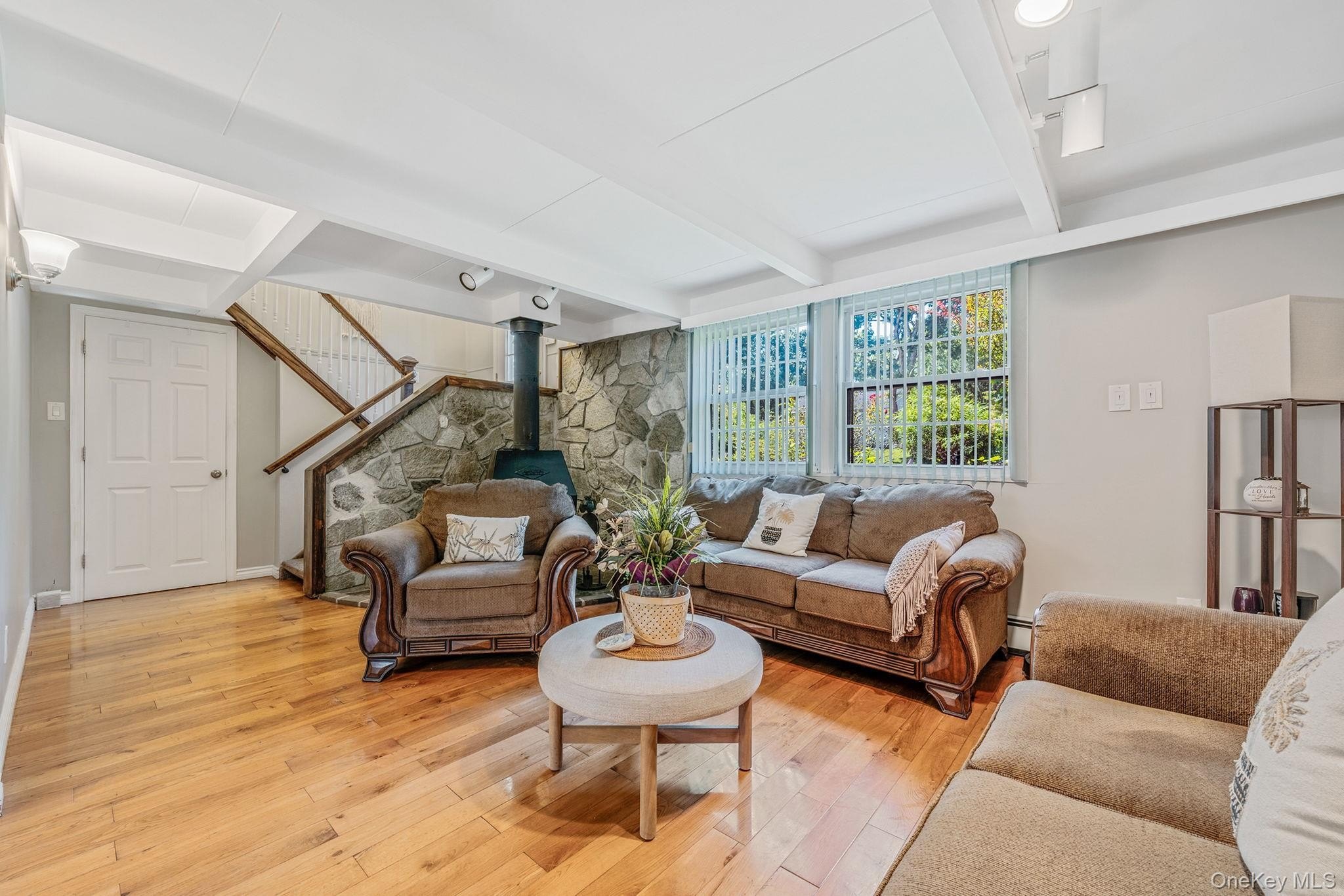 Welcome to 27 Split Cedar Drive, Islandia! This well sought Hi-Ranch style home in the heart of Islandia blends comfort, opportunity and could be yours. The spacious four bedroom, two bathroom home offers over 1,900 square feet of living space designed for both relaxation and functionality. The main level features hardwood floors throughout, a bright recently remodeled eat in kitchen and a cozy living room anchored by a fireplace that invites gatherings year-round. Beyond the kitchen you'll find a great space for entertaining guests, dining and lounging. On the second level are four generous sized bedrooms and own full bathroom. As you travel out the rear to the backyard a beautiful patio set out in a mature landscape and private sitting area. The home enjoys proximity to local schools, shopping and parks making commuting and daily living convenient. Whether you're looking for your first home, room to grow or a place to personalize, 27 Split Cedar Drive delivers the space, setting and charm you've been searching for.