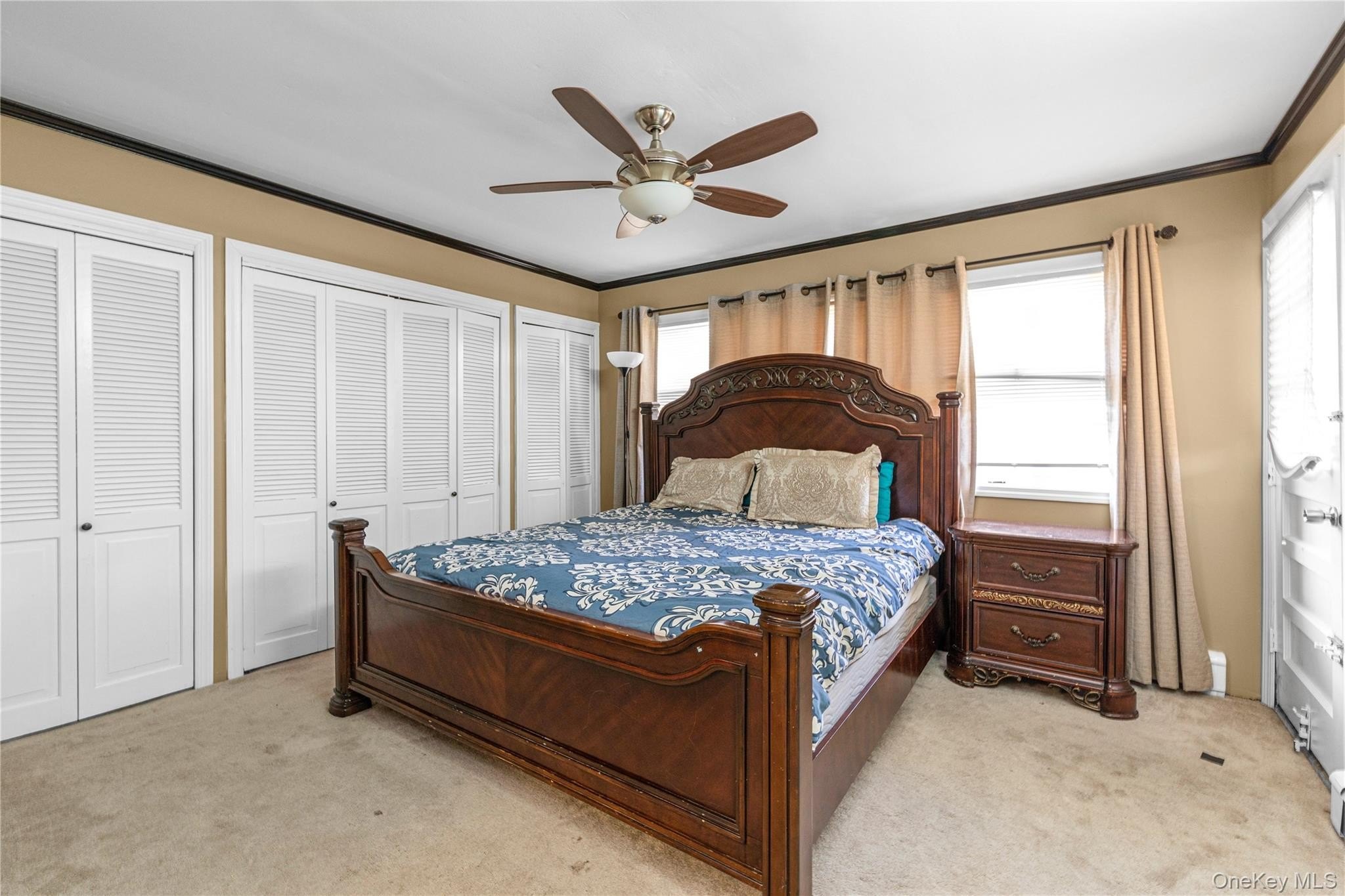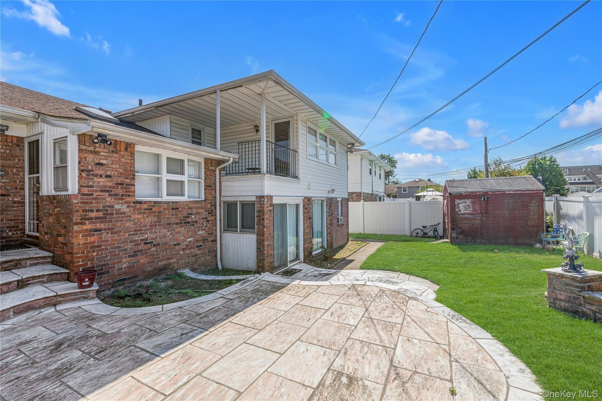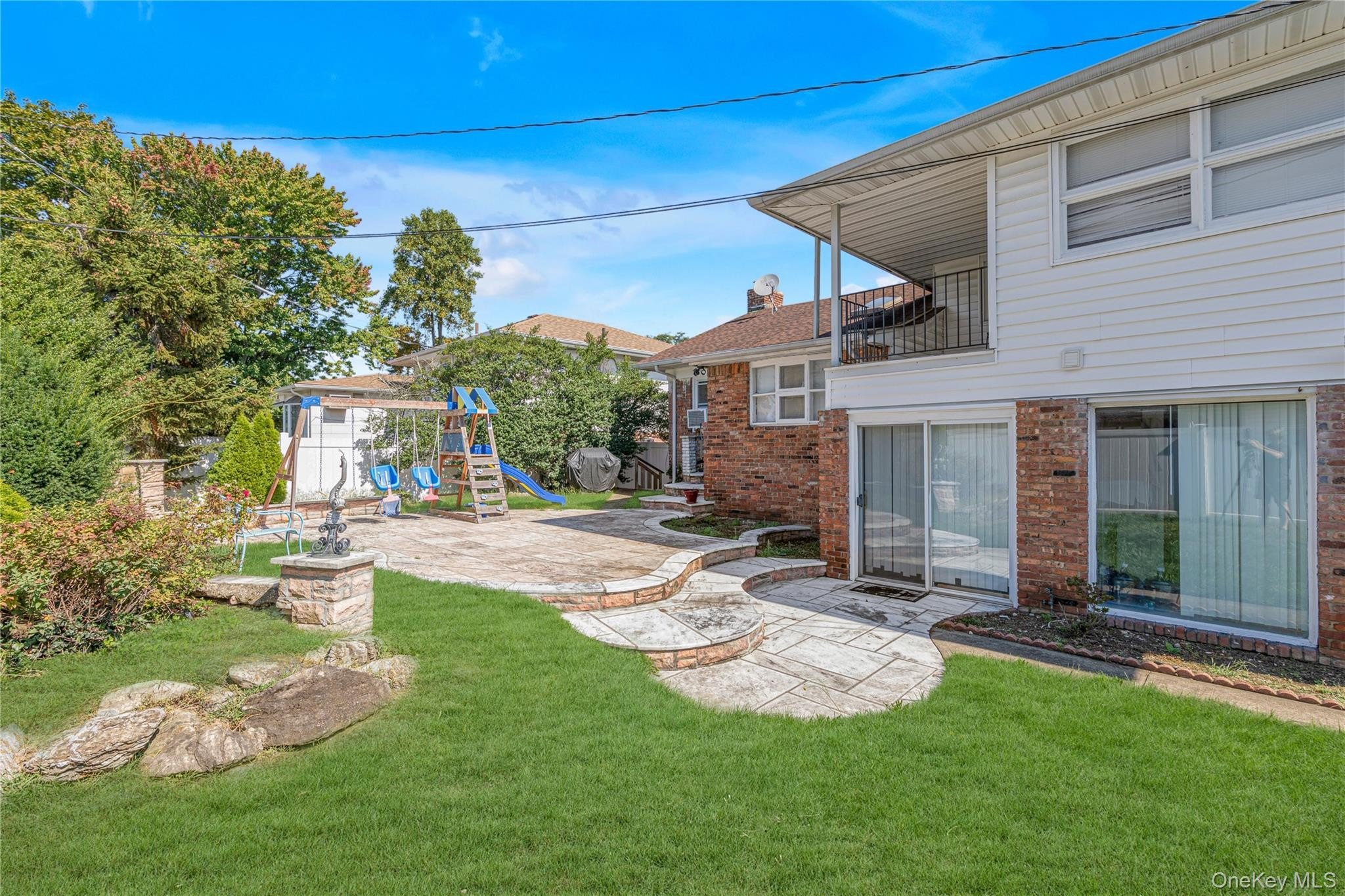 Beautiful split ranch home located on a quiet cul-de-sac in the heart of East Meadow. Renovated in 2012, this home offers four spacious bedrooms and three full bathrooms, providing ample living space. Situated on a 6,200 sq ft lot, it features 2,370 sq ft of interior living area. The custom kitchen includes granite countertops and gas cooking. Hardwood floors extend throughout the home, which also includes a full rear extension. The expanded primary suite offers a sitting area and a private terrace. The backyard features a marble patio and granite walkway, ideal for outdoor entertaining and relaxation. Additional highlights include large bedrooms and a dual staircase that adds architectural interest.