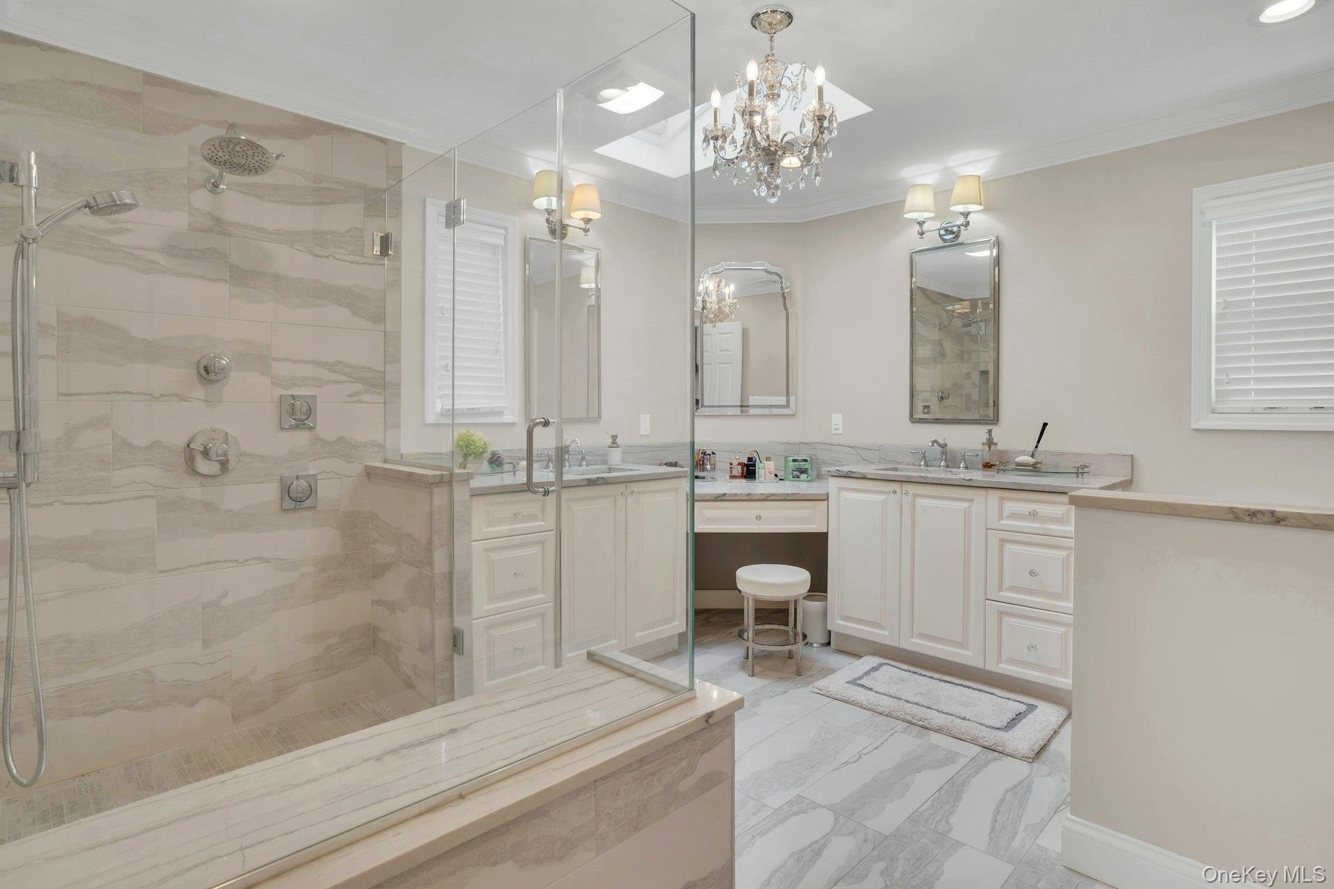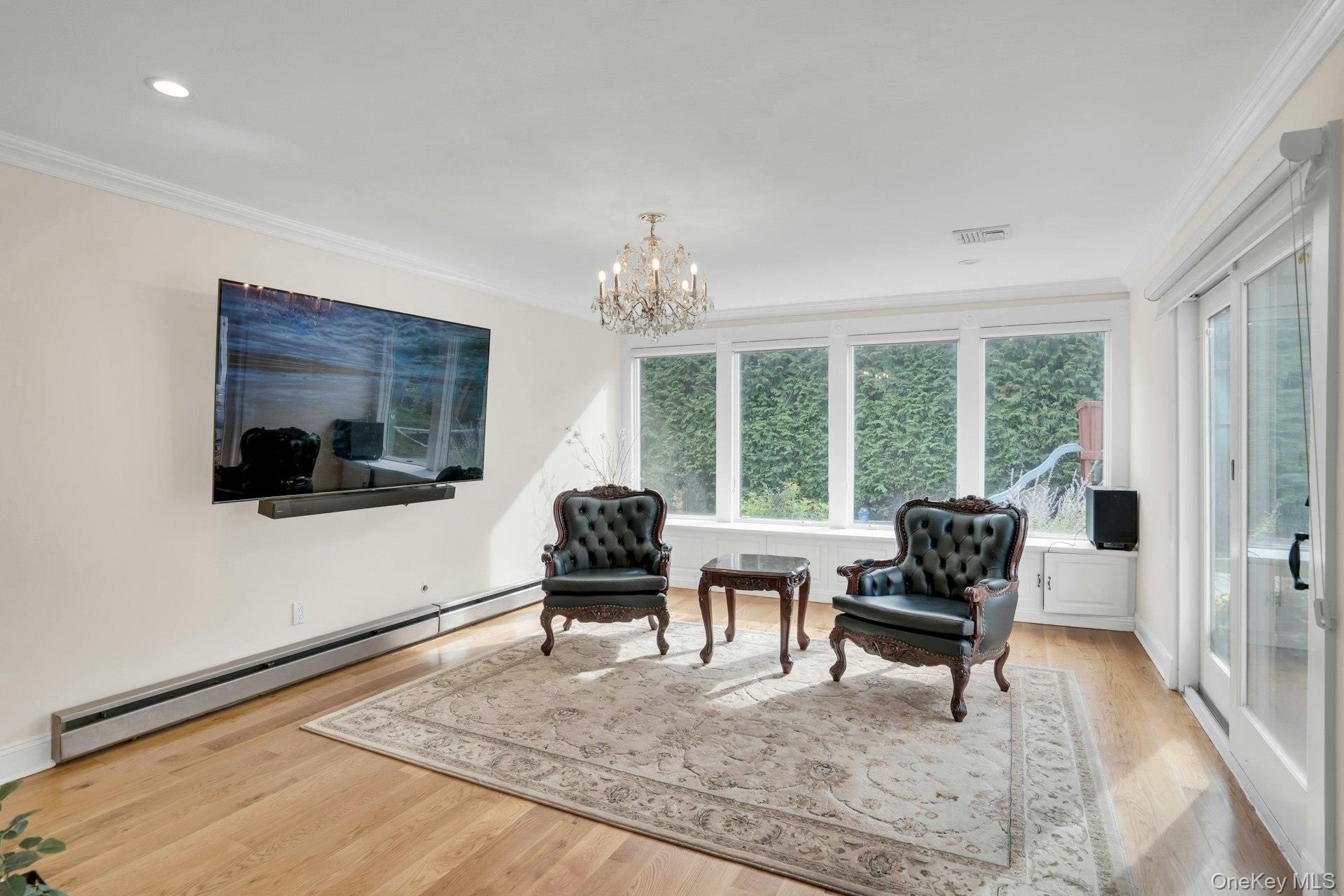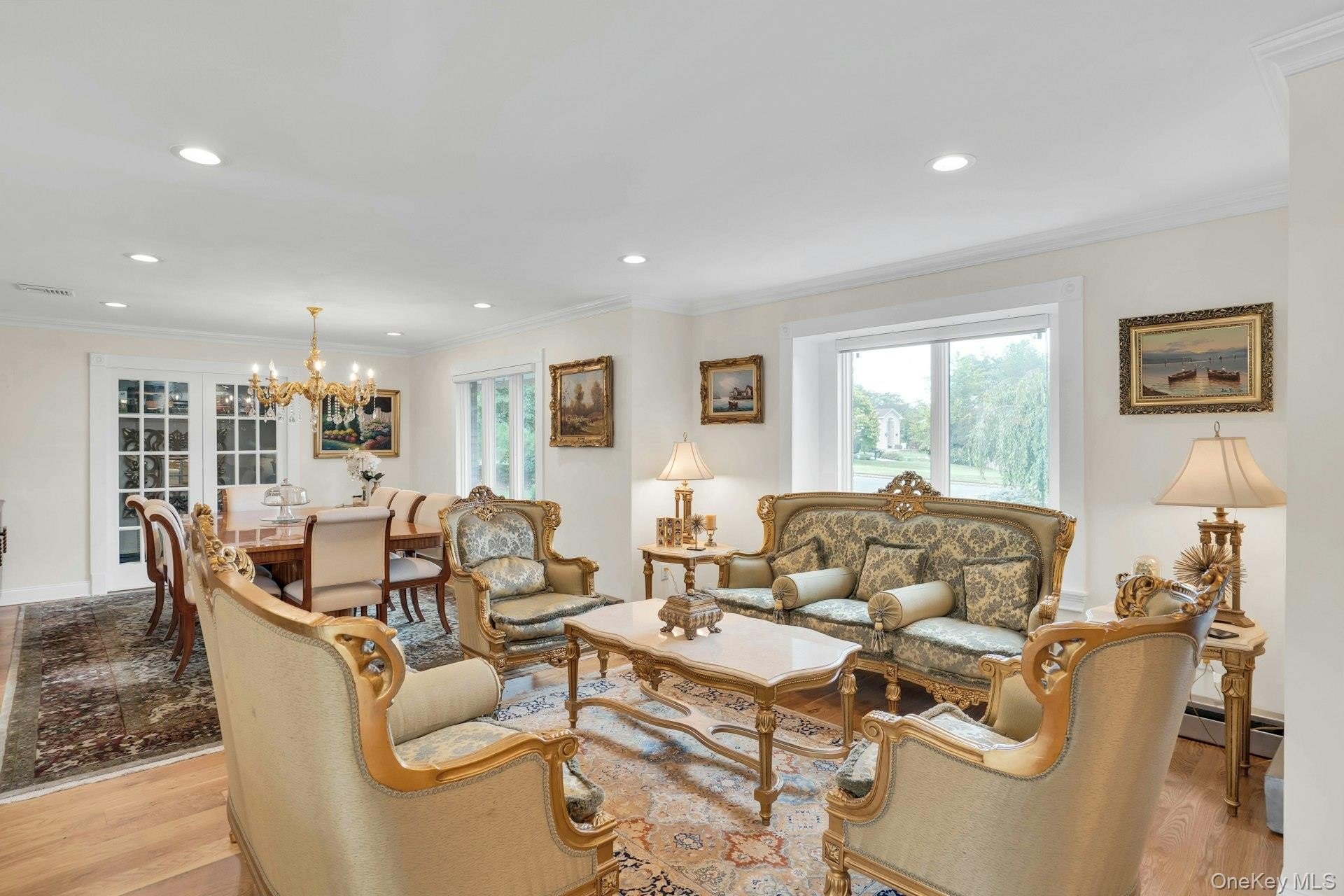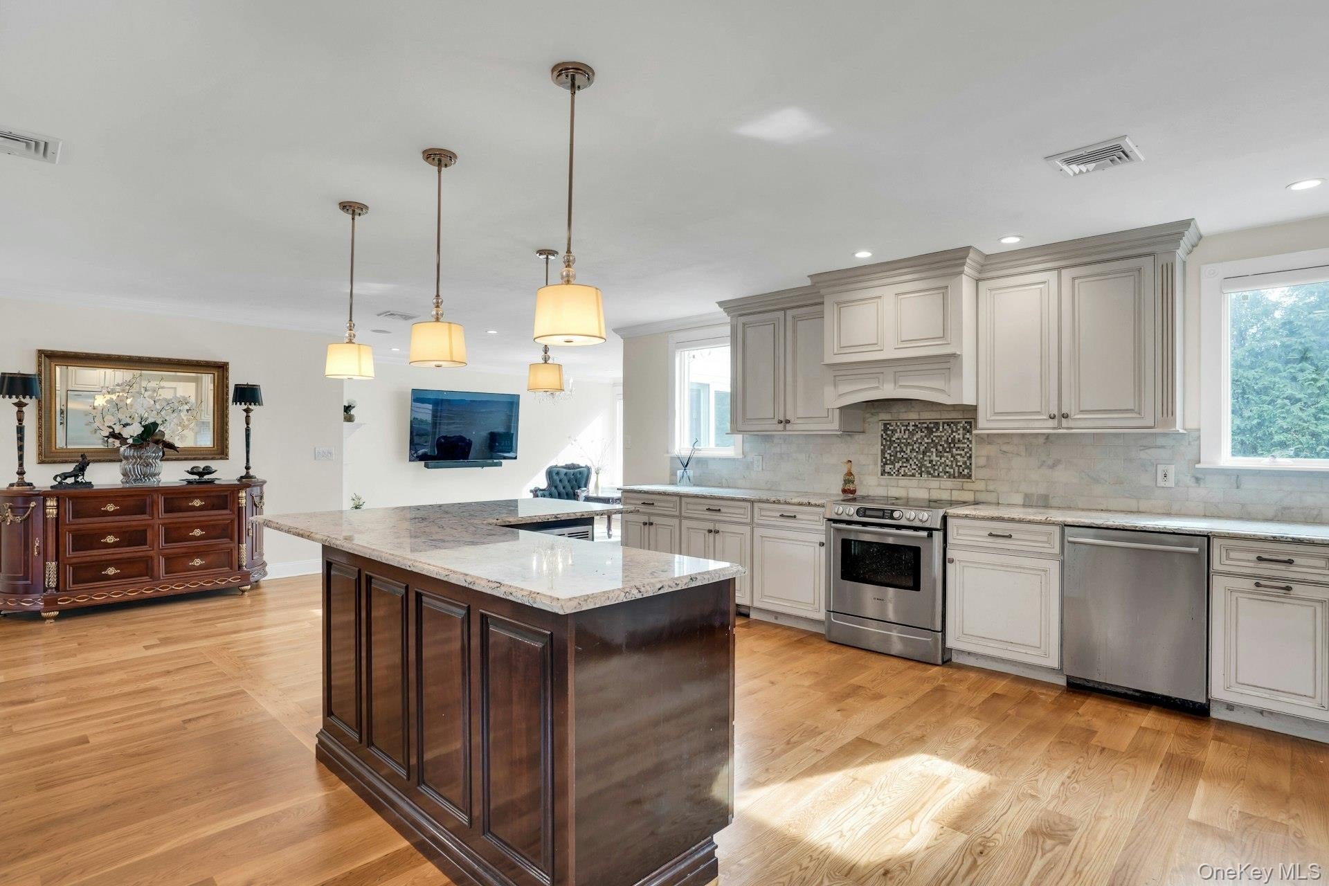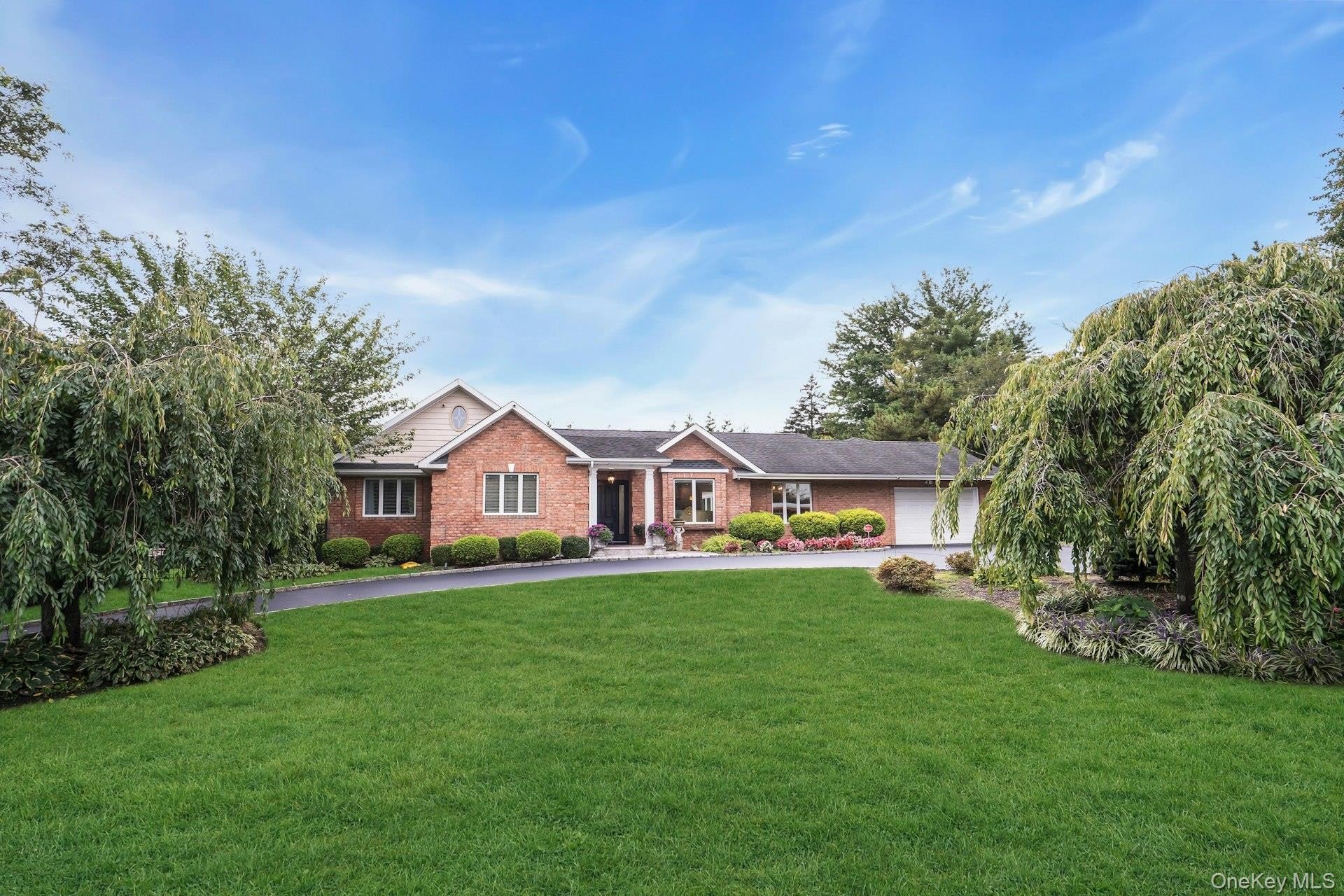 Welcome to 1 Regency Lane, Dix Hills! This spacious 5-bedroom, 3-bathroom ranch is nestled in Dix Hills within the award-winning Half Hollow Hills School District. Designed for both everyday living and entertaining, the home blends modern updates with timeless charm. The unique feature of the home is the separation of the bedrooms creating 2 sleeping quarters. The South Wing features the Primary Bedroom with a private ensuite bath, 2 other bedrooms and a main hall full bath. The North Wing features 2 good size bedrooms, a main hall full bath and staircase access to a partial basement making this home a very good share house. Inside, the renovated kitchen showcases an open floor plan, Bosch dishwasher & cooktop (3.5 yrs), KitchenAid refrigerator (6.5 yrs), and a microwave (3 yrs). The living areas feature oak hardwood flooring, a cozy wood-burning fireplace, and a wired sound system. The primary suite offers a whirlpool tub, while a pull-down attic and 2-car garage add convenience and storage. Recent updates include: windows (7 yrs), central air (3.5 yrs), oil tank (6 yrs), and cesspool (6.5 yrs). Step outside to your private oasis on .9 acres, where a brand-new (2024) saltwater smart pool with 3 waterfalls and 2 fireballs creates a stunning focal point. The backyard is enhanced by aluminum estate fencing, a 12-zone sprinkler system, and a large patio-perfect for entertaining guests or relaxing in style. This exceptional property combines comfort, updates, and resort-like amenities in a sought-after Dix Hills location. This is a very wide piece of property that can easily be expanded.