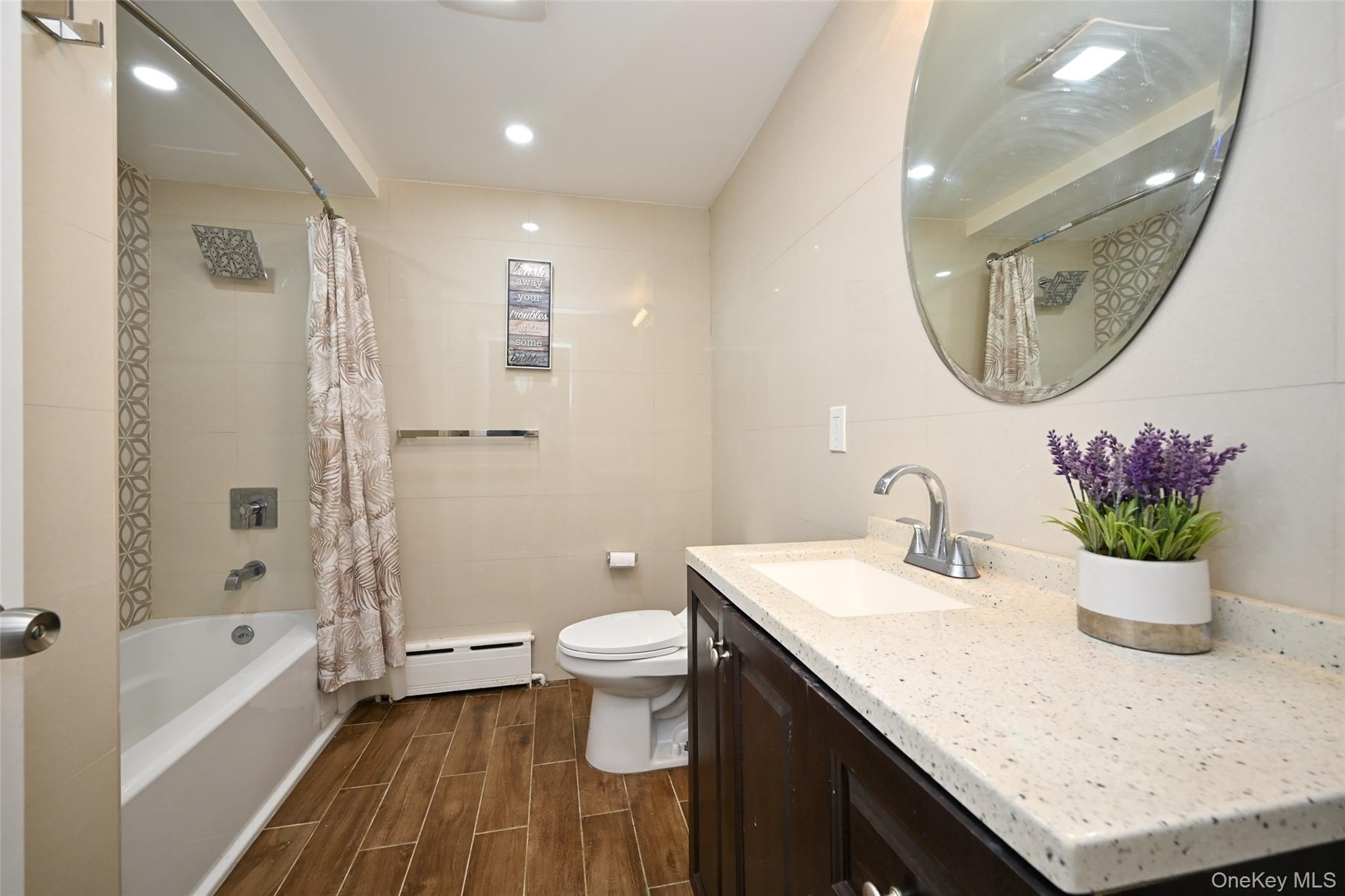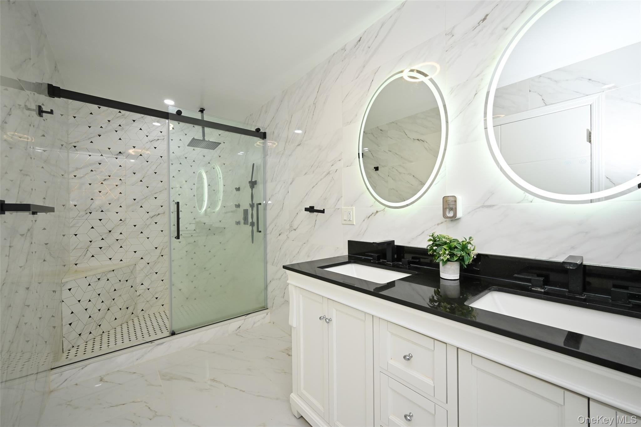 Sun-drenched, oversized Hi-Ranch in Woodmere-ideal for extended family or true mother-daughter living. Completely renovated from top to bottom, this home offers a modern, move-in ready interior with a versatile layout. Upper level: 2 spacious bedrooms, 2 full baths (including a luxurious primary suite), a formal dining room, and an updated eat-in kitchen with high-end cabinetry, granite countertops, and stainless steel appliances. Open-concept living area with hardwood floors, and abundant natural light. Lower level: 2 bedrooms, 1 full bath, bright living room, and a second kitchen with direct access to the backyard-perfect for guests or multi-generational living. Enjoy outdoor entertaining on the raised deck overlooking a landscaped, fenced backyard with a green, tree-lined backdrop for privacy. Additional features include mini split units, renovated baths with lux finishes, walk-in closet, and ample storage. Located in Hewlett-Woodmere School District, close to LIRR, buses, shopping, parks, and schools. A rare combination of space, style, and location.