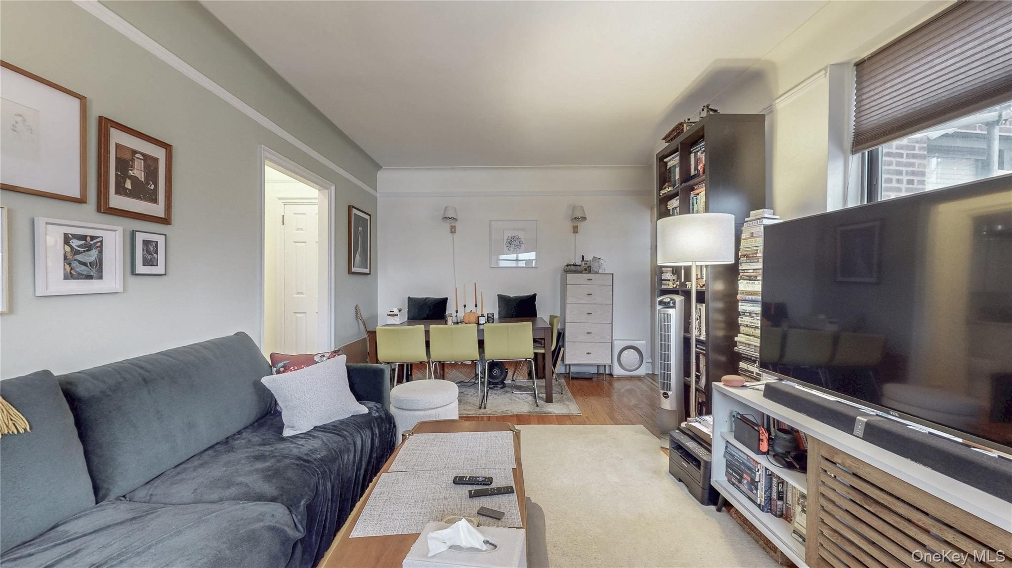 A spacious, recently renovated one-bedroom unit for sale, a great opportunity to live in or invest in a classic Pre-War condo building, on the top floor of 72-34 Austin Street in the heart of historic Forest Hills. Upon entering the generous foyer, you are led to the updated windowed kitchen, which features a dishwasher, wooden cabinets, and ample countertops. This goes on to the expansive Living/Dining area, which overlooks the skyline and trees on Austin Street. Adjacent to this is a fully windowed bathroom. The adjacent bedroom boasts double-exposure windows that offer views from both sides, similar to the living room. It can accommodate a king-sized bed, providing additional space, and features a custom closet with a ceiling light and fan combination. Every room is equipped with windows that allow for abundant natural light and ventilation. The unit is finished with wooden flooring throughout in excellent condition. 72-34 Austin Condo is an elevator building that offers on-site laundry facilities, bike storage, a live-in super, and a secure entry system. Residents can enjoy the vibrant atmosphere of Austin Street, which is home to numerous cafes, restaurants, and shopping options. Regular and express buses provide convenient transportation to Manhattan. Additionally, there is a short walk to the LIRR, express E/F, and local M/R subway trains.