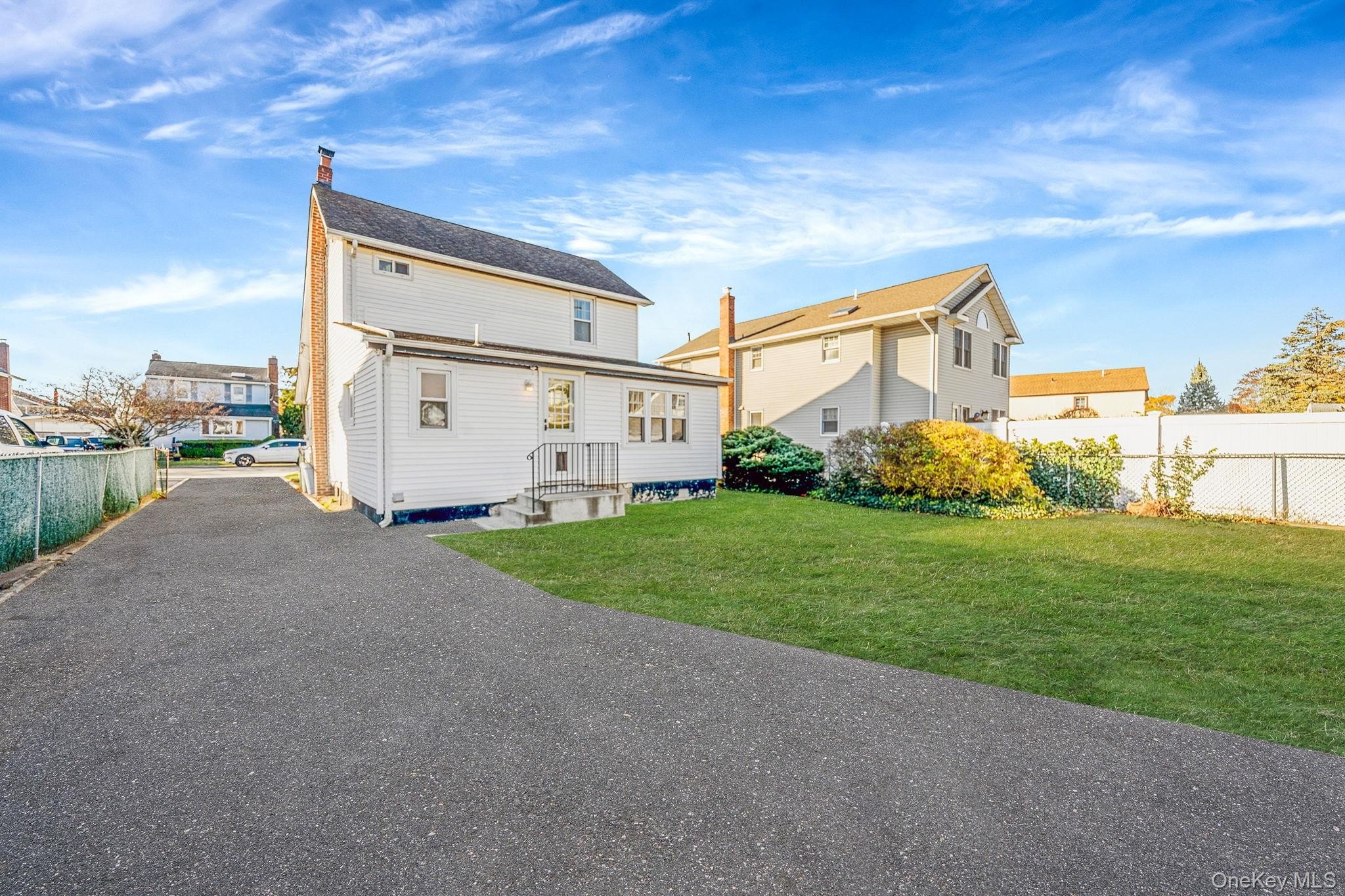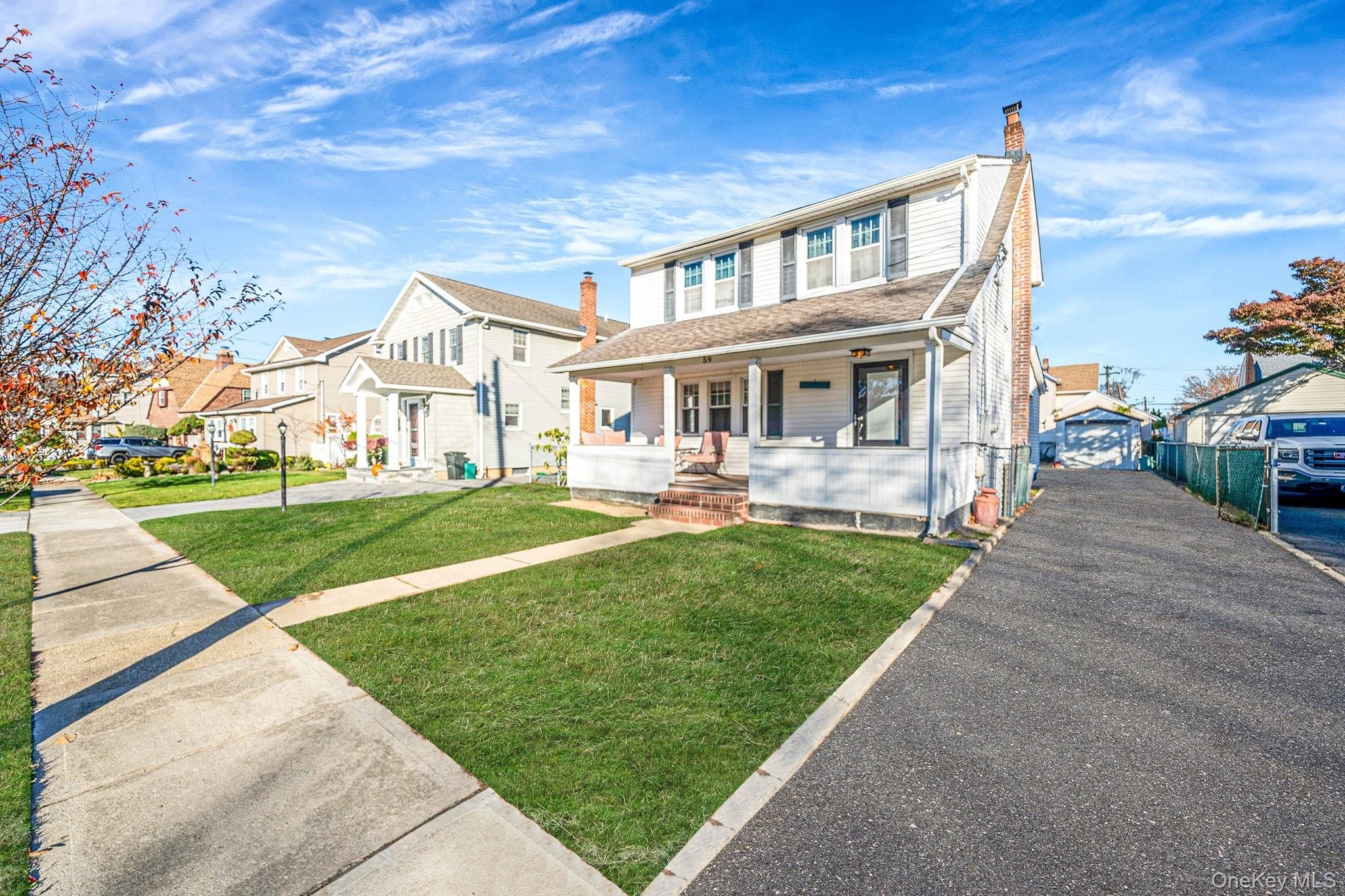 Welcome to this beautifully maintained Colonial located in one of Lynbrook's most sought-after neighborhoods-close to all major transportation, shopping, dining, and just a short commute to New York City. Lovingly cared for by the same family for nearly 30 years, this 3-bedroom, 1.5-bath home blends classic character with modern comfort. Hardwood floors flow throughout the spacious layout. The first floor features a bright living area, a formal dining room, and a versatile office space that can easily be opened up for additional dining during gatherings. The kitchen is a standout-timeless and stylish, featuring granite countertops, ample cabinet storage, modern appliances, an eat-in counter with stools, kick-toe heat, and a pantry. A convenient half bath is located just off the kitchen. The kitchen also offers direct access to the backyard, which provides a blank canvas to design your ideal outdoor retreat. Upstairs, you'll find three comfortable bedrooms and a full bath. The primary bedroom includes a desirable walk-in closet, and one of the additional bedrooms provides access to the attic via stairs-offering excellent storage or potential for future expansion. Existing ductwork is already in place for a central air conditioning system, on the second floor. Additional highlights include an upgraded 200-amp electrical panel, a cedar closet in the basement, full basement, a beautiful front porch, a classic front door with built-in shades, a long driveway, a detached garage, and convenient attic storage. This well-loved home offers the perfect opportunity to add your own personal touch and make it truly yours.