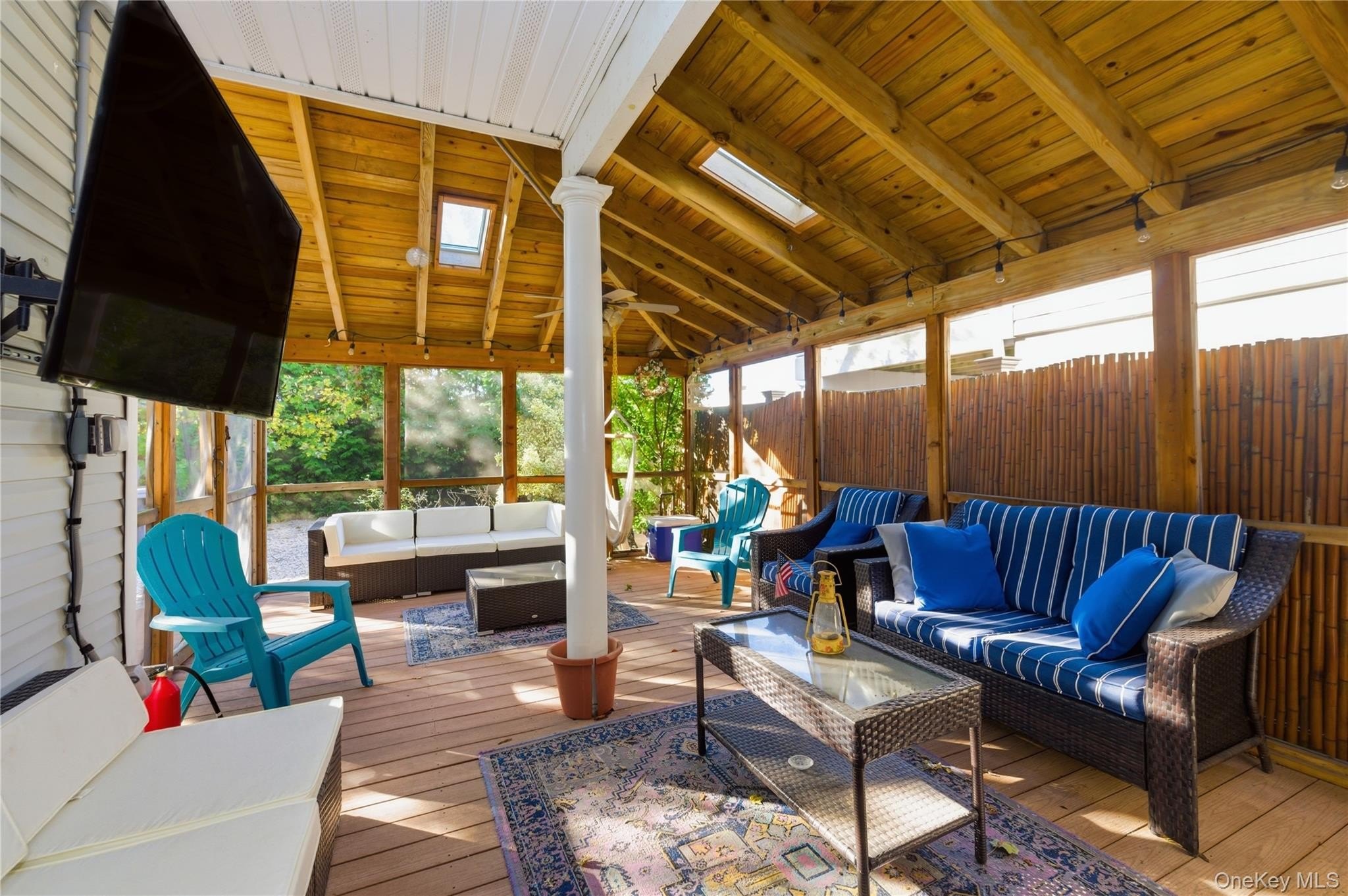 Discover this exceptional East End home, freshly renovated and perfectly positioned just minutes from Long Beach's sandy shoreline. Designed for comfort, style, and effortless entertaining, this residence offers a rare blend of generous interior space and coveted outdoor living. The main level welcomes you with a bright, open living room, a dedicated private office, and two additional sitting rooms ideal for gatherings, lounging, or flexible use. A formal dining room with sliding glass doors leads to a beautifully enclosed outdoor space with direct yard access and two outdoor showers plus bike storage room - a seamless setup for year-round enjoyment. The modern kitchen delivers abundant cabinetry, excellent prep space, and a nearly new wall-mounted gas boiler (less than 2 years old). Upstairs features four over sized bedrooms, including two king-sized rooms, and a fully renovated bath with a double vanity and private en-suite access from a primary bedroom. Just two blocks from the park and a few blocks from the ocean, this move-in-ready home offers the perfect East End lifestyle: spacious, updated, close to shopping, dining, and NYC transportation. Living is easy with extremely low taxes, and owned solar panels!