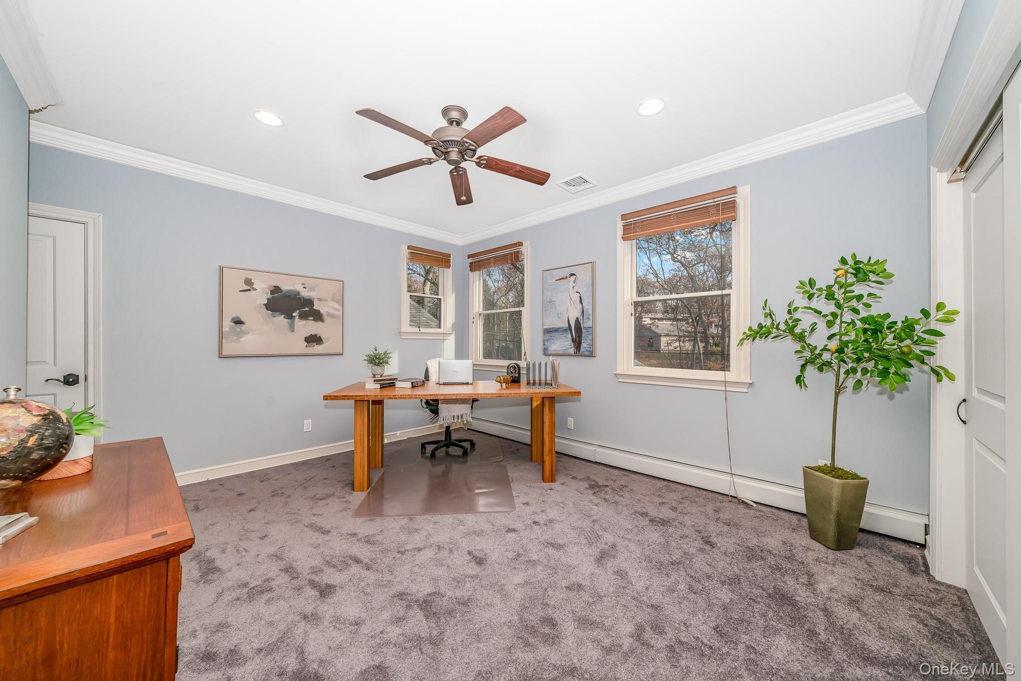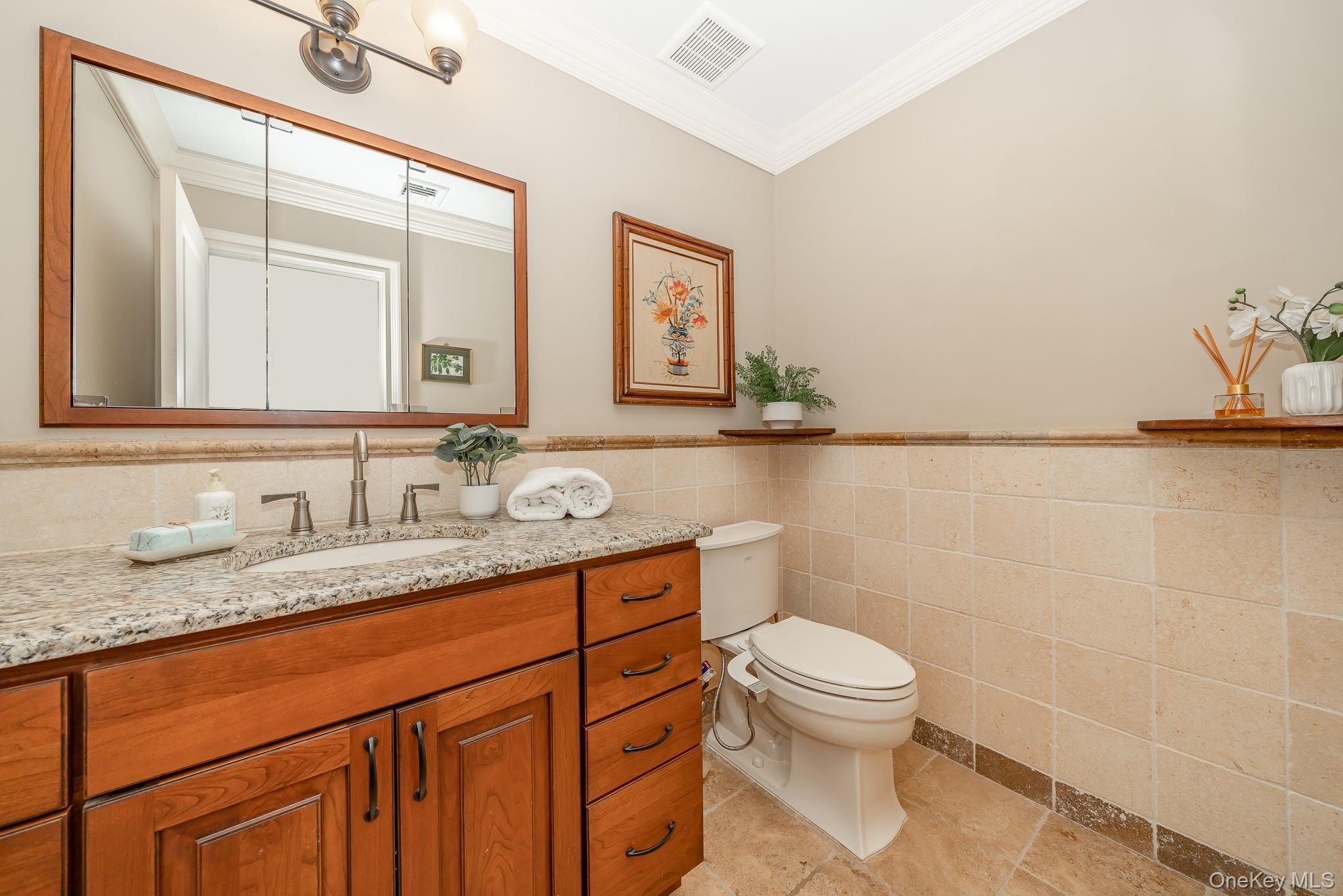 Welcome to 23 Willoughby Path in the Half Hollow Hills SD. Rebuilt from the ground up in 2011 (excluding the garage and basement), this colonial offers your piece of country-club living. A bright great room with tall ceilings opens into a cedar sunroom perfect for entertaining or relaxing without the bugs. The dining room and kitchen sit off the west wing, featuring quality wood cabinetry, granite counters, and stainless-steel appliances. A first-floor junior suite with its own bath and walk-in closet adds easy convenience. Upstairs are three bedrooms (one used as an office) and a full bath. The second floor also features a spacious primary suite, which includes two walk-in closets, a private balcony (made of composite decking) overlooking the yard, and a spa-like en-suite. All bedroom closets have custom systems. Additional features: Extra washer/dryer hook-up on the first floor; 2-zone CAC, 4-zone heat, front/back in-ground sprinklers, new oil tank (2025), new ejector pump (2025), cesspool with overflow (pumped 2011), CAC (serviced 2025), alarm system, walk-in attic + pull-down attic, and a walk-out/partial basement with a wine cellar and potential for storage + other creative uses. Outside, the lush 1.25-acre property provides possibilities for entertaining, gardening, or simply relaxing in privacy. With its classic charm, sizeable footprint, and premium acreage, this residence is truly a find in an established neighborhood.