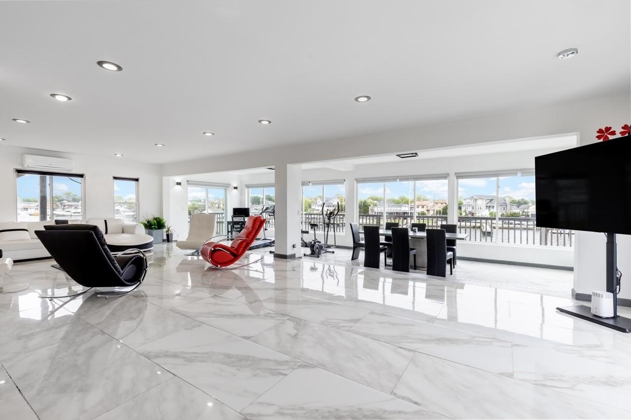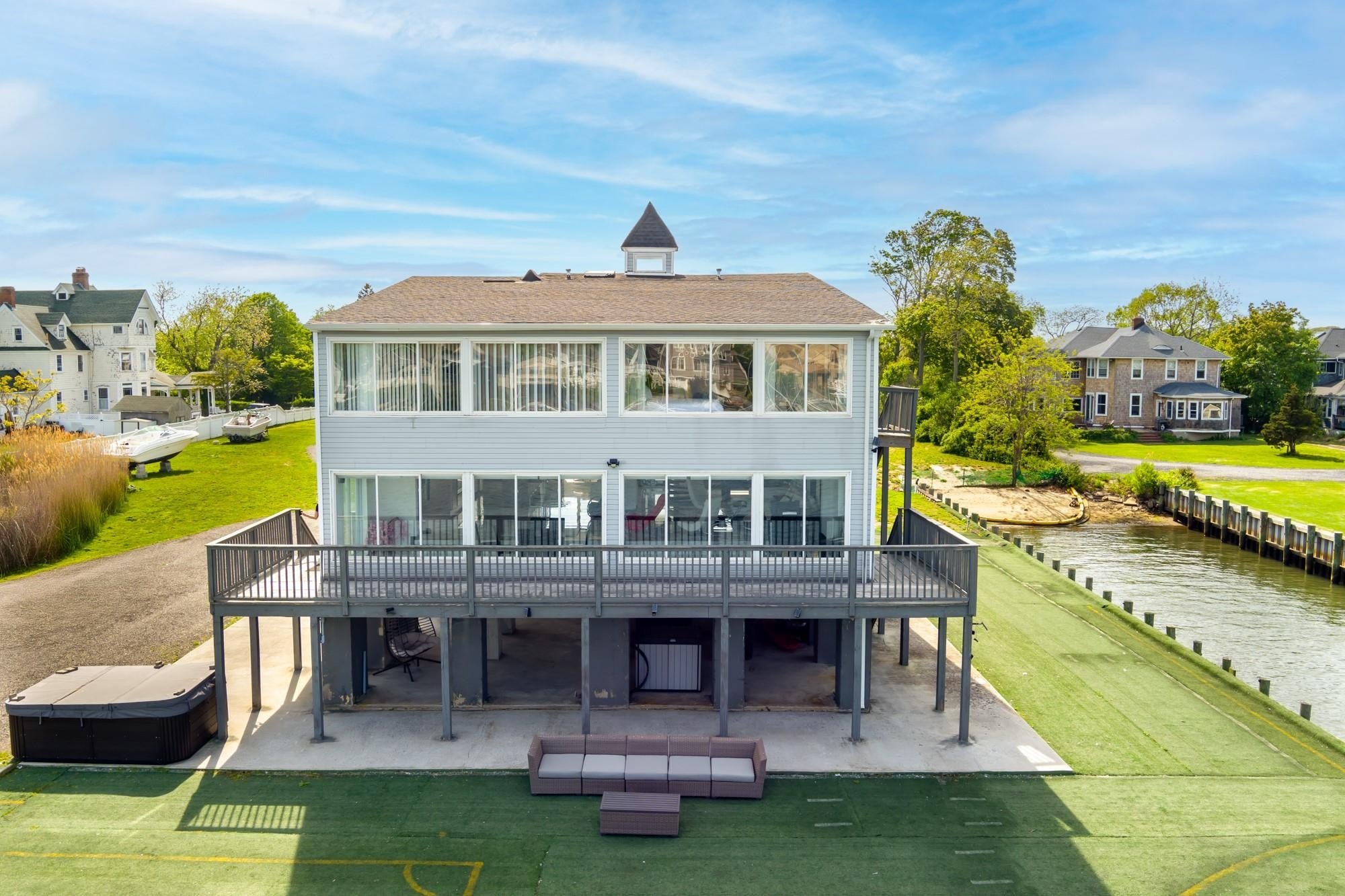Welcome to 200 Clocks, a rare waterfront opportunity offering 200 feet of bulkhead and boat slips on three sides, just minutes from Breezy Point Park and the open bay. Set on 1.8 acres, this parcel includes a stunning 3,710 sq ft modern luxury home and approved subdivision plans for two lots-ready to be finalized at buyer's request, if desired. The 3-bedroom, 3.5-bath home was raised and completely rebuilt in 2017 and is the ideal setup for year-round living, a summer getaway, full-season rental, or high-yield short-term rental investment. Each bedroom has its own private, spa-like bathroom, and the open-concept living space features a large kitchen island, solid-surface counters, and sleek tile floors throughout. The layout is perfect for entertaining, with areas staged as a game room, living room, dining space, and home gym-all with views of the canal and surrounding water. The home is fully furnished, move-in ready, and positioned to generate income immediately. Enjoy a boater's dream lifestyle with bulkhead and dockage, access to nearby yacht clubs, and the ability to boat or drive to waterfront dining. Whether you're an end user looking for a luxurious escape or an investor exploring income potential or development options, this is an unmatched opportunity. Purchase as one expansive estate or explore options to buy Lot A (home + 1.02 acre) or Lot B (vacant .66 acre).