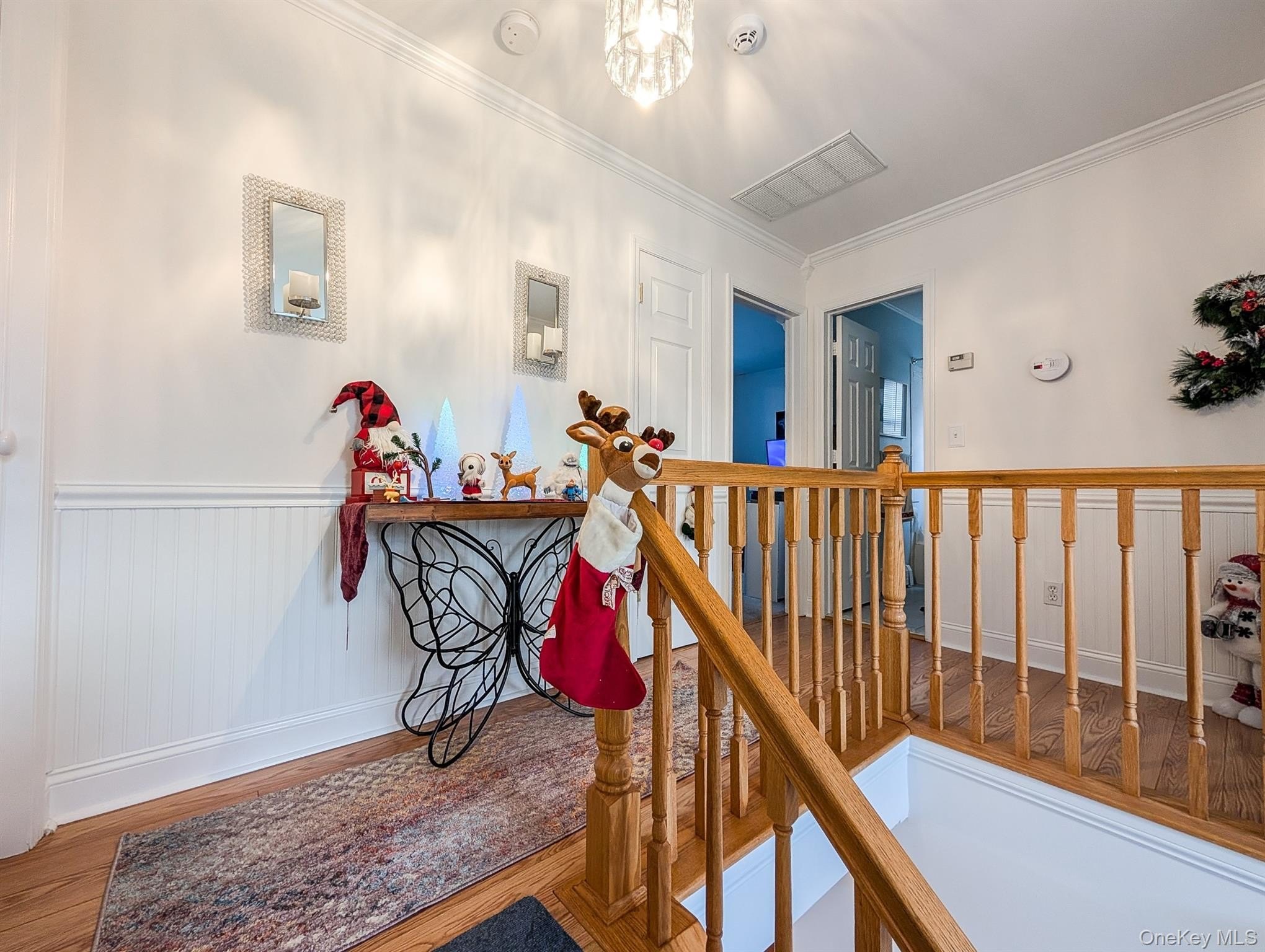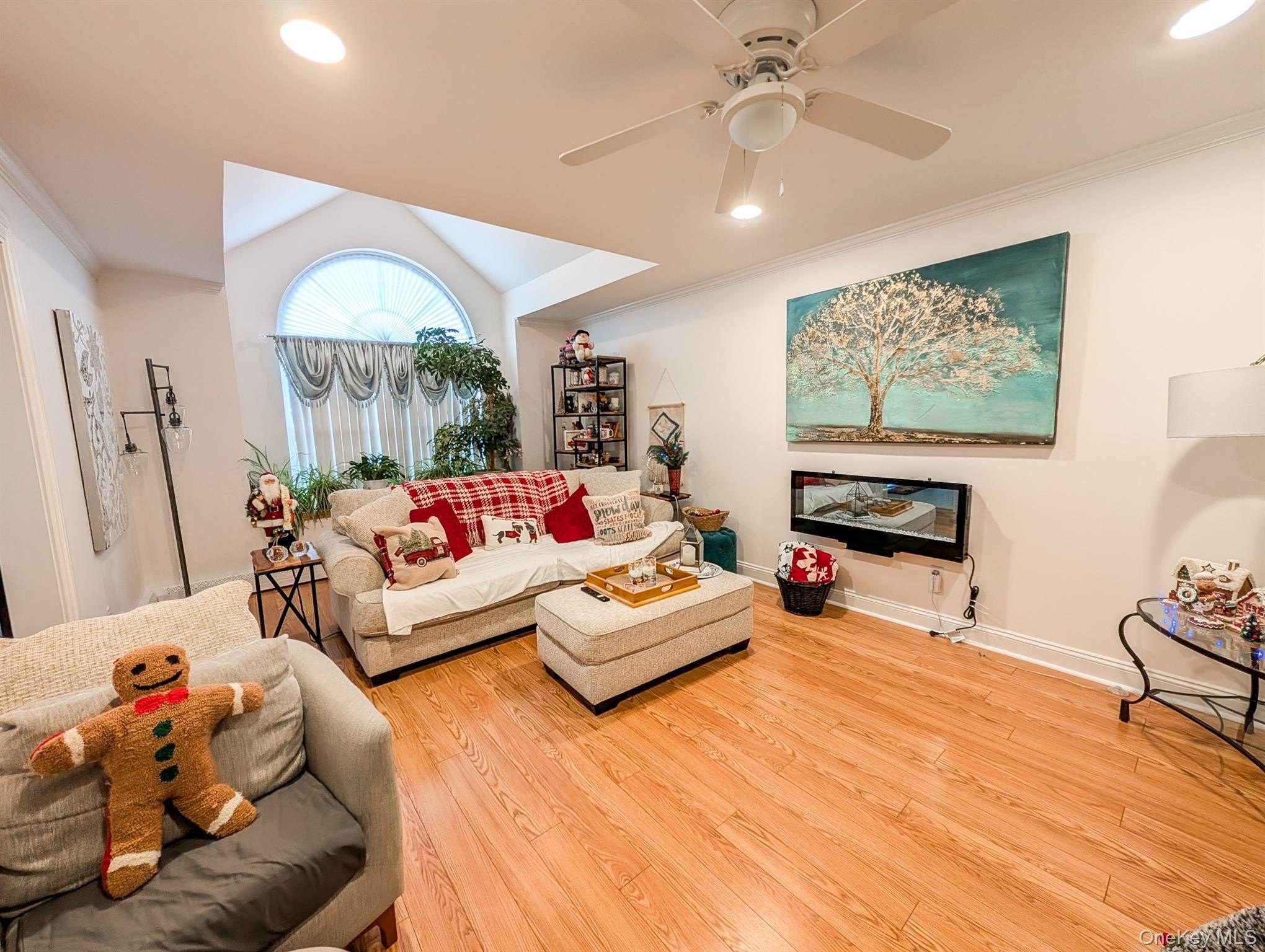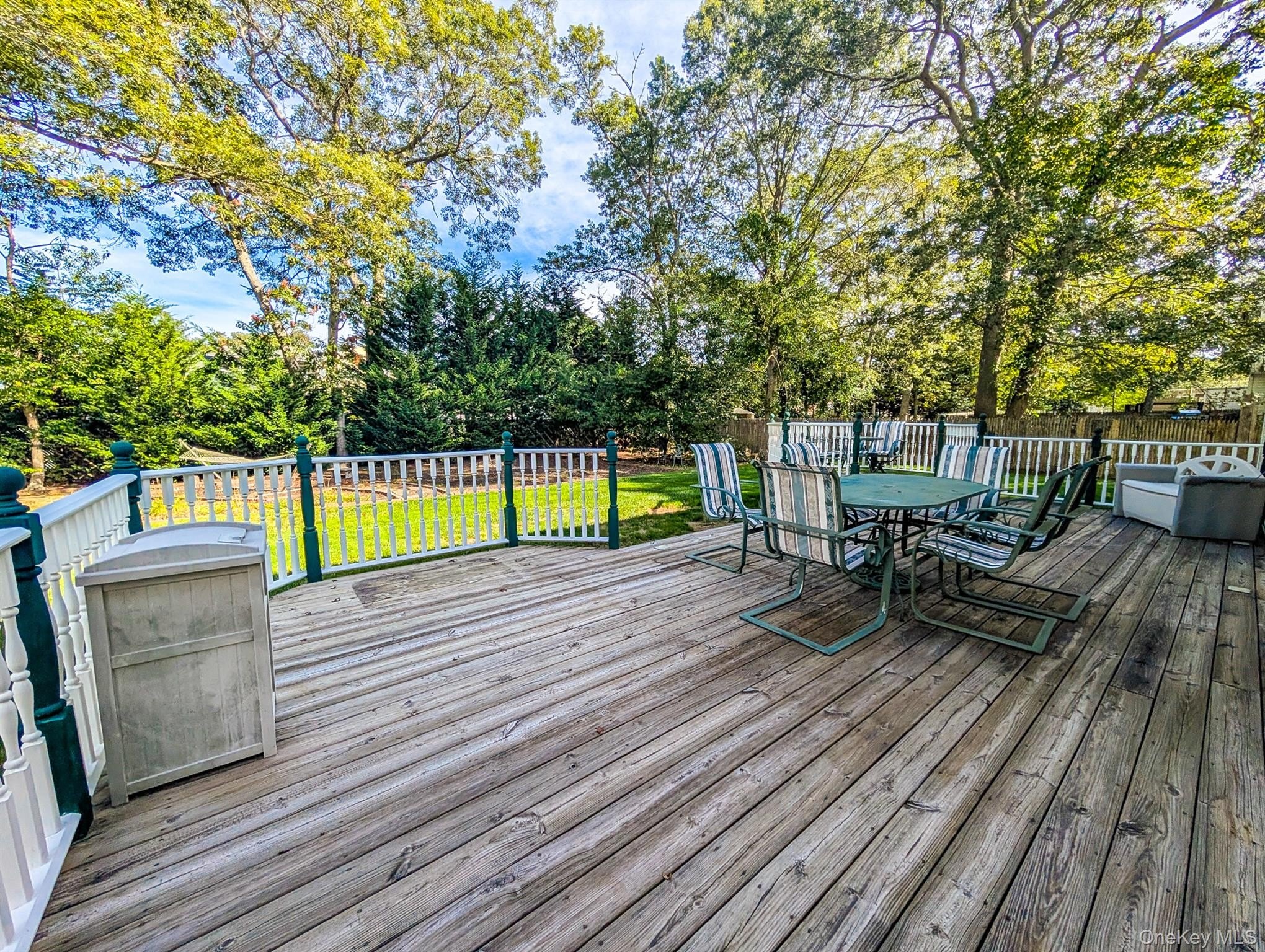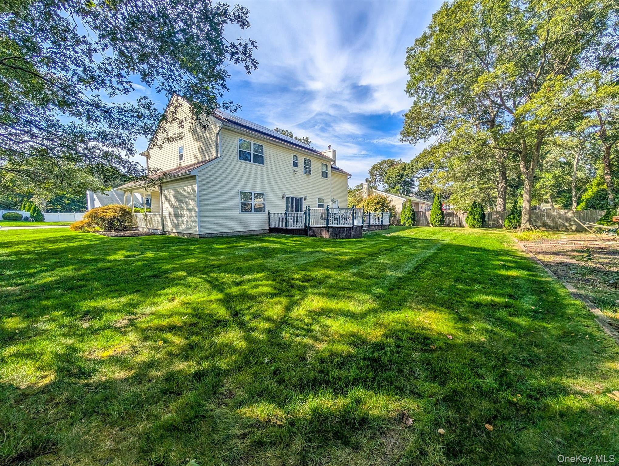 Welcome to 30 Howard Drive, a charming Victorian-style home situated on a quiet street in Coram. This beautifully maintained home features 3 spacious bedrooms, 2.5 bathrooms, and offers an ideal blend of classic curb appeal and modern upgrades. Step onto the welcoming wraparound front porch and enter into a bright and airy interior with hardwood floors throughout with decorative mouldings and abundant natural light. The large living room boasts vaulted ceilings and an electric fireplace, creating a warm and inviting atmosphere perfect for relaxing or entertaining. The updated eat-in kitchen features new stainless steel appliances, island and ample cabinetry for storage with a pantry. Adjacent to the kitchen is a formal dining room, ideal for hosting holiday meals or gatherings. Upstairs, the spacious primary suite includes two walk-in closets and a fully renovated en-suite bathroom complete with double vanity, soaking tub, and separate shower. Two additional bedrooms and another full bath provide plenty of space for guests, family, or a home office. Outside, enjoy a private backyard featuring a large deck, perfect for outdoor dining or enjoying peaceful evenings. The home also includes a one-car garage, central air and energy-efficient solar panels for long-term utility savings. This move-in ready home checks all the boxes with its modern updates, great location, and timeless design. Don't miss the opportunity to make this exceptional property your own!