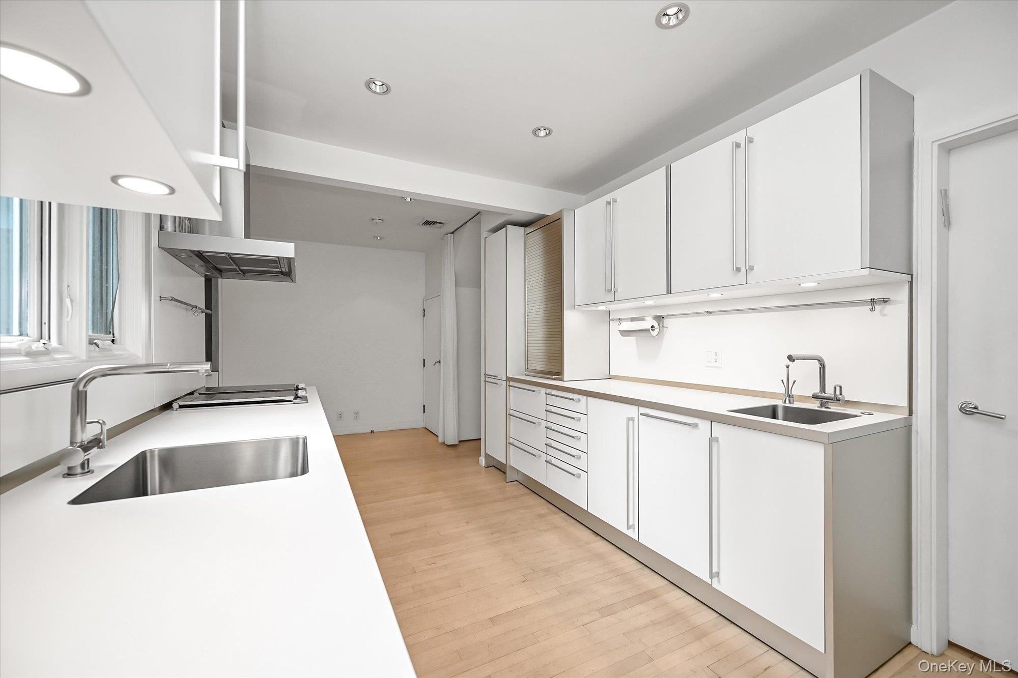 30 Beechwood Drive, Sutton Park, Lawrence, NY This move in ready residence features 6 bedrooms and 4 full bathrooms. The layout includes three bedrooms on the upper level, one on the main floor, and two in the finished basement. Bathrooms are conveniently located with two upstairs, one on the main level, and one in the basement. The home's interior is designed in a sleek, modern white palette, evoking a gallery like aesthetic. A Bulthaup kitchen, outfitted with Gaggenau and Miele appliances, serves as the centerpiece of the home. Additional highlights include a spacious backyard with a half basketball court, perfect for recreation and entertaining. - 30 Beechwood Drive: Approx. 68 x 141 feet
