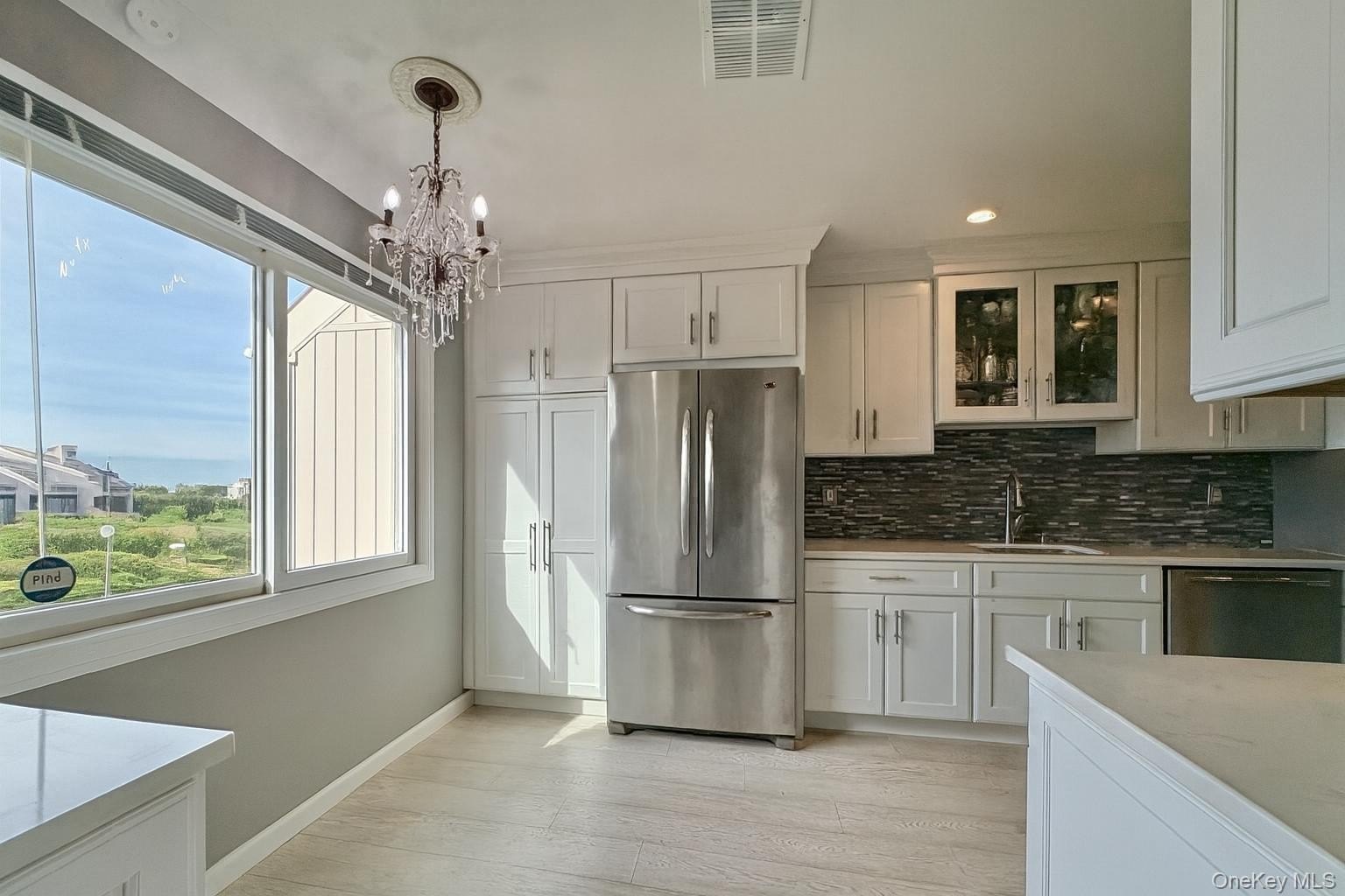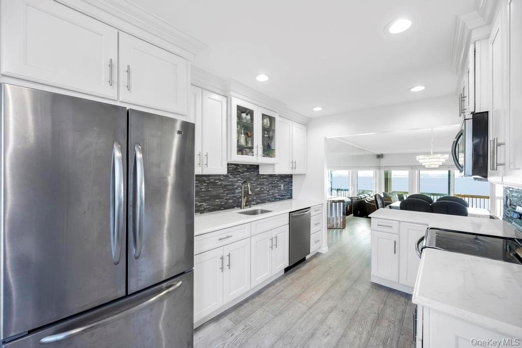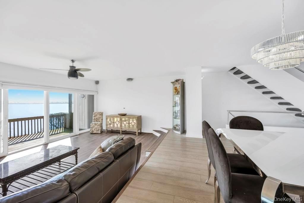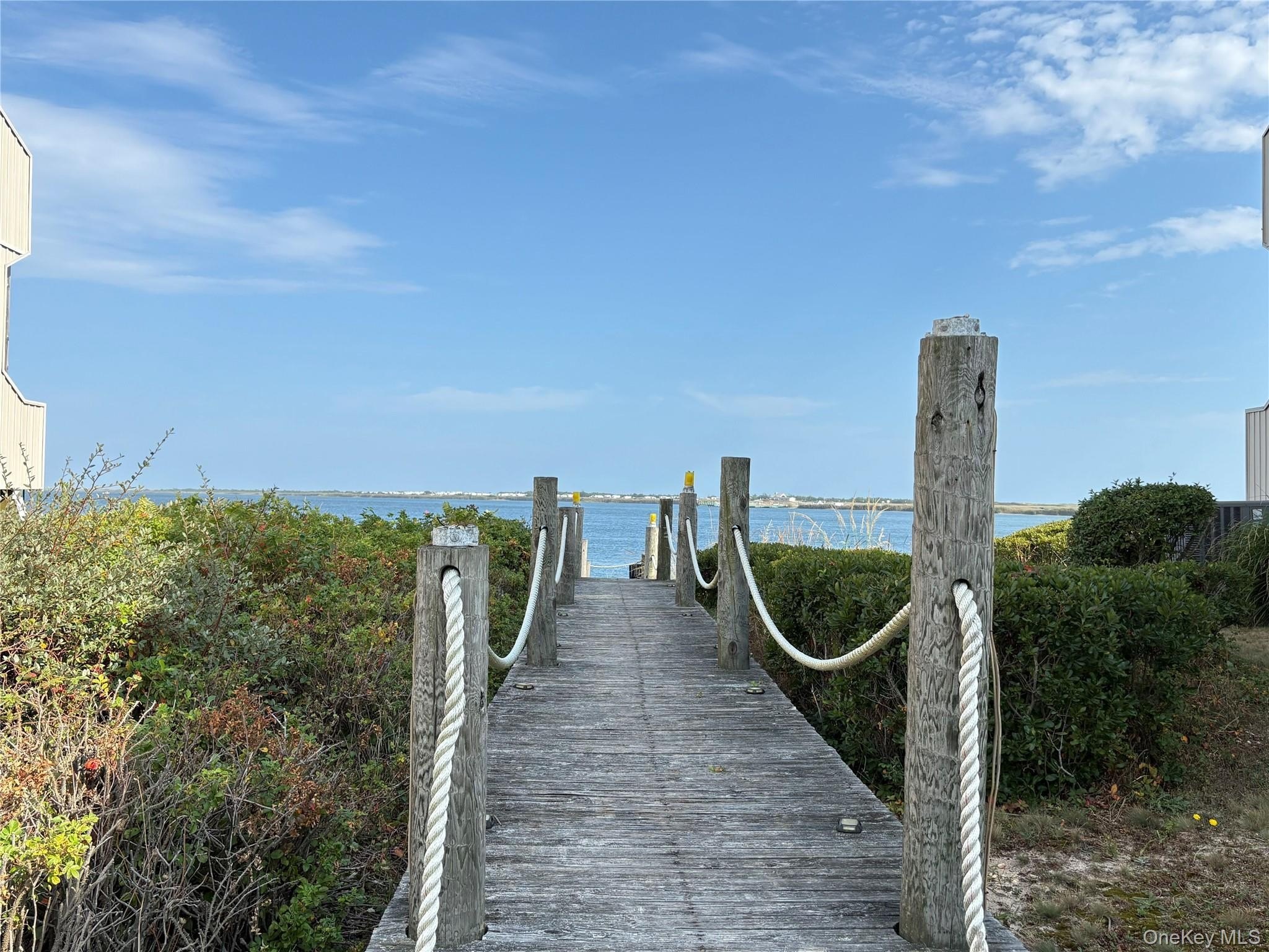 This Waters Edge Townhouse, Unit #7, offers spectacular bay and sunset views in a private peaceful waterfront community. A 4-level townhome features a garage with finished flex space, an eat-in kitchen with Quartz counters, a large open dining area, a step-down living room with wall to wall glass sliders to bayfront terrace, plus a powder room. The 3rd level includes a primary ensuite with large Bayfront terrace, a 2nd bedroom with full bath, and laundry. A finished loft room with skylights completes the home. Community amenities include a pool, firepit, dock access for visitors boating / jet skiing for the day, and 24-hour video surveillance. Located just before the Smith Point Bridge that leads directly to Smith Point county Beach - ideal for off-roading, camping and endless seaside adventures. 66 miles from NYC and minutes to the Hamptons, this rare gem offers the best of coastal living.