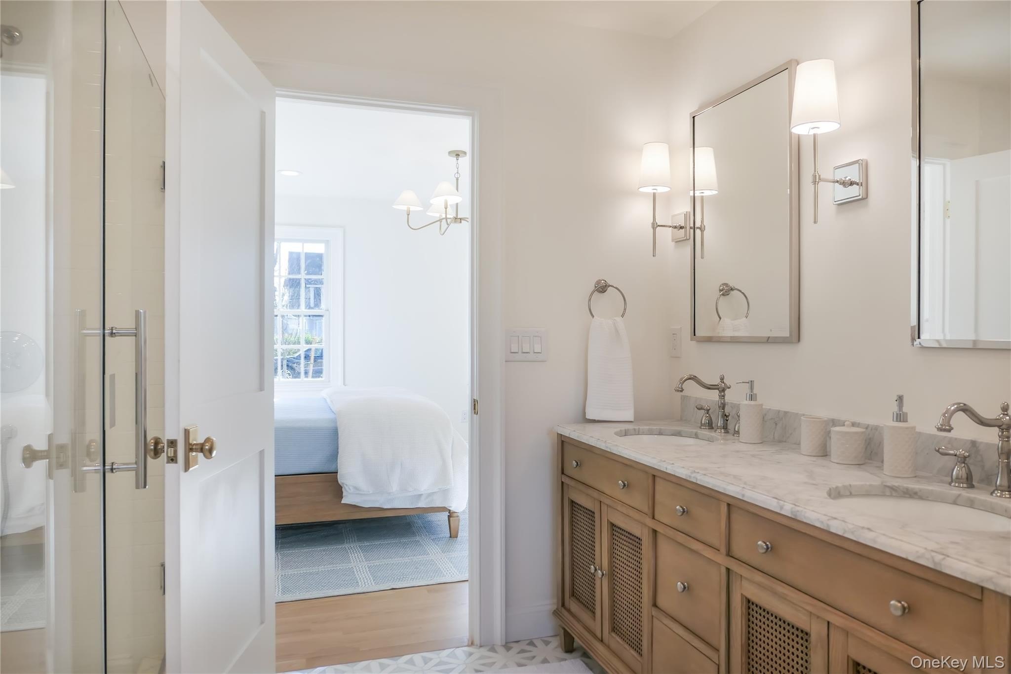 Nestled in the heart of Bellport Village, this exquisite 3 bedroom, 3.5 bath home offers the perfect blend of modern luxury and cozy comfort. Completely rebuilt in 2023/2024 this stunning home is located on a quiet cul de sac and perfect for those looking to enjoy serene village living just moments away from local shops, dining, and beautiful beaches. This home highlights an expansive open-concept and spacious living room with a gas fireplace and a formal dining area perfect for relaxing and entertaining. The heart of the home is the gorgeous new, chef inspired gourmet kitchen boasting Fisher & Paykel refrigerator, Miele oven, Bosch dishwasher and GE profile dual temperature wine refrigerator. The over sized central island and custom cabinetry finish off this spectacular setting where one will enjoy many memories. The first bedroom is a large, junior suite and is located on the first floor. This area boasts a huge closet and professionally designed bathroom with top of the line finishes. As you make your way up the oversized stairwell you will find the luxurious primary suite. This sun drenched area features a spectacular 17 X 18 foot sleeping area, bathroom with imported tile, slipper style bathtub with views of the pool and sophisticated glass paneled shower and large custom closet with built in shelving and drawers. The additional guest bedroom has Jack and Jill access to the full bath and is located directly across from the office/nursey. The oversized laundry room is upstairs for ultimate convenience. As you make your way outside you will find the composite board deck overlooking an inground gunite swimming pool, ideal for summer entertaining. The hand dipped cedar shingle give the quintessential, classic Bellport Village vibe. Other features include a one car garage, full basement, hardwood floors throughout, inground sprinkler system, fully fenced yard and so much more. All Village amenities included.