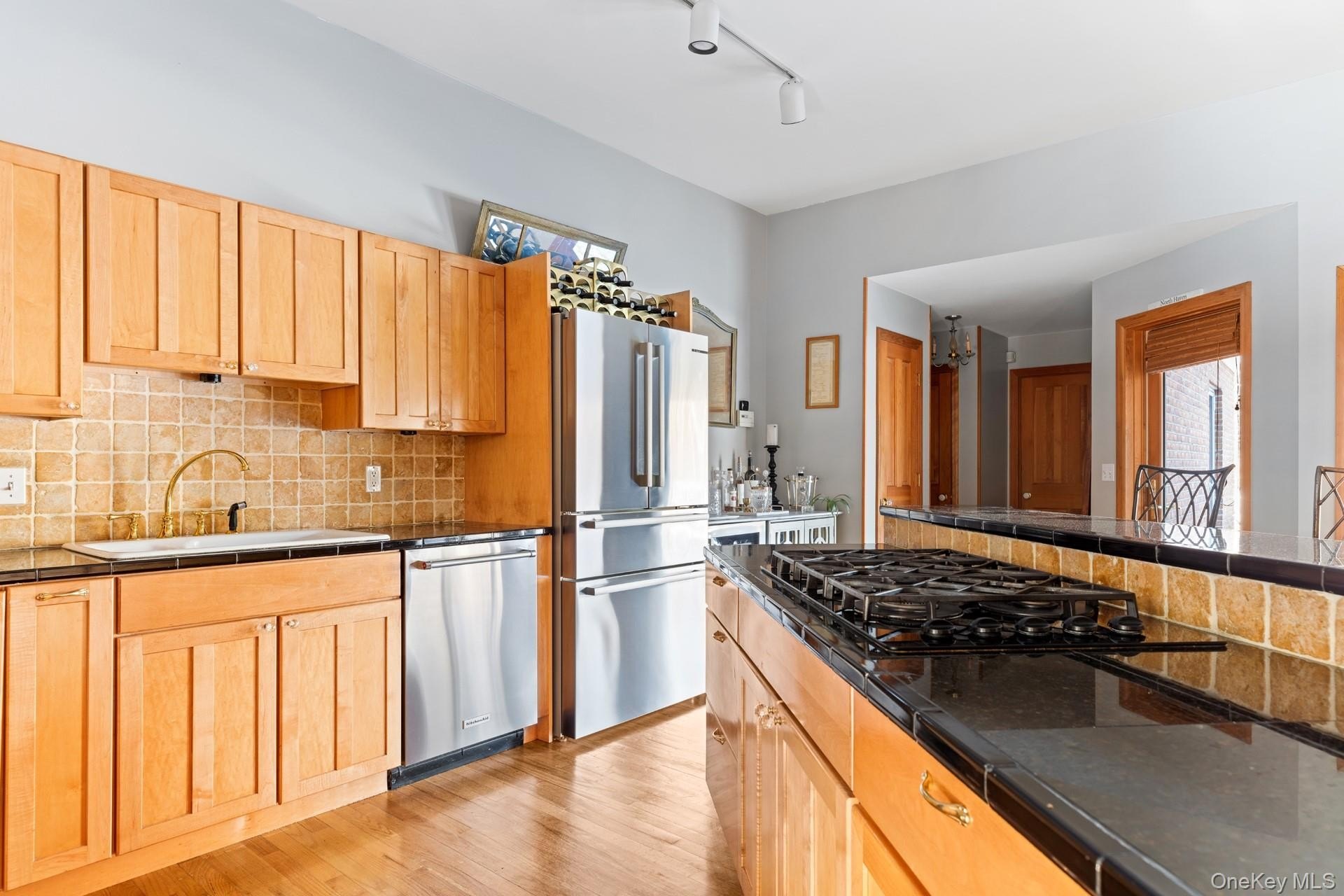 This thoughtfully designed 2,000 SF+/- home sits on a 1.17 acres +/- in Sag Harbor's North Haven, just minutes from the village and ferry, with private bay beach access and mooring rights. The residence offers 3 bedrooms, 2 full bathrooms, and spacious living areas with 12' ceilings, custom millwork, and quality finishes. The home features natural light throughout, highlighting the hardwood floors and granite countertops. The open living spaces are complemented by a wood-burning fireplace, high-end Bosch appliances, and elegant lighting. Spanning 2,000 SF+/-, the first level includes an inviting entry foyer, leading into a spacious living room featuring a skylight, fireplace, and double French doors opening to the exterior patio. The dining room offers direct access to both the kitchen and living room. The gourmet kitchen is equipped with a large center island, bar seating for 3+ guests, 2 closets, and a pantry. Two guest bedrooms share a full bathroom. Additional amenities include a laundry room, 2-car garage, office, and lower-level with over 1,500 SF+/-. The expansive primary bedroom provides direct access to the patio and is complemented by a luxurious bathroom with a skylight, jacuzzi tub, walk-in shower, water closet, and a generous walk-in closet. The outdoor space offers a peaceful retreat. At the center is an 18' x 32' vinyl pool, surrounded by a patio and multiple seating areas ideal for both relaxing afternoons and lively gatherings. Enjoy evenings by the firepit or dine al fresco. The exterior is finished with a bluestone gravel driveway, an irrigation system, and a front porch, all enhancing the home's inviting atmosphere. With its unrivaled location, unparalleled design, and boundless potential, 2 Sunset Road offers a rare opportunity to acquire a true Sag Harbor retreat.