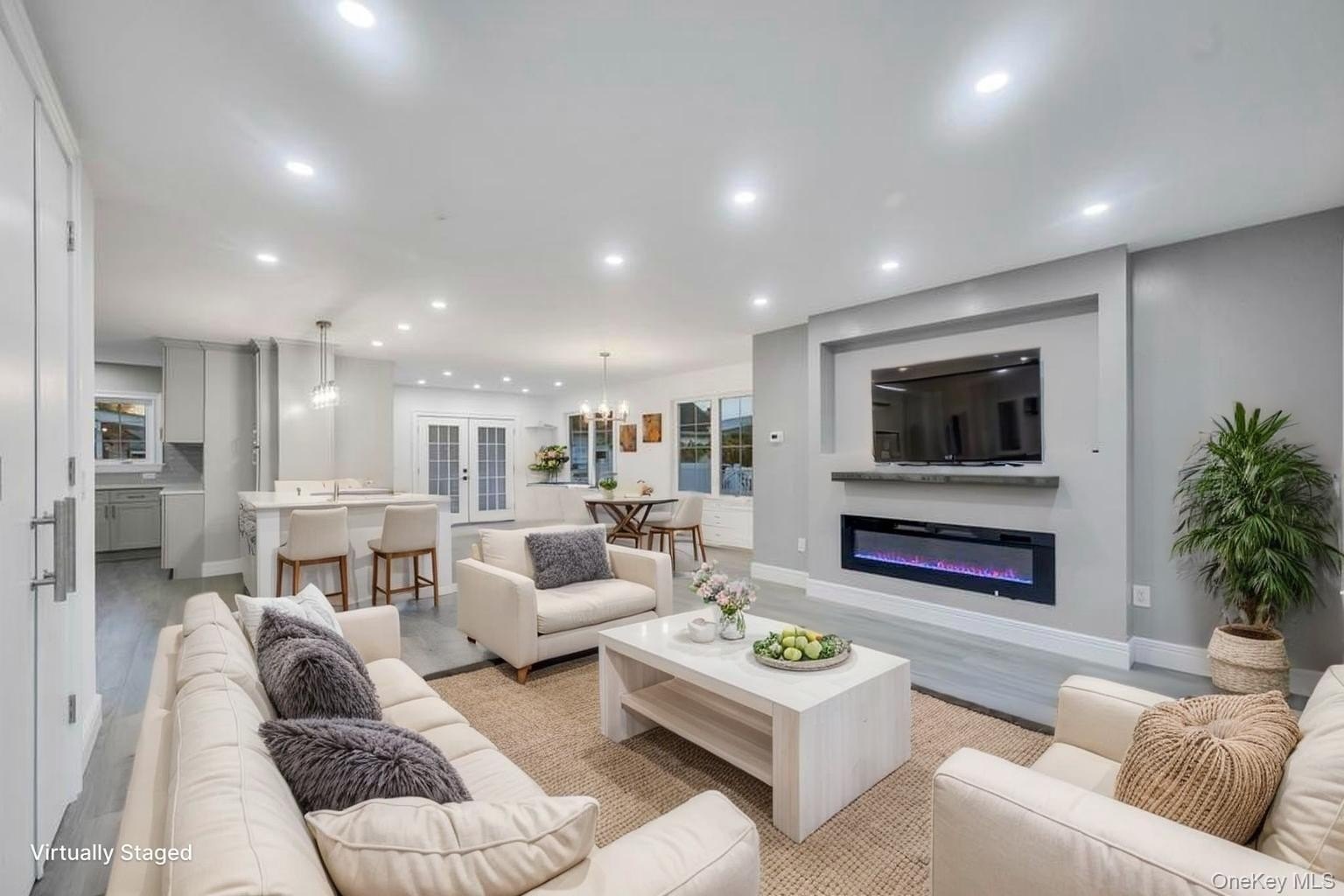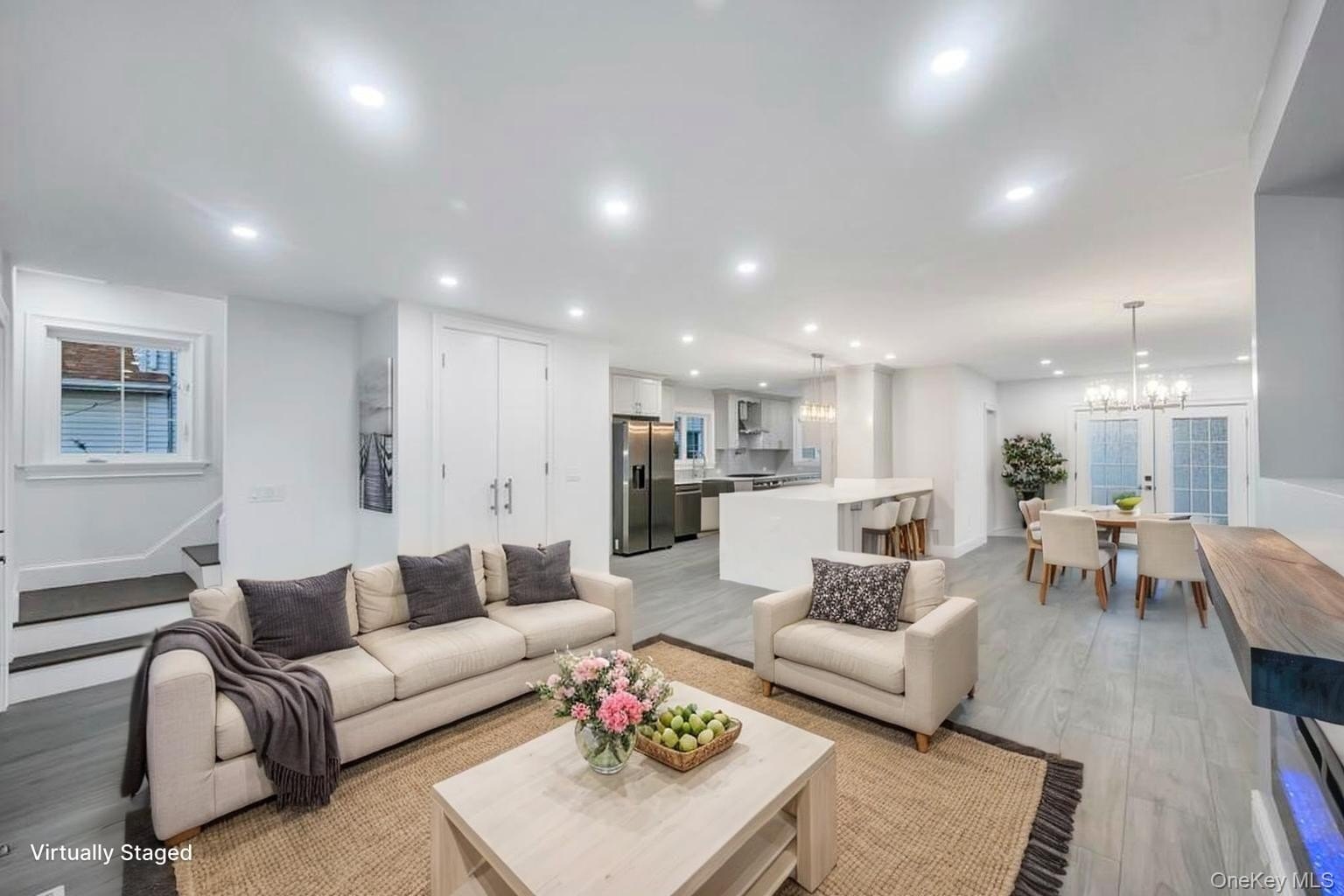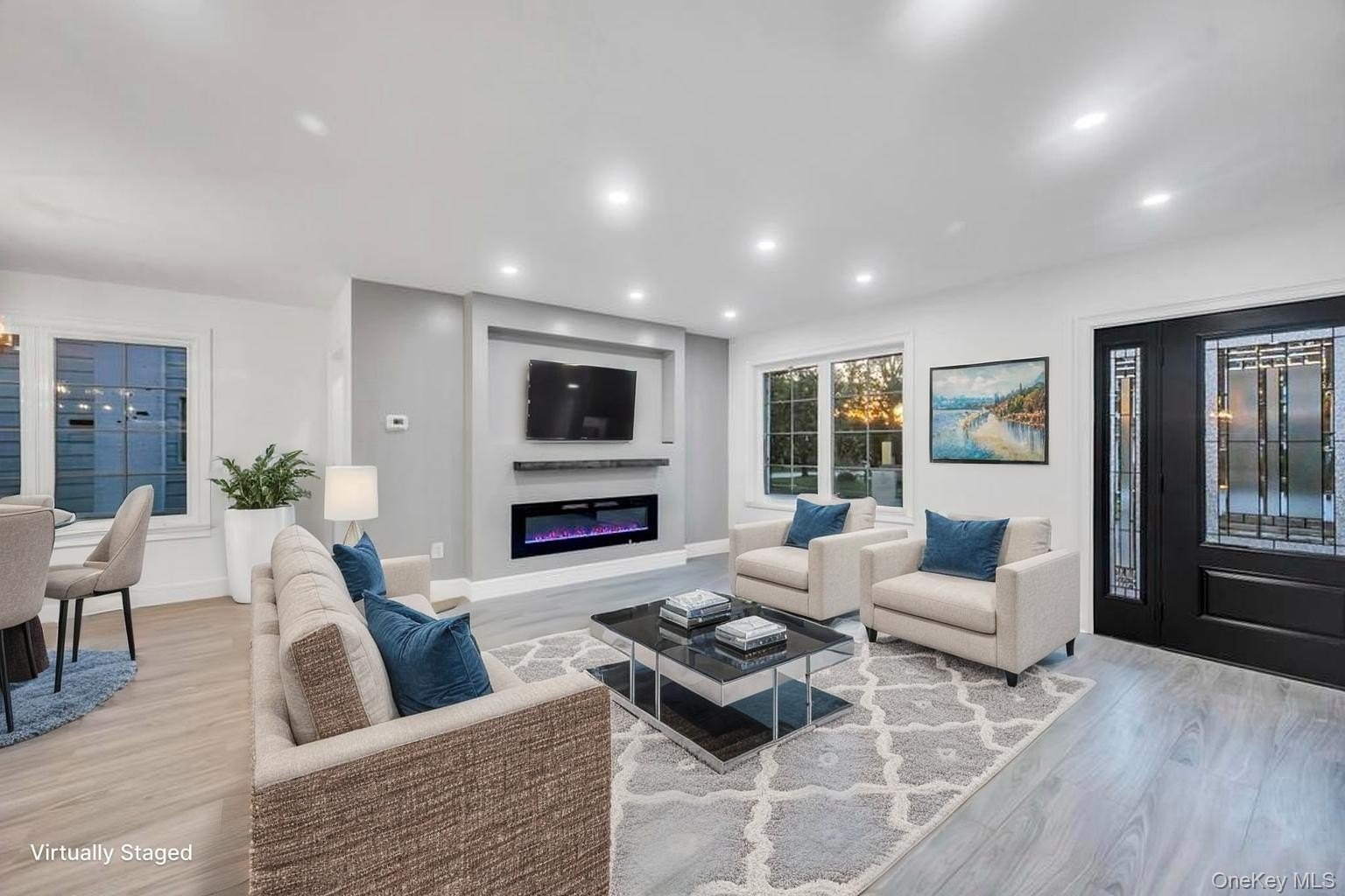 Brand New Modern Colonial in Prime Valley Stream Location! Welcome to this stunning new construction, a beautifully designed modern colonial that perfectly blends elegance, comfort, and functionality. Located just one block from the famous Arthur J. Hendrickson Park, this home offers luxury living in an unbeatable Valley Stream location, close to public transportation, shopping, and top-rated schools. The exterior features a paved driveway, vinyl siding with elegant stone accents, and a fenced backyard complete with a spacious deck and covered porch thats perfect for entertaining or relaxing outdoors. Step inside to a bright and open first floor, where you're welcomed by a beautiful living room with a sleek electric fireplace, a chef's kitchen with premium finishes and a large center island, a formal dining area, plus a bedroom and full bath thats ideal for guests or extended family. Upstairs, you'll find two additional bedrooms and a modern full bath, along with a huge master suite that feels like your own private retreat. The master offers his-and-hers walk-in closets and a luxurious ensuite bath with spa-like details and modern finishes. The finished basement adds incredible versatility, featuring a half bath, washer/dryer area, and plenty of space for a home office, playroom, or guest suite. Every detail has been thoughtfully crafted, from the modern exterior to the open-concept interior and high-end finishes throughout. Don't miss the opportunity to own this move-in-ready Valley Stream gem, where modern design meets everyday convenience in one of Long Island's most sought-after communities.