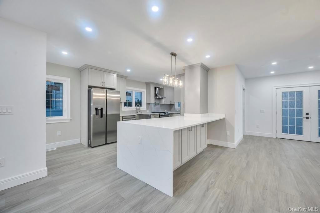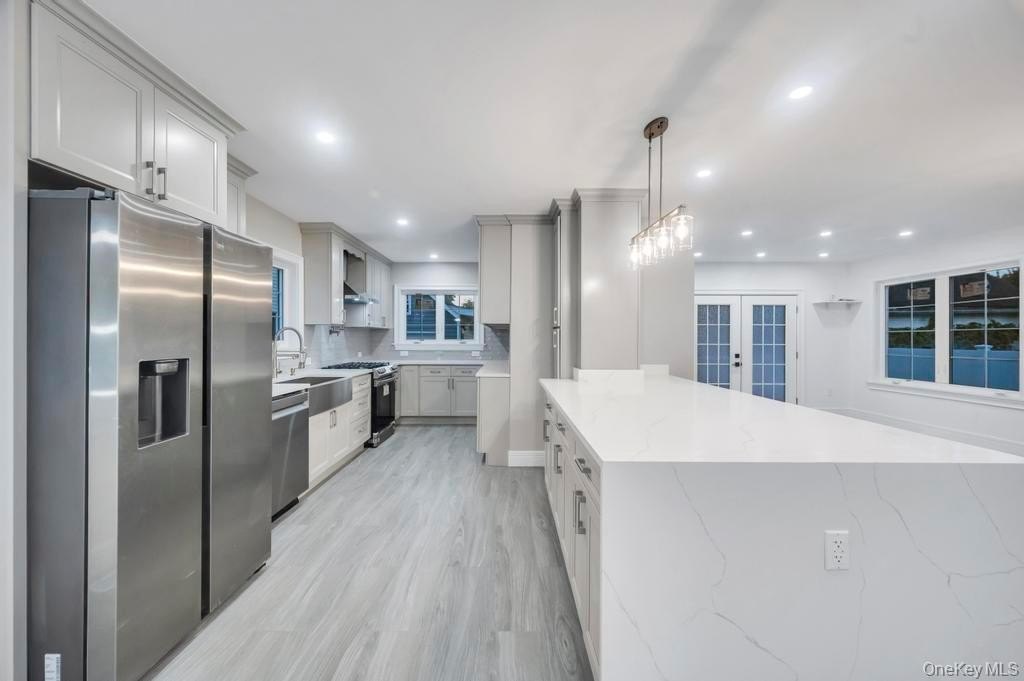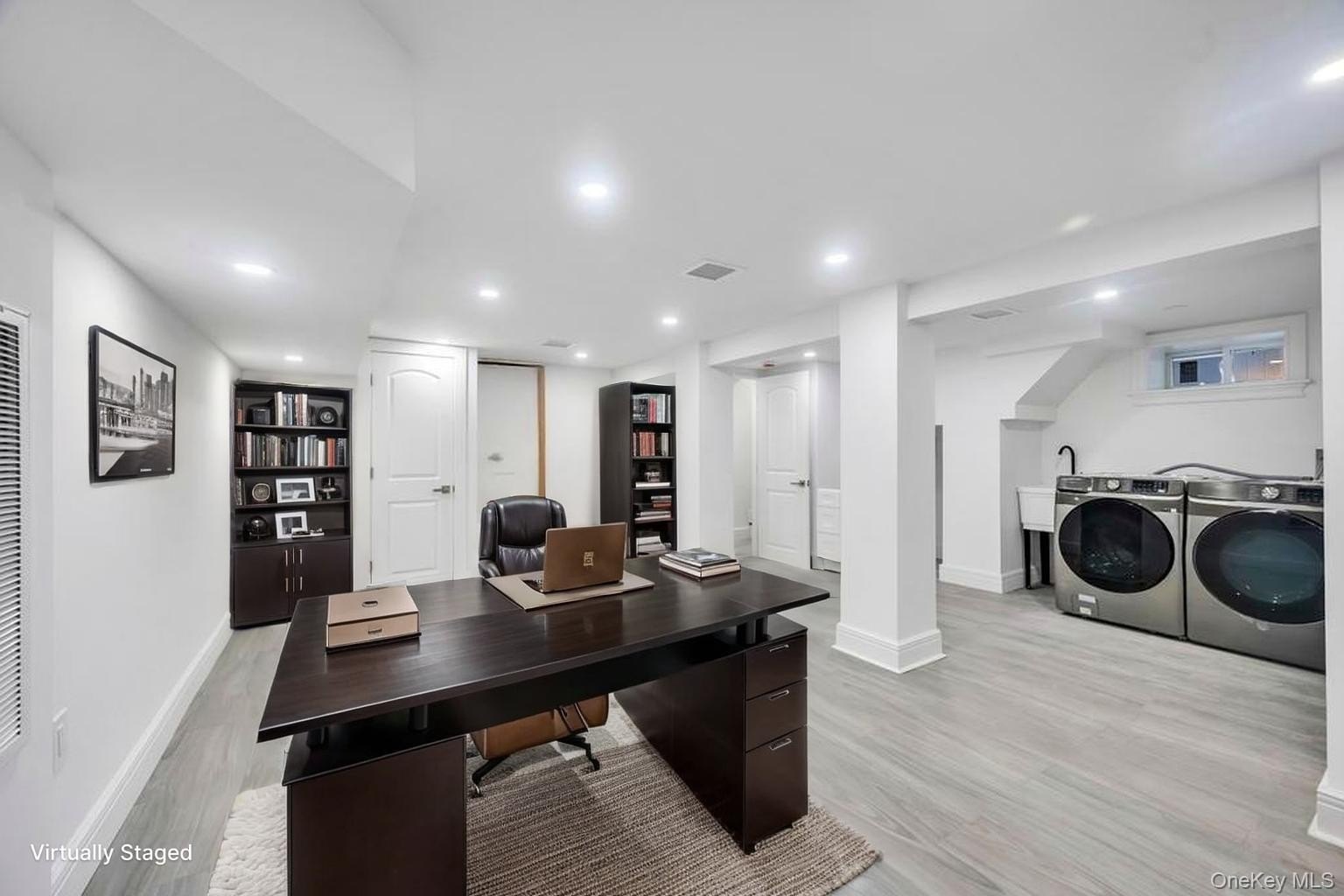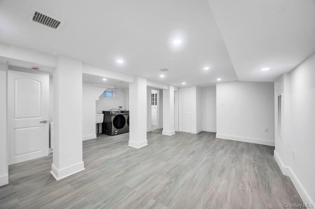 Brand New Modern Colonial in Prime Valley Stream Location! Welcome to this stunning new construction, a beautifully designed modern colonial that perfectly blends elegance, comfort, and functionality. Located just one block from the famous Arthur J. Hendrickson Park, this home offers luxury living in an unbeatable Valley Stream location, close to public transportation, shopping, and top-rated schools. The exterior features a paved driveway, vinyl siding with elegant stone accents, and a fenced backyard complete with a spacious deck and covered porch thats perfect for entertaining or relaxing outdoors. Step inside to a bright and open first floor, where you're welcomed by a beautiful living room with a sleek electric fireplace, a chef's kitchen with premium finishes and a large center island, a formal dining area, plus a bedroom and full bath thats ideal for guests or extended family. Upstairs, you'll find two additional bedrooms and a modern full bath, along with a huge master suite that feels like your own private retreat. The master offers his-and-hers walk-in closets and a luxurious ensuite bath with spa-like details and modern finishes. The finished basement adds incredible versatility, featuring a half bath, washer/dryer area, and plenty of space for a home office, playroom, or guest suite. Every detail has been thoughtfully crafted, from the modern exterior to the open-concept interior and high-end finishes throughout. Don't miss the opportunity to own this move-in-ready Valley Stream gem, where modern design meets everyday convenience in one of Long Island's most sought-after communities.