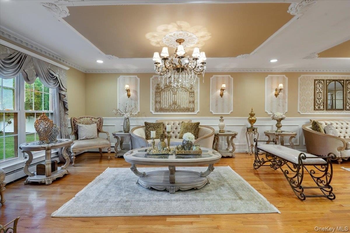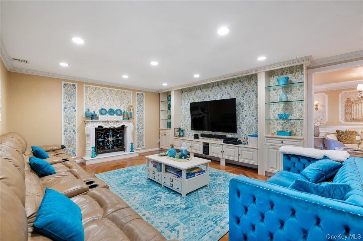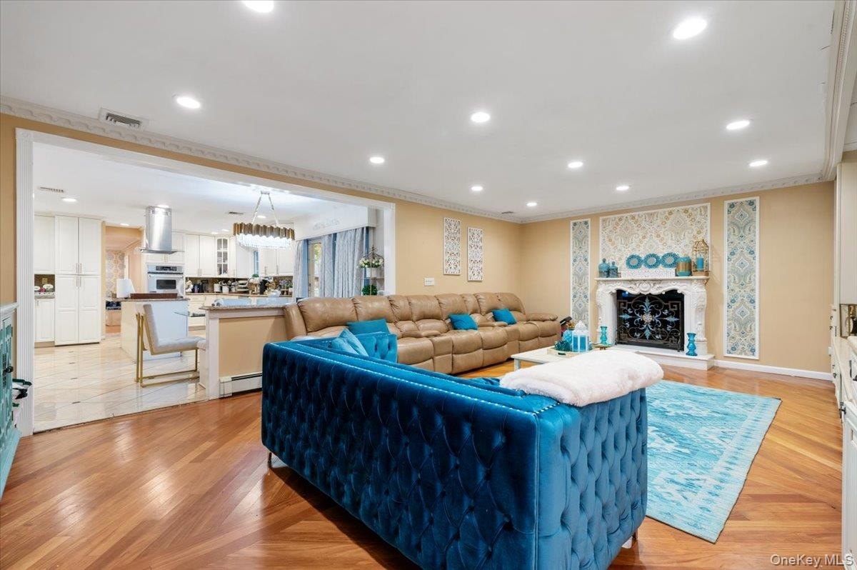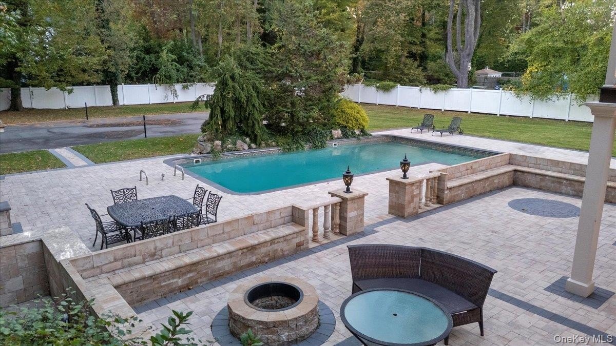 Welcome to this exquisite gated estate, a meticulously updated 5,000-square-foot center hall Colonial masterpiece that exudes timeless elegance and sophistication. Step inside to discover gleaming hardwood floors that flow seamlessly throughout, infusing the space with a warm, inviting ambiance. The expansive layout boasts a grand formal living room bathed in natural light, an opulent formal dining room ideal for lavish gatherings, a state-of-the-art eat-in kitchen with premium finishes, and a cozy den anchored by a majestic fireplace. Enhancing the main level's allure is a versatile bonus living room and a luxurious guest bedroom suite, offering unparalleled convenience and privacy. Ascend to the sumptuous primary suite, where a crackling fireplace and private balcony provide breathtaking views of the sprawling backyard oasis. This serene retreat features a shimmering inground pool, meticulously laid pavers, and an expansive deck-perfect for sophisticated entertaining or tranquil relaxation under the stars. This exceptional property masterfully harmonizes the finest in indoor luxury with idyllic outdoor living. Descend to the fully finished basement, a versatile haven for a bespoke home office or indulgent recreational space. Complete with a tennis court (offered as is) and served by the prestigious Half Hollow Hills school district, this residence is a rare gem for the discerning buyer.