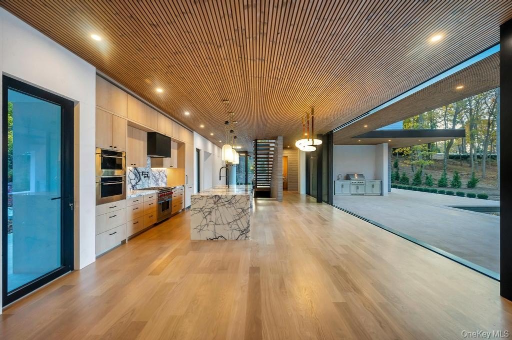 Where modern architecture meets the serenity of the sea, 28 Watch Way stands as a bold statement of design and lifestyle on Long Island's Gold Coast. Designed by the renowned Philip Rossillo of PRDG Architecture + Design and developed by Hither Hills Group, this newly completed 5,000+ sq. ft. residence redefines coastal luxury across three levels of inspired living. Nestled within Watch Bay, an exclusive enclave of just four custom homes with private beach access spanning nearly 1,300 linear feet and breathtaking views of the Long Island Sound, this five-bedroom, five-and-a-half-bath estate captures the essence of refined waterfront living-without compromise. Every element of this home has been curated to elevate daily life: Acoya wood siding and Turkish limestone create a seamless transition from exterior to interior, while floor-to-ceiling windows flood the open living spaces with natural light and unobstructed water views. The chef's kitchen anchors the main level with its custom millwork, integrated appliances, and waterfall island designed for entertaining and connection. A first-floor en suite provides effortless comfort for guests, while the primary suite on the upper level offers a spa-like retreat-complete with radiant heated floors, walk-in closet, and a floor to ceiling windows overlooking the Sound. Outdoors, luxury unfolds in every direction: a heated saltwater pool and spa, outdoor kitchen, and fireplace lounge invite you to savor the seasons, while a 1,500+ sq. ft. rooftop terrace crowns the home with panoramic views stretching across the water and coastline. Designed for both beauty and function, the home features a full 2,500 sq. ft. finished lower level, a two-car garage with high ceilings, a Navien high-efficiency heating system, smart-home integration, radiant flooring, and a whole-home generator for peace of mind. Dock permits have been submitted, adding yet another layer of value and access to the waterfront lifestyle. Every detail of 28 Watch Way speaks to craftsmanship, innovation, and tranquility-a home designed not just to live in, but to feel. Welcome to Watch Bay. Where luxury meets legacy.