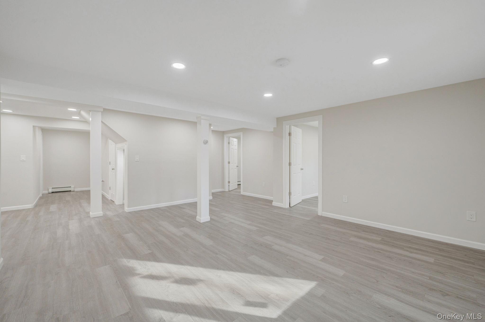 Step into style and comfort at 28 Sanford Street in South Huntington! This beautifully updated home offers a bright, open floor plan with gleaming hardwood floors and abundant natural light throughout. The brand-new white kitchen features quartz countertops, sleek cabinetry, and all new stainless-steel appliances, flowing effortlessly into the living and dining areas - perfect for entertaining or everyday living. Every bathroom is completely new, showcasing modern tile work and designer finishes. The primary suite is a peaceful retreat with its own private bath and direct access to a spacious deck overlooking the yard - the ideal spot for morning coffee or evening unwinding. The fully finished lower level provides incredible flexibility for extended family or guests, featuring a modern full bath, rooms, a laundry area, and large sliders leading to the backyard. Possible Mother Daughter with proper permits! Upstairs, the lofted living area offers an airy, open layout - perfect for a home office, creative space, or additional bedroom setup. Additional highlights include newer windows, a 1-car garage, and thoughtful updates throughout. With nothing to do but move in, this home delivers modern luxury, and versatility - all in a prime South Huntington location close to schools, shopping, and major roadways.