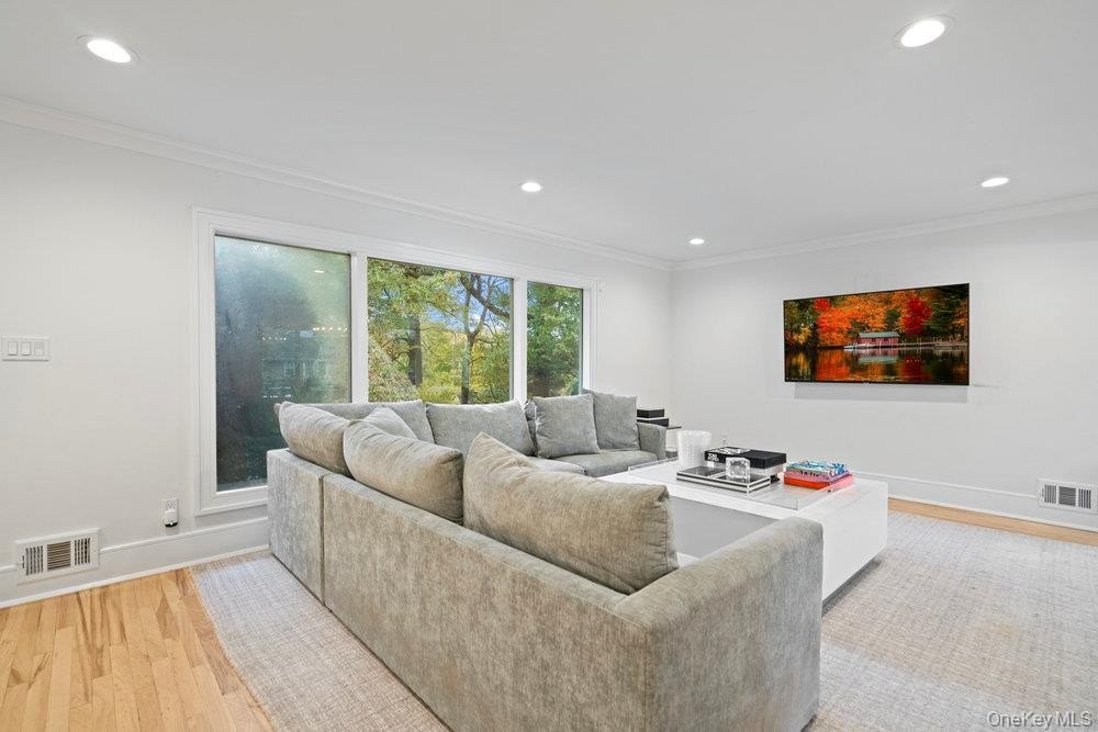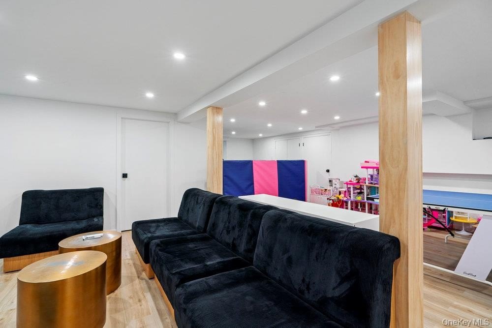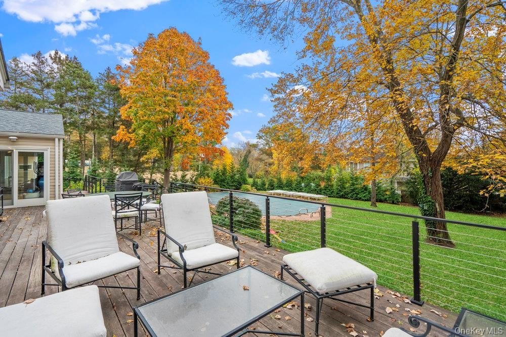 Elegant Move-In-Ready Ranch with Pool, Office, and Full Finished Basement in the Syosset School District. Welcome to 28 Elm Street, a beautifully renovated five-bedroom, three-bath ranch offering the perfect combination of modern design, functionality, and timeless comfort. Located on a quiet, tree-lined street in one of Woodbury's most desirable neighborhoods, this home is ideal for everyday living and entertaining alike. Step inside to a sun-filled open layout 5 bedroom ranch with finished basement: Featuring a spacious living room, den, dining area, and chef's kitchen with custom cabinetry, quartz countertops, and premium stainless-steel appliances. A separate home office provides the perfect space for work or study and gym. The main level offers five generous bedrooms, including a serene primary suite with an elegant ensuite bath. The fully finished lower level extends the living space with a guest bedroom, full bath, full attic with HVAC, recreation area, and gym-ideal for extended family or guests. Step outside to your private backyard oasis featuring a sparkling in-ground pool, expansive patio, and beautifully landscaped grounds-perfect for relaxing or hosting gatherings. Highlights: Five bedrooms + home office | Three full baths. Full finished basement with bedroom and bath. In-ground pool and private landscaped yard. Designer kitchen with quartz counters and premium appliances. Hardwood floors and recessed lighting throughout. Attached two-car garage and spacious driveway. Award-winning Syosset School District. Perfectly located near parks, shopping, and fine dining, 28 Elm Street combines luxury living with everyday comfort in the heart of Woodbury.