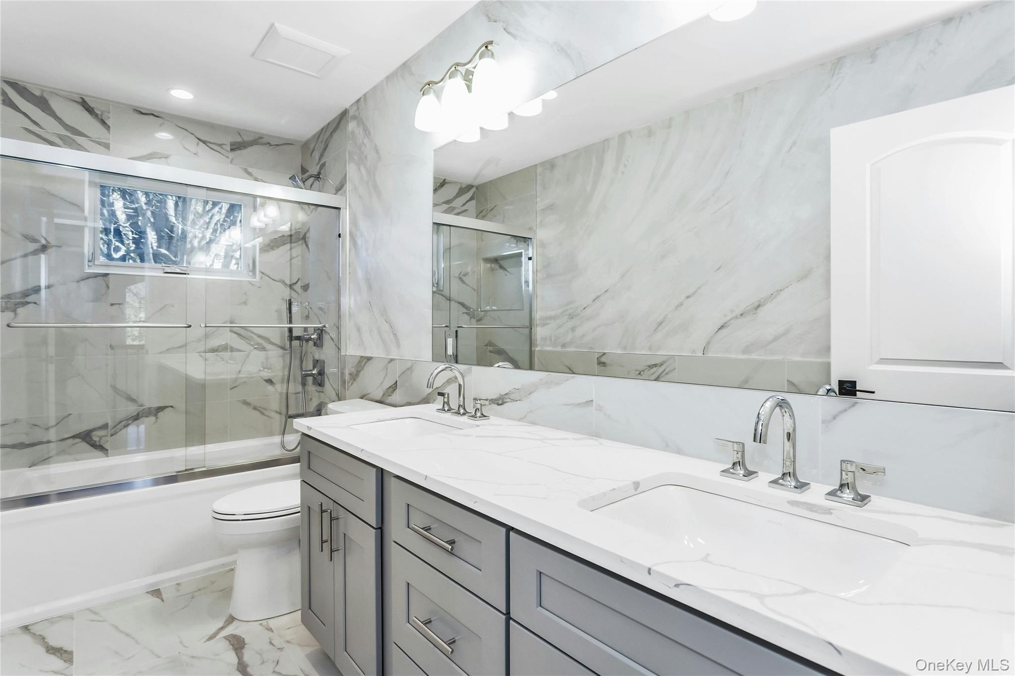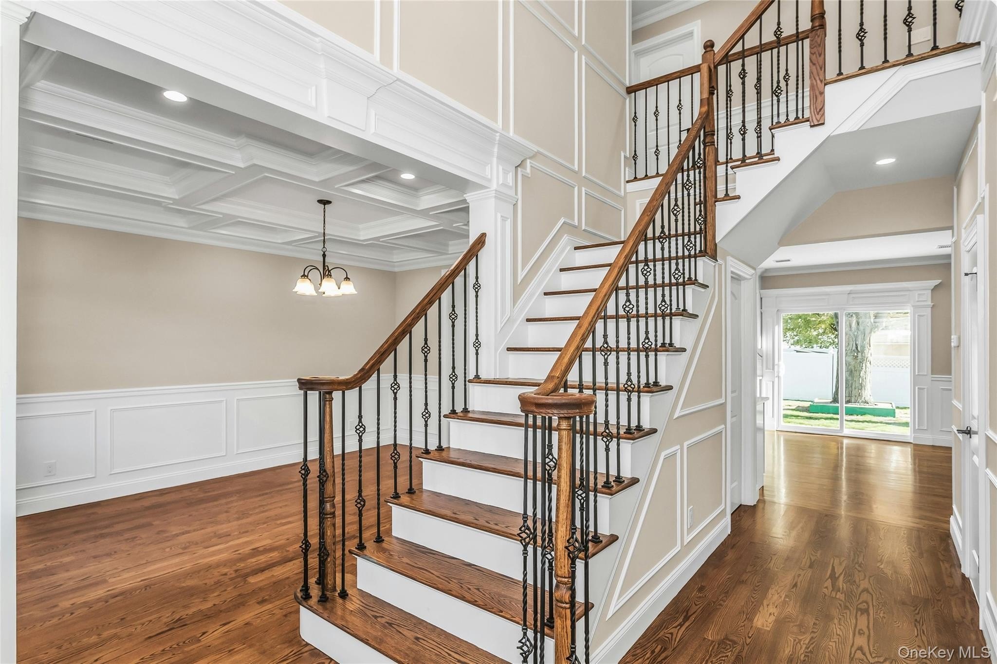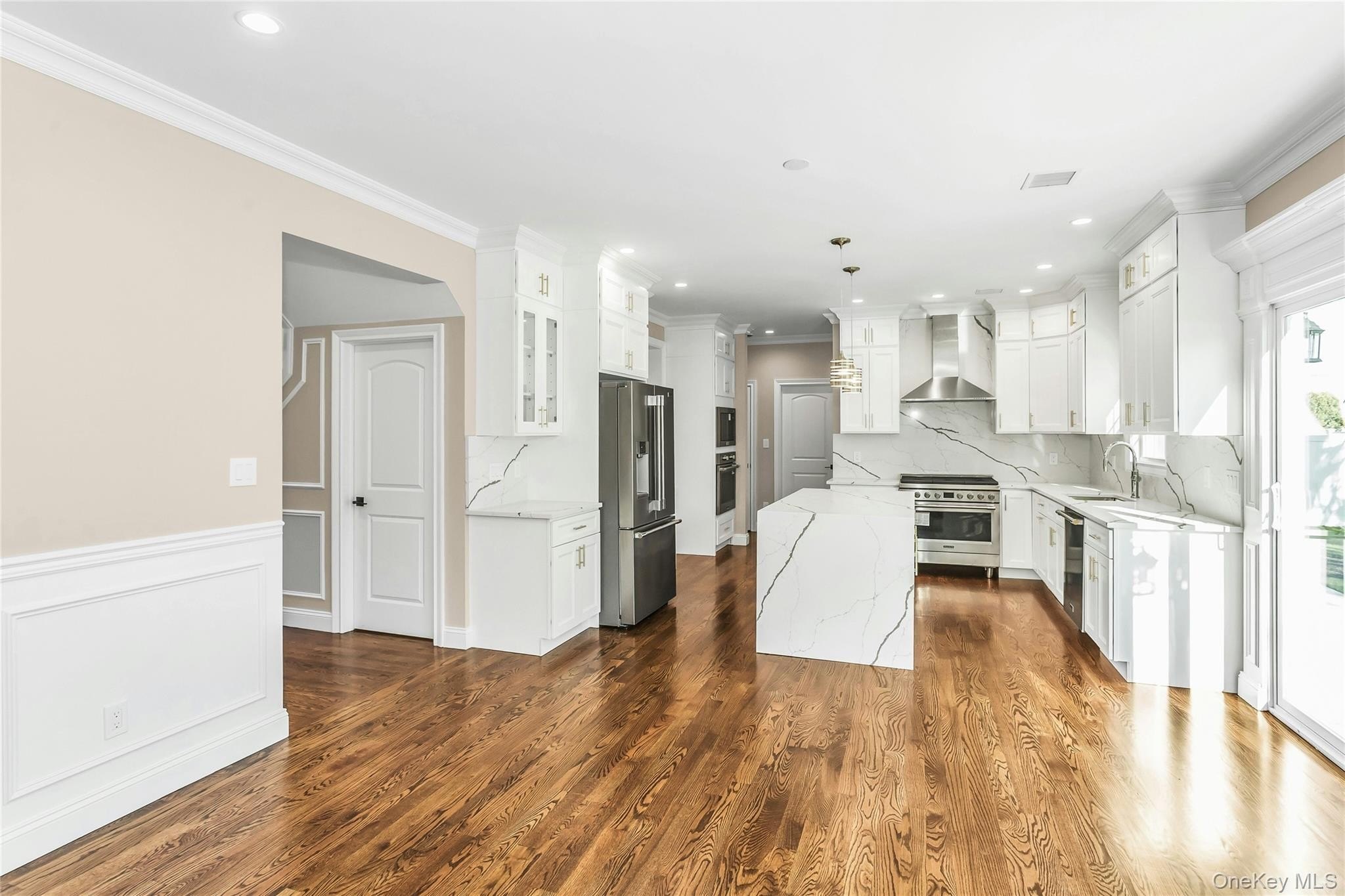 Brand New Construction located in the heart of Hicksville, near shopping, dining, transportation and schools. True Center Hall Colonial with 5 spacious bedrooms, 4.5 baths and 1.5 car garage. Oversized guest bedroom and full bath located on the first floor make an ideal living space or bedroom on the first floor. Open concept layout with a gourmet chef's kitchen features high-end stainless steel appliances, double cabinetry to the ceiling and an oversized center island. Sun drenched living room, coffered ceiling in the dining room and elegant millwork throughout the entire house. Junior suite with full bath located on 2nd floor. Primary bedroom with tray ceiling showcases a grand walk-in closet and spa-like primary bathroom. Unfinished full basement with separate outside entrance offers endless possibilities for customization. Fully white vinyl fenced property with in-ground sprinklers and backyard patio perfect for entertaining.