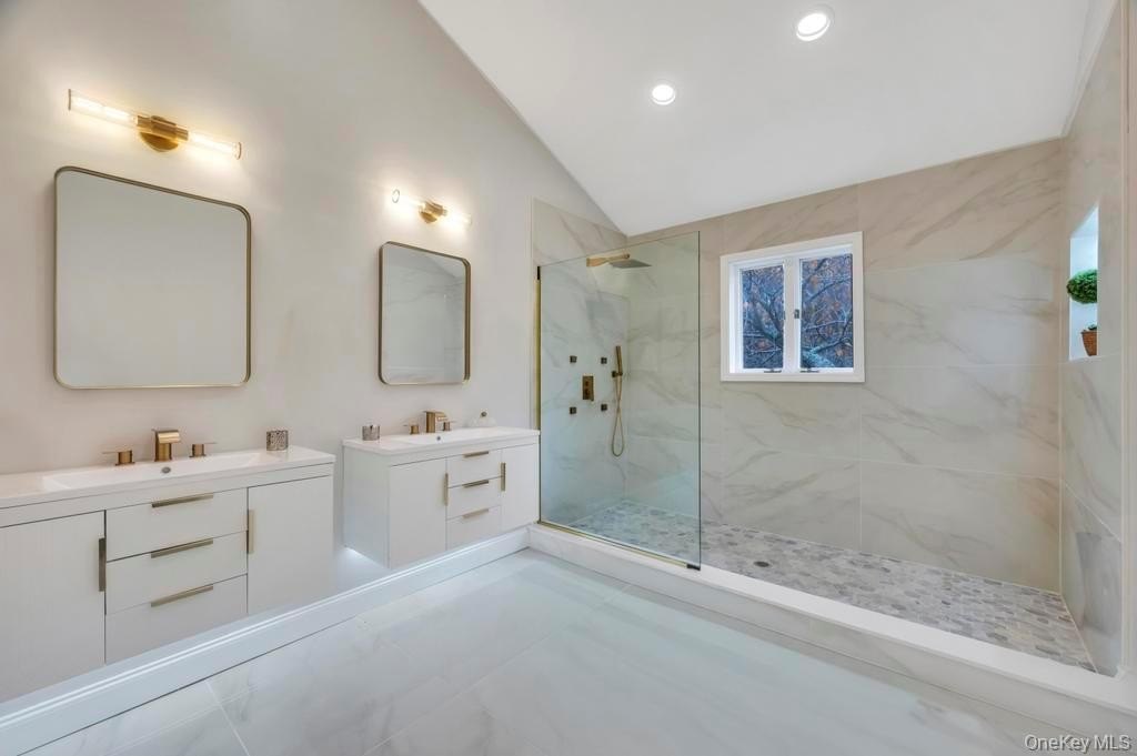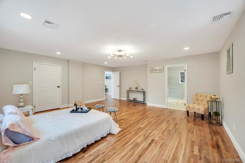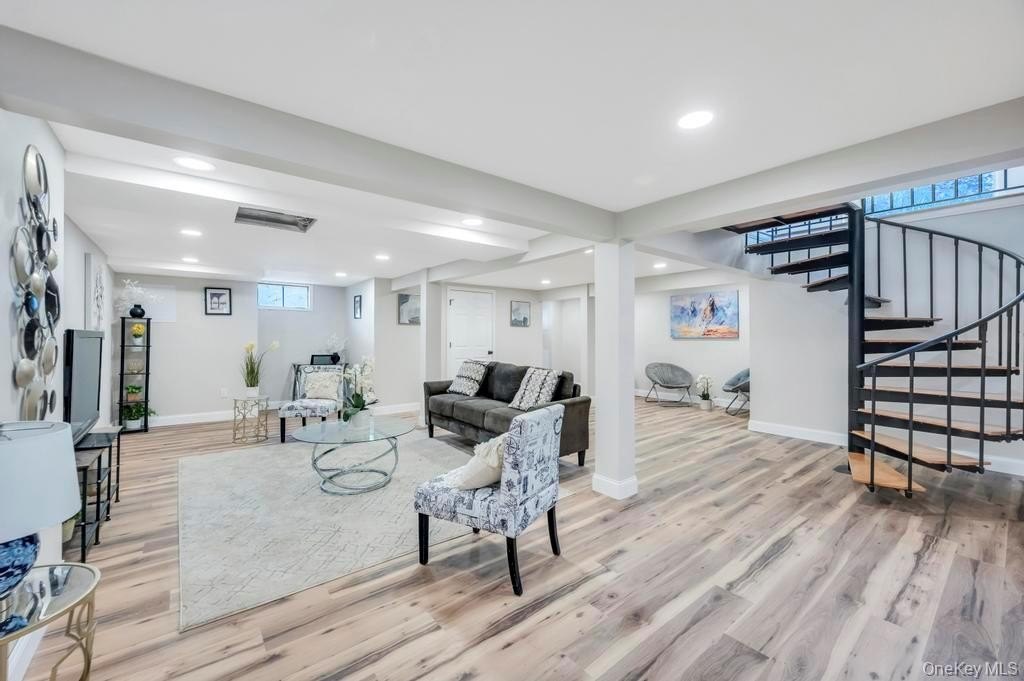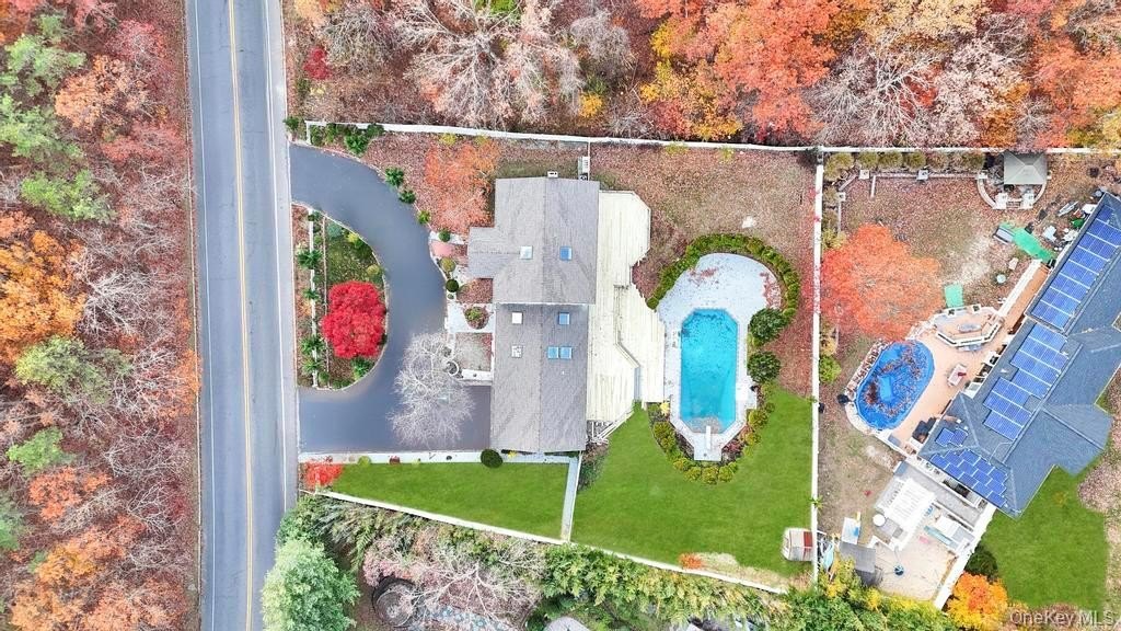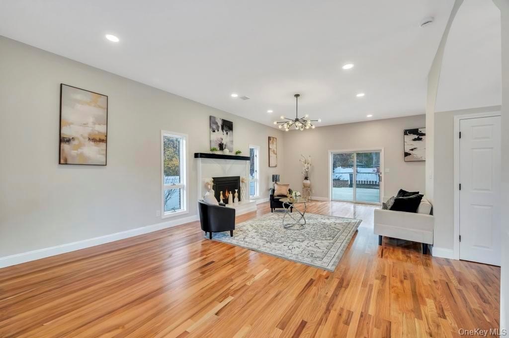 Welcome to 100 Old Northport Road in Kings Park. This 5-bedroom, 3.5-bath colonial in the Smithtown School District offers exceptional space, natural light, and an entertainer-friendly layout. The entire first floor features brand-new wood floors and high ceilings, creating an open and inviting flow across multiple sitting areas. The huge kitchen is the centerpiece, highlighted by impressively high vaulted ceilings, large skylights, modern finishes, and an oversized island. Two sliding doors from the main level lead out to a massive deck overlooking the in-ground pool. Upstairs, you'll find well-appointed bedrooms along with a renovated primary suite featuring a large walk-in shower. A fully finished basement adds valuable additional space for a variety of uses. Outside, enjoy the expansive deck, mature landscaping, an in-ground pool, and a U-shaped driveway providing easy access and ample parking. The home has been updated throughout, including a new roof, offering a complete indoor-outdoor setup ready for its next owner.