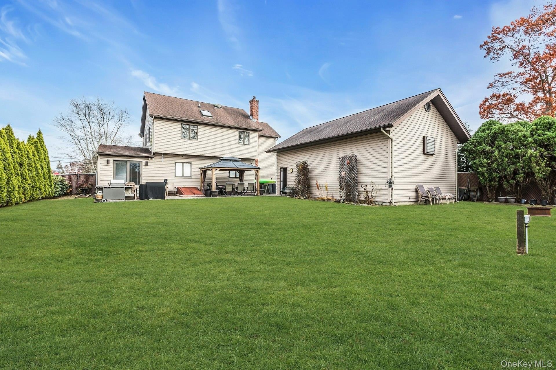 Welcome to 94 Pequot Lane, East Islip! Nestled south of Montauk in the heart of East Islip, this beautiful custom-built Colonial offers three spacious bedrooms and two full bathrooms. Step inside to find a lavish living room, a granite-lined kitchen, and a tremendous formal dining room-ideal for entertaining guests. A full bath with a Jacuzzi shower completes the main level. Upstairs, you'll find an exquisite master suite that is truly oversized, featuring generous closet space and a luxurious full bath. Two additional bedrooms provide plenty of room for family or guests. The home also offers a basement for storage, central air conditioning, and central vac for added convenience. Car enthusiasts will fall in love with the incredible 30' x 40' detached four-car garage, complete with a crane system-perfect for lifting or working on vehicles. Plus, there's an additional one-car attached garage, allowing space for up to five cars total. Enjoy outdoor entertaining on the custom patio and relax in the private backyard setting. Located in the highly desirable East Islip School District, this property combines comfort, craftsmanship, and one-of-a-kind amenities that truly set it apart.