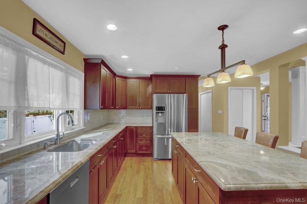 JUST LISTED - FIRST SHOWING! Welcome to 25 Sterling Place, a beautifully updated and spacious home nestled on one of Malverne's most peaceful tree-lined streets. This residence offers an exceptional blend of modern upgrades, generous living spaces, and desirable amenities perfect for anyone seeking comfort, style, and convenience. Step inside to a large, newly renovated chefs eat-in kitchen featuring a center island, beveled granite countertops, stainless steel appliances, custom wood cabinetry, a double wall oven, and a five-burner gas cooktop. This dream kitchen flows seamlessly into a huge open-concept living room and an oversized dining room, making it ideal for gatherings and everyday living. Beautiful hardwood floors add warmth and sophistication throughout. With three large bedrooms, including a king-size primary suite with a private full bath, plus two versatile bonus rooms, this home provides all the space you need-whether for guests, a home office, playroom, or hobby area. There are three full bathrooms in total, offering comfort and privacy on every level. Outside, enjoy the convenience of a circular driveway, a large yard with patio perfect for entertaining, and in-ground sprinklers to keep your landscape lush. Additional features include gas heat and hot water, a whole-house water filtration system, central air conditioning, central vacuum, a newer roof, a full attic with pull down ladder and abundant closets and storage throughout. A full finished basement with an outside entrance and egress window offers even more possibilities-storage, recreation, or future expansion. Located close to village shops, schools, parks, transportation, and all that Malverne has to offer, this home delivers space, upgrades, and outstanding value.