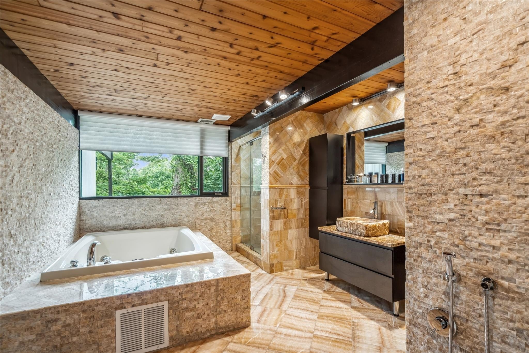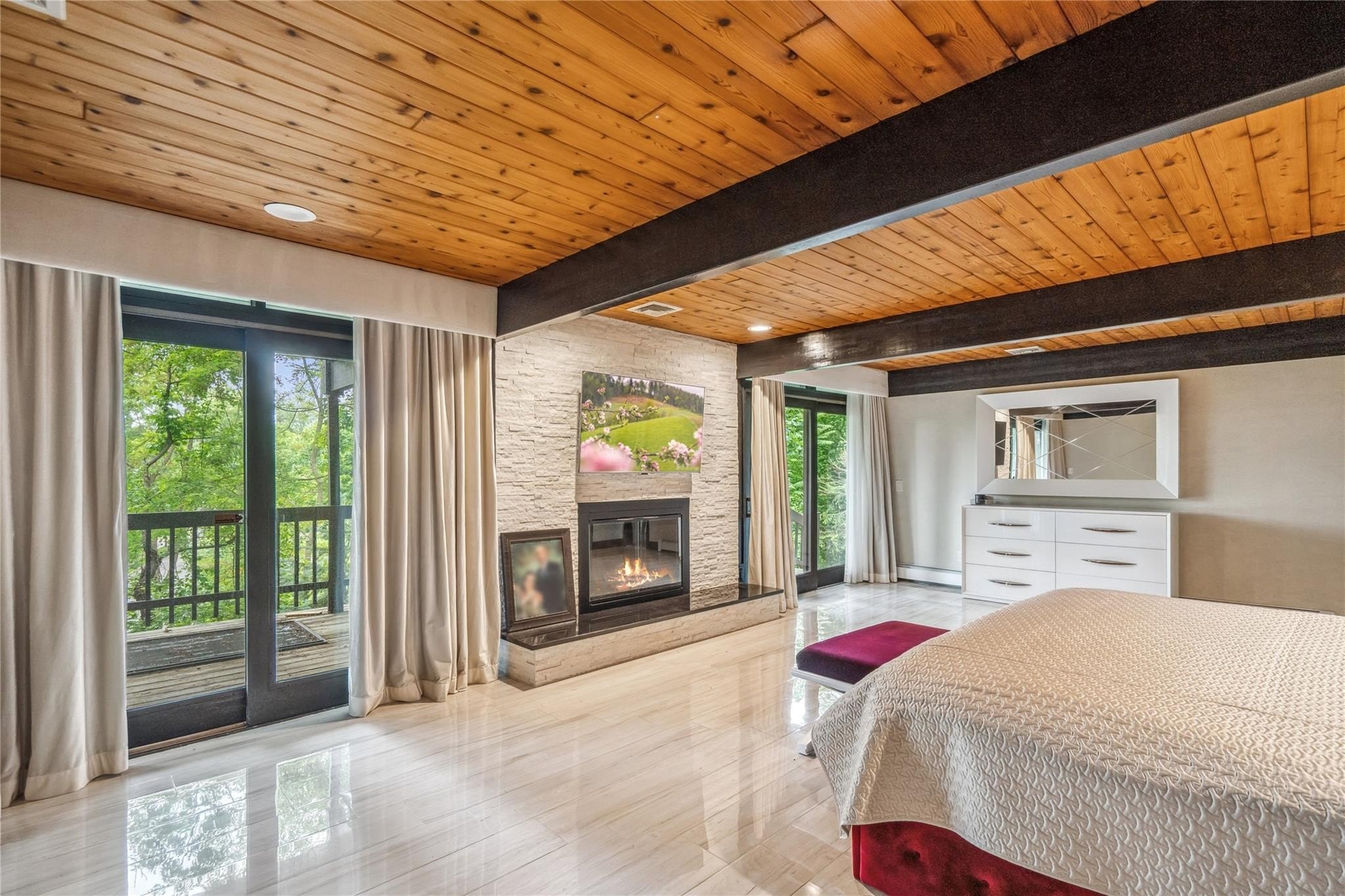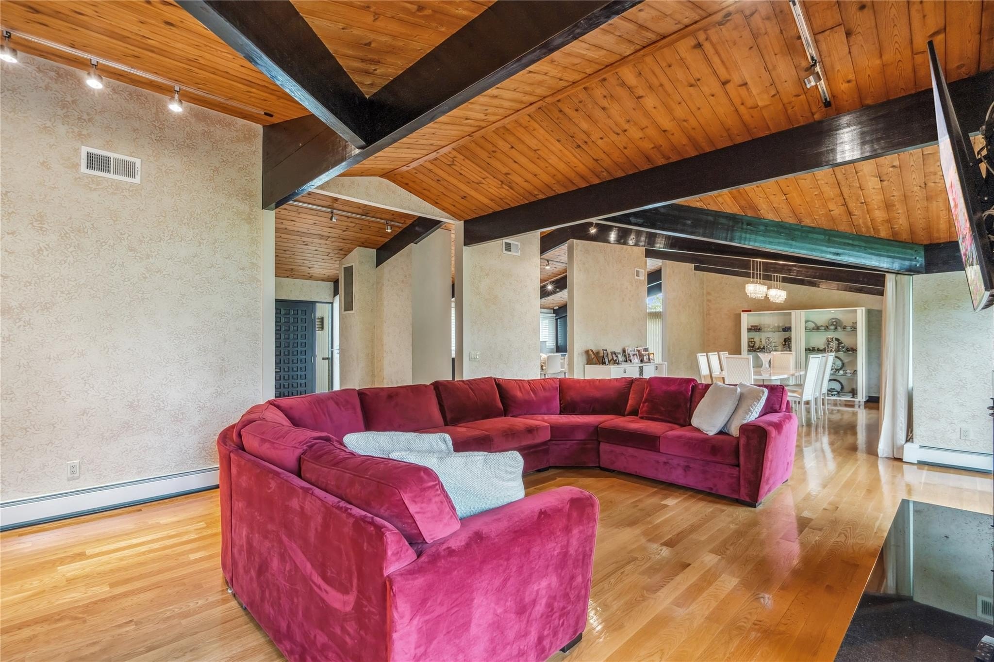 Beautifully renovated 3-bedroom, 2.5 bathroom ranch situated on a 0.62-acre lot in Roslyn Heights. This spacious home offers living space with an open-concept layout, hardwood floors, cathedral ceilings, and a fireplace. The updated kitchen features quartz countertops, custom cabinetry, and stainless-steel appliances. The primary suite includes a walk-in closet and a modern en-suite bath with a walk-in shower and stone vanity. Enjoy outdoor living with three spacious decks, perfect for entertaining or relaxing. Additional features include a finished basement, central air, natural gas heating, smart home technology, a long private driveway, and a detached 2-car garage. A turnkey property offering comfort, style, and modern amenities.