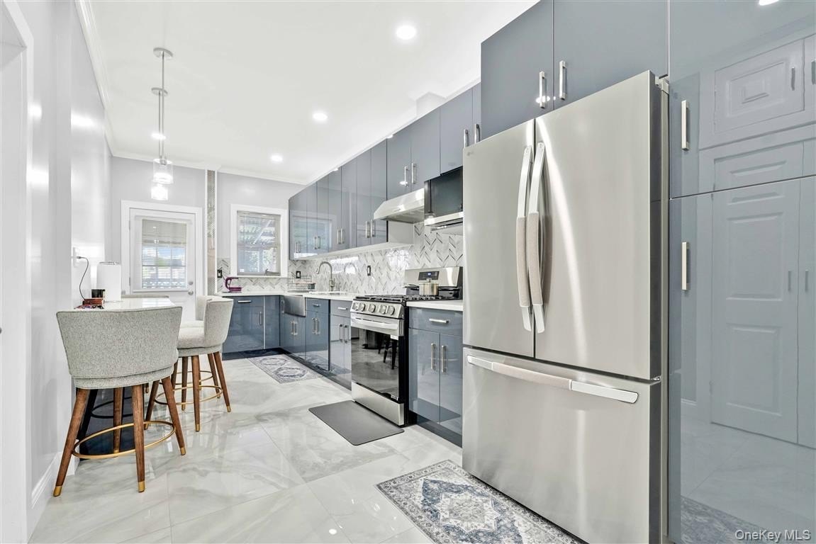 Meticulously renovated and charming two-family residence set on a 20x100 lot (2,000 sq. ft.) with a 20x55 building size (2,320 sq. ft.) in a sought-after residential area. The first floor offers a bright living room, elegant formal dining room, a magnificent state of the art eat-in kitchen (1 year old) with modern wood cabinets, granite countertops, stainless steel appliances and recessed lighting, two bedrooms, and an updated full bathroom, with access to a spacious private backyard. The second floor provides a generous living room, formal dining room, sleek modern eat-in kitchen (1 year old) with high quality cabinets, granite countertops, stainless steel appliances and recessed lighting, three bedrooms, and an updated full bathroom. A finished basement with a bathroom offers additional versatility. This home is enhanced by gleaming hardwood floors, new kitchens, two 12-year-old boilers, two new hot water heaters (1 year old), new plumbing, two gas meters, two electric meters, and a skylight. Conveniently located close to shopping, public transportation, houses of worship, and schools. Property will be delivered vacant. Property will be delivered vacant.