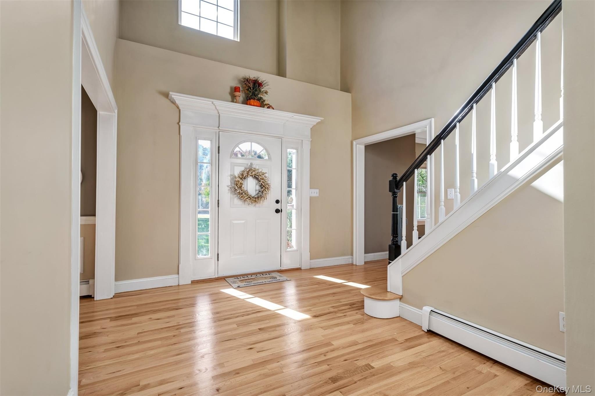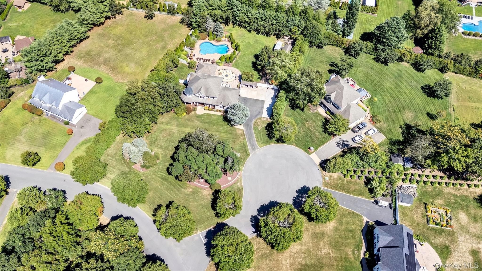JUST REDUCED BY 100K!! Welcome Home to 2 Derby Court, Aquebogue, Elegance With Resort-Like Surroundings! Set on 1.25 acres landscaped to perfection, this fabulous Residence blends timeless architecture with modern comfort. Enveloped by privacy hedges, specimen plantings, and established gardens, the property offers both beauty and seclusion. Inside, you'll find generously sized rooms with newly refinished hardwood floors, crown molding, and soaring 9-foot ceilings on the first floor. The Family Room features an attractive wood burning stove, adding extra warmth and comfort on those chilly fall and winter days! The eat-in Kitchen opens seamlessly to the Family Room, creating a flowing, inviting atmosphere. The home offers 4 Bedrooms and 3 1/2 Baths, along with versatile spaces, including an upstairs office. On the lower level, there is an additional Family Room with a large TV and Wet Bar, finished with wood trim and flooring, wonderful for entertainment or simple relaxation. Outdoors, the grounds are designed for leisure and entertaining alike. An oversized heated, 24' x 44' saline, mountain lake kidney pool, creates a resort-like atmosphere, complemented by patios and lounging areas. A covered 24' x 24' pergola, complete with lighting, ceiling fan, and an adjacent fire pit, extends the living space into the outdoors, perfect for year-round enjoyment. There is also a separate outdoor shower and bathroom for added convenience. Another added bonus is the oversized 3 1/2 car garage, a car enthusiast's dream! Let's not forget to mention the full, wrap-around porch with mahogany decking in the front of the home, where one may enjoy their morning coffee along with their favorite reading material. This Aquebogue gem combines classic sophistication with modern amenities, offering an unparalleled opportunity to live the life you so richly deserve, in the very heart of the North Fork!