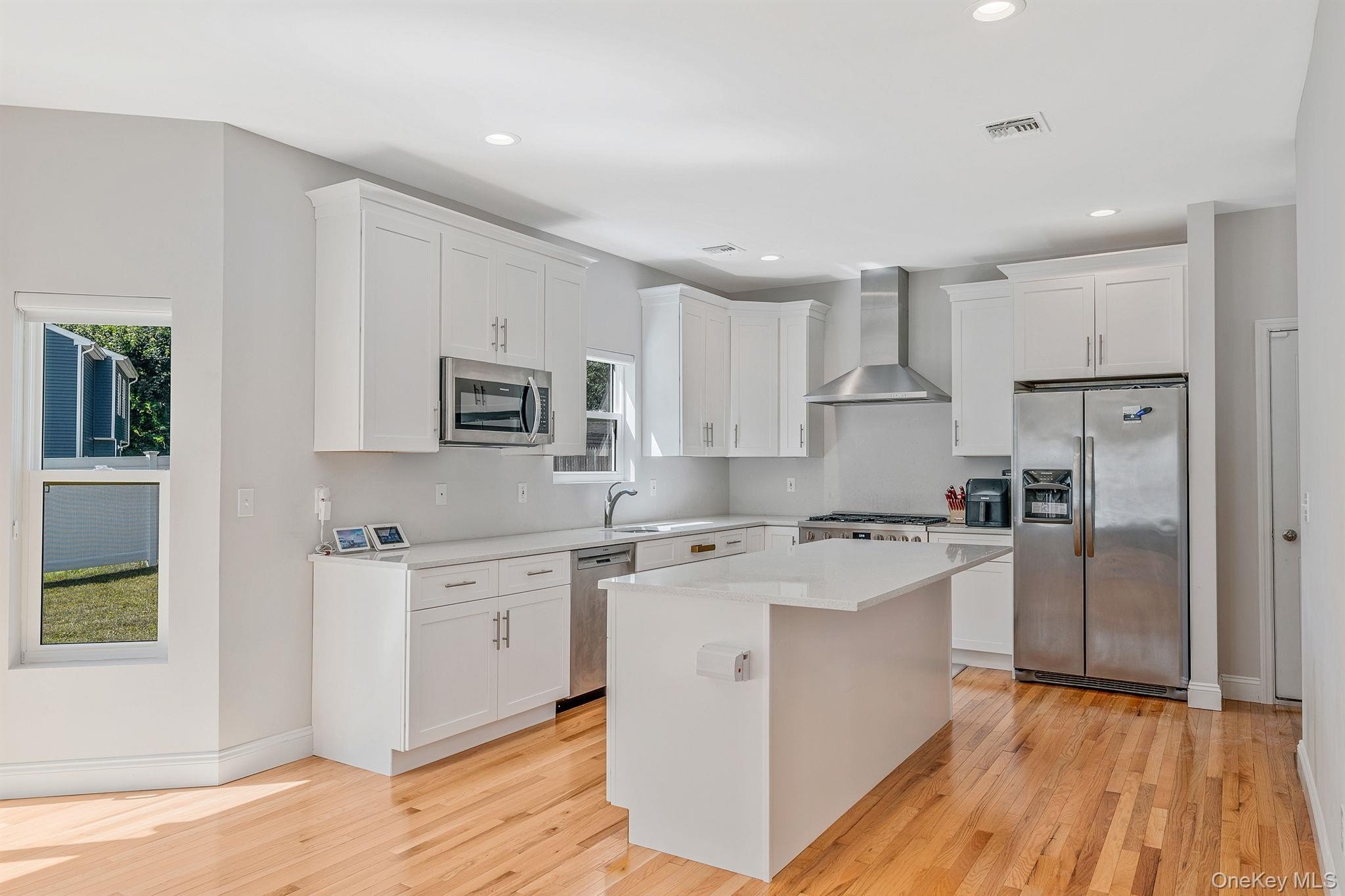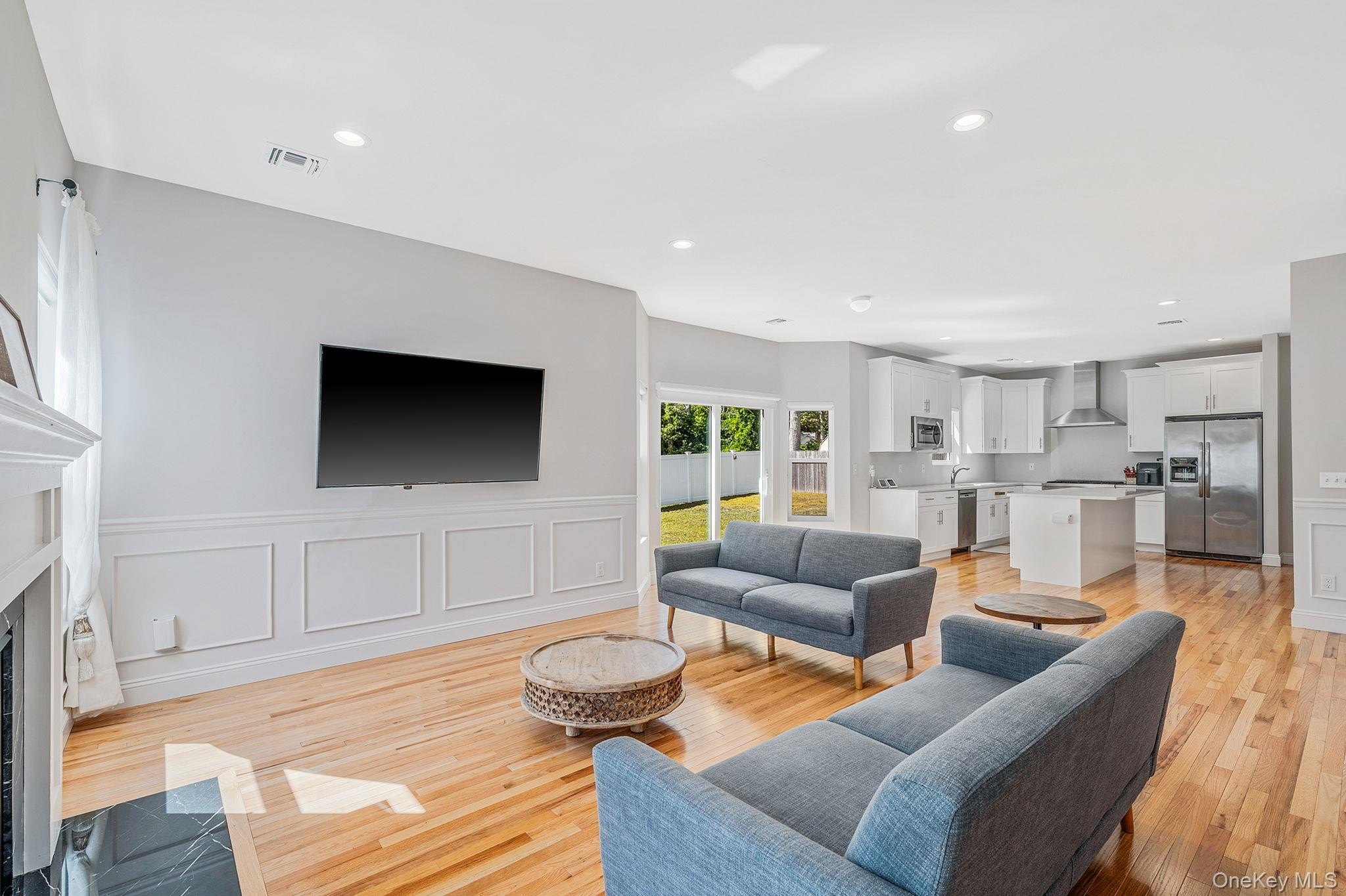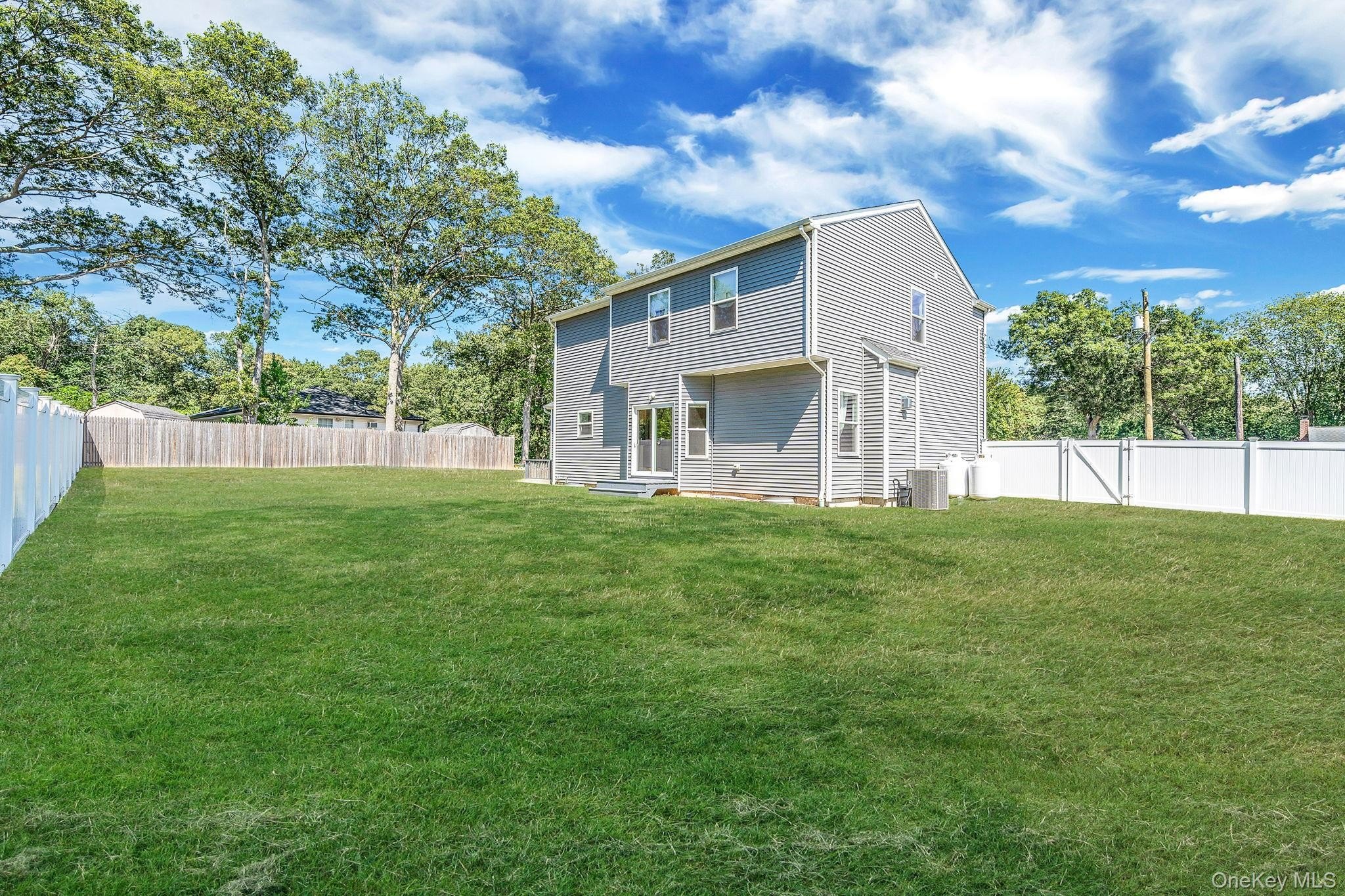 Welcome to this beautifully designed 2021 NEW CONSTRUCTION COLONIAL! Located on a spacious corner lot, this 4-bedroom, 2.5-bath home blends modern design, comfort, and functionality. Inside, you'll find an open concept layout featuring gleaming hardwood floors, wainscoting, custom molding, and recessed lighting throughout. The chef's kitchen is the heart of the home, featuring a large center island, quartz countertops, stainless steel appliances, and plenty of cabinetry. Large windows bring in an abundance of natural light, creating a warm and inviting atmosphere with a convenient powder room that completes the main level. Upstairs, the primary suite offers a walk-in closet and a luxurious en-suite bath with dual vanities, a soaking tub, and a separate shower. Three additional generously sized bedrooms share a beautifully appointed full bath with tub. The FULL INSULATED BASEMENT WITH OUTSIDE ENTRANCE AND 8' CEILINGS offers endless potential, while the attached garage provides easy access to the home. Outdoors, enjoy the charming front porch or the oversized corner lot, fully enclosed with white PVC fencing for privacy and security. Located in the Mount Sinai School District, this home is the perfect place to call your own!