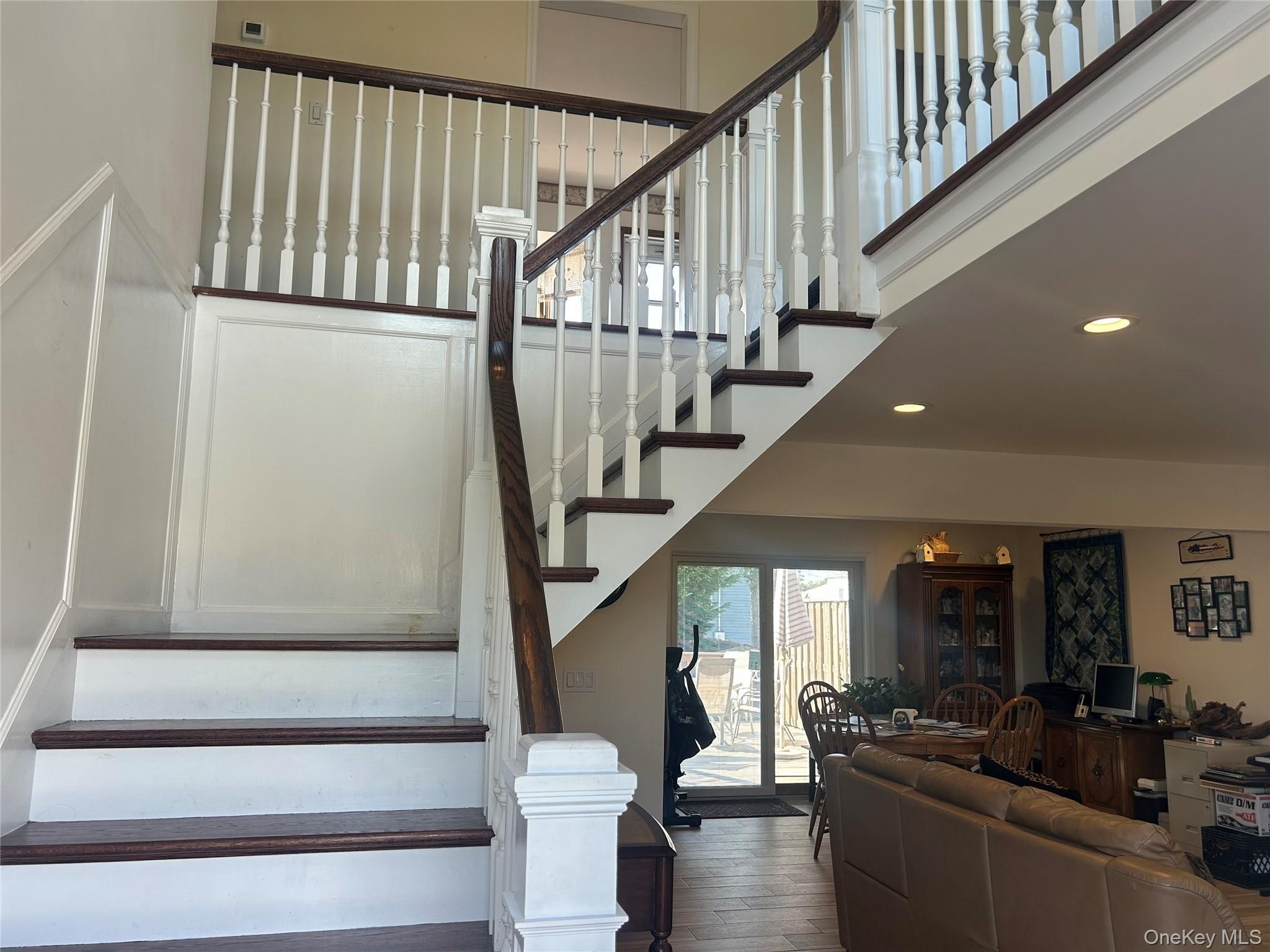 Rare Opportunity - Elevated High Ranch w/Panoramic Views. This stunning high ranch, raised in 2019, offers a one-of-a-kind chance to own a home with sweeping, views of the Great South Bay. From the living room's oversized bay window to every front-facing room, enjoy breathtaking sights of the Robert Moses Bridge, Bergen Point Golf Course, and endless water vistas. Step inside to an open, light-filled layout featuring radiant-heated ceramic tile floors & recessed lighting throughout the first level, & carpeted hardwood floors upstairs.The home includes one-car garage w/a spacious loft for storage, an oversized finished laundry room w/direct yard access, & generous storage options w/a full-length cement crawl space & attic. The first floor opens to a sliding glass door leading to a large bi-level deck overlooking a private, neighbor-free backyard-perfect for entertaining or relaxing in peace. Outdoors, you'll also find a newly installed paver driveway and front steps, extensive security lighting, & a full camera system for peace of mind. Just a short bicycle ride to Venetian Shores beach. For boating enthusiasts, there is even the rare option to purchase the adjacent bulkhead property, complete w/three boat slips & water access-an incredible addition to this already exceptional offering. Don't miss the chance to make this gem your own.