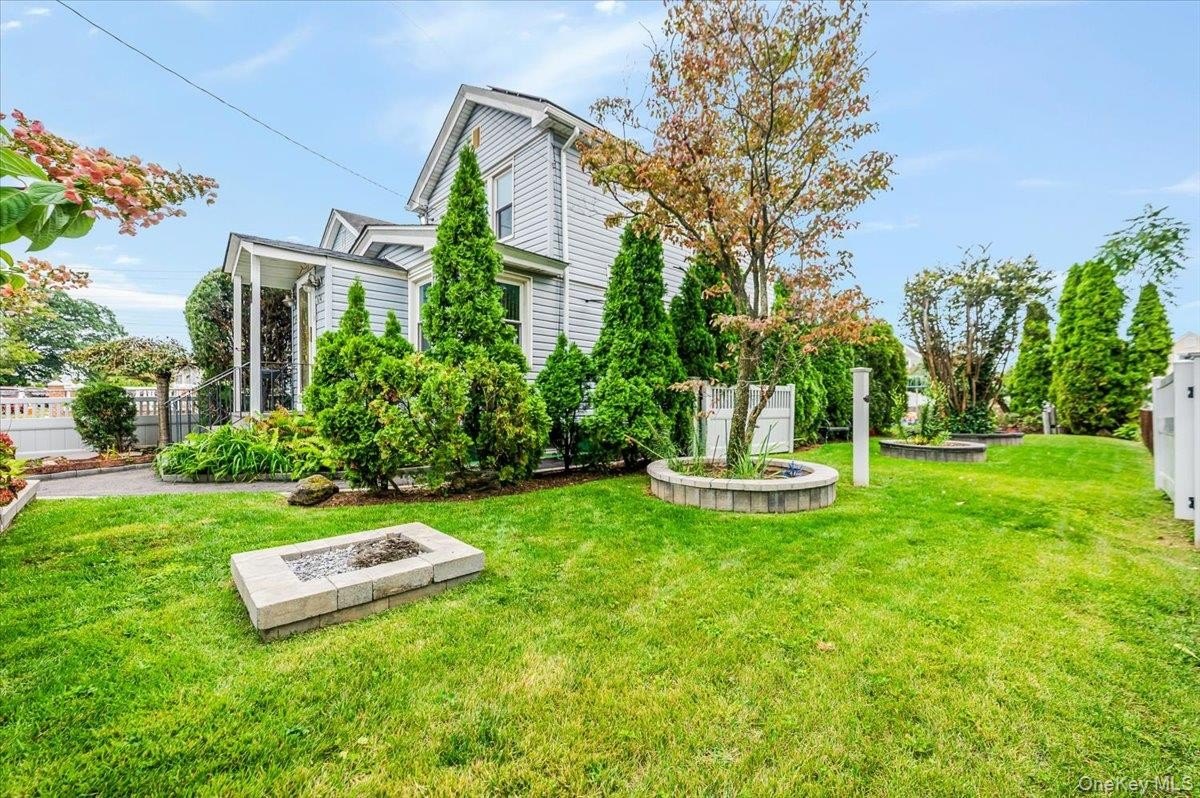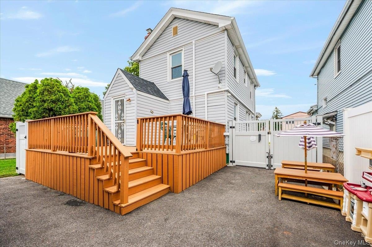 Welcome home to 174 Hoffman Ave, Elmont, NY. This conveniently located home has everything you need for easy living. This fully fenced property is landscaped with beautiful, established evergreens and continually blooming plants creating a serene, park like experience. In the rear of the yard, there is a 2 car garage that can be used for anything you need. Currently it is being used as an "artist's cove". Entrance into a foyer leads to an open Dining Room(previously 3rd bedroom), Living Room, Eat in Kitchen and rear mud room that leads to the yard. The second floor has two bedrooms and a full bathroom. The basement is partially finished and is used as an extension to the "artist's cove" or a perfect den. The washer, dryer and utilities are also in the basement. The house comes with owned solar panels, five ductless split systems for both AC and heat, private driveway, fully fenced, new roof, newer windows, natural gas, in ground sprinklers, security system(both audio and video recording), rear deck, low taxes and so much more. Don't miss this charming home waiting for a new owner to love it as much as the current owner didcall today!