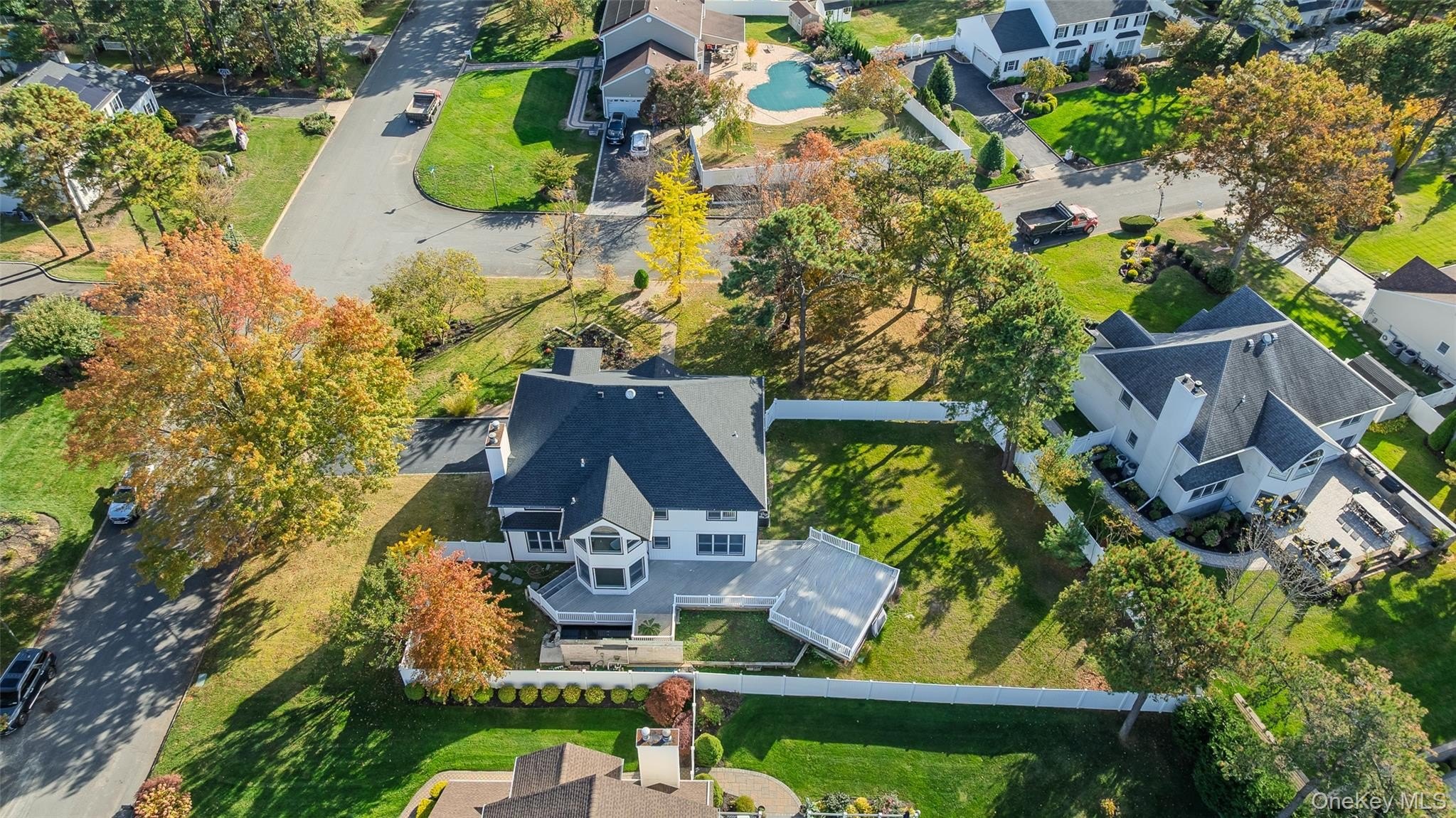 Welcome to 21 Pine Edge Place in Dix Hills. Nestled on a beautiful corner lot in a quiet, private location, this fully renovated 4-bedroom, 3-bathroom colonial combines luxury with modern design. Step inside to a grand double-story entrance that sets an impressive tone. The main level features hardwood floors throughout the living areas, a spacious formal living and dining area, and a brand-new designer kitchen complete with sleek cabinetry, stainless steel appliances, and an oversized island. Just off the kitchen, enjoy a cozy breakfast nook perfect for morning coffee and a den with a fireplace, creating a warm and inviting space to relax. There is also a fully renovated full bathroom that's ideal for guests. Upstairs, you'll find four generous sized bedrooms, including a luxurious primary suite with a spa-inspired bath and a walk-in closet. All the bathrooms have been completely remodeled with stylish finishes and modern fixtures. The laundry room conveniently located on the second floor. Additional upgrades include a new roof, new HVAC systems, a new sprinkler system, koi pond with a waterfall, a two-car garage, elegant millwork throughout the home, and a full finished basement offering plenty of space for recreation, a home gym, or storage. Zoned for Half Hollow Hills School district, 21 Pine Edge Place is move-in ready and beautifully designed for today's lifestyle-offering the perfect blend of privacy, comfort, and sophistication.