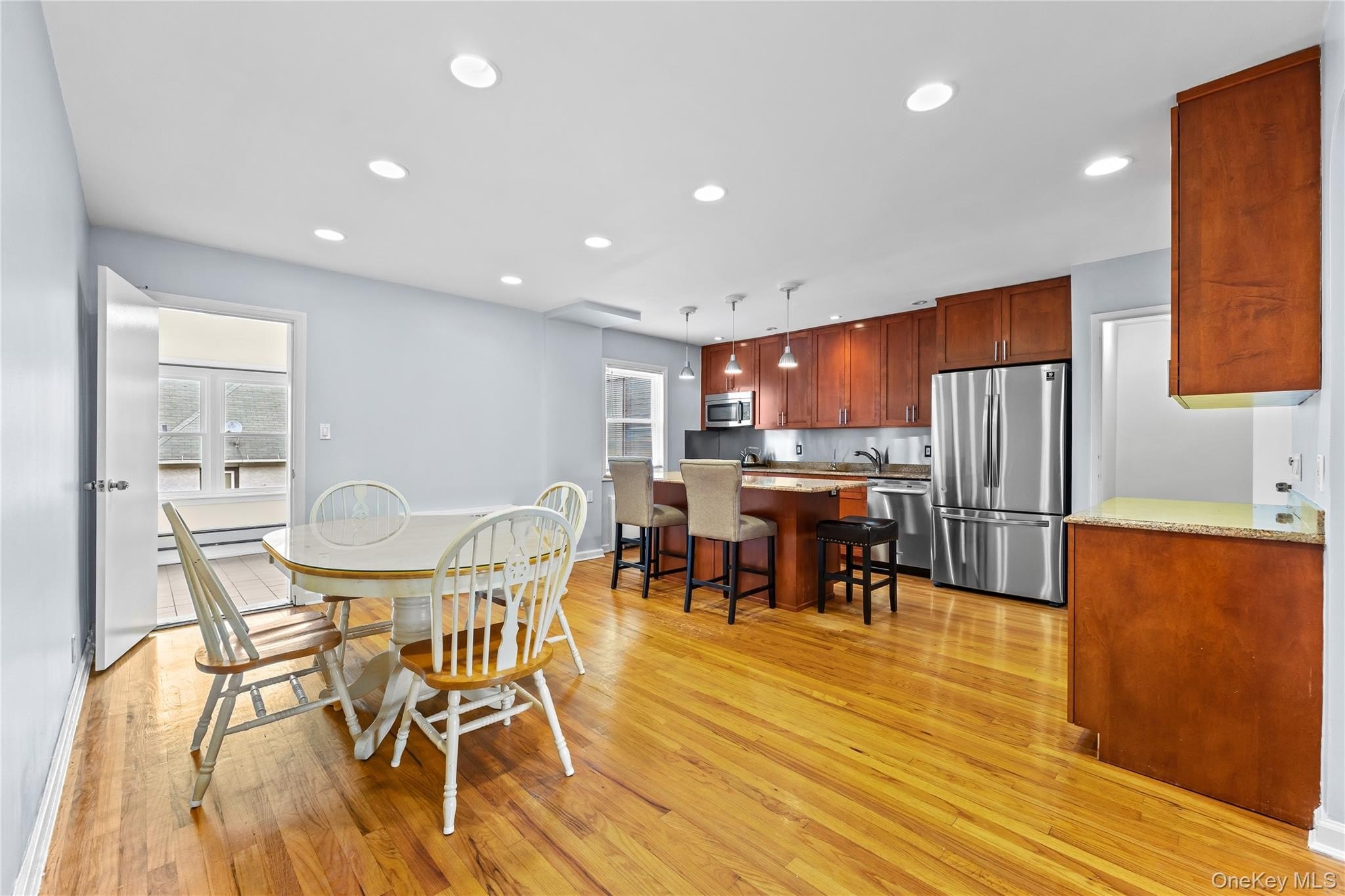 Amazing three-bedroom all brick home in prestigious Beechhurst, Whitestone. Large building size 20x44 with 3 levels 1,811 sq ft residence features hardwood floors, stone counters, stainless steel appliances, and recessed lighting throughout. Open kitchen flows into dining area and living room with abundant natural light. Enclosed back porch extends off the kitchen, expanding living and entertaining space. Walk-out finished basement with separate entrance adds valuable living space. Paved front patio and private backyard. One-car attached garage with additional parking in back. Walking distance to top-rated schools, Francis Lewis Park, shops, and dining. Located in one of Queens' most sought-after suburban neighborhoods known for excellent schools, safety, and strong property values.