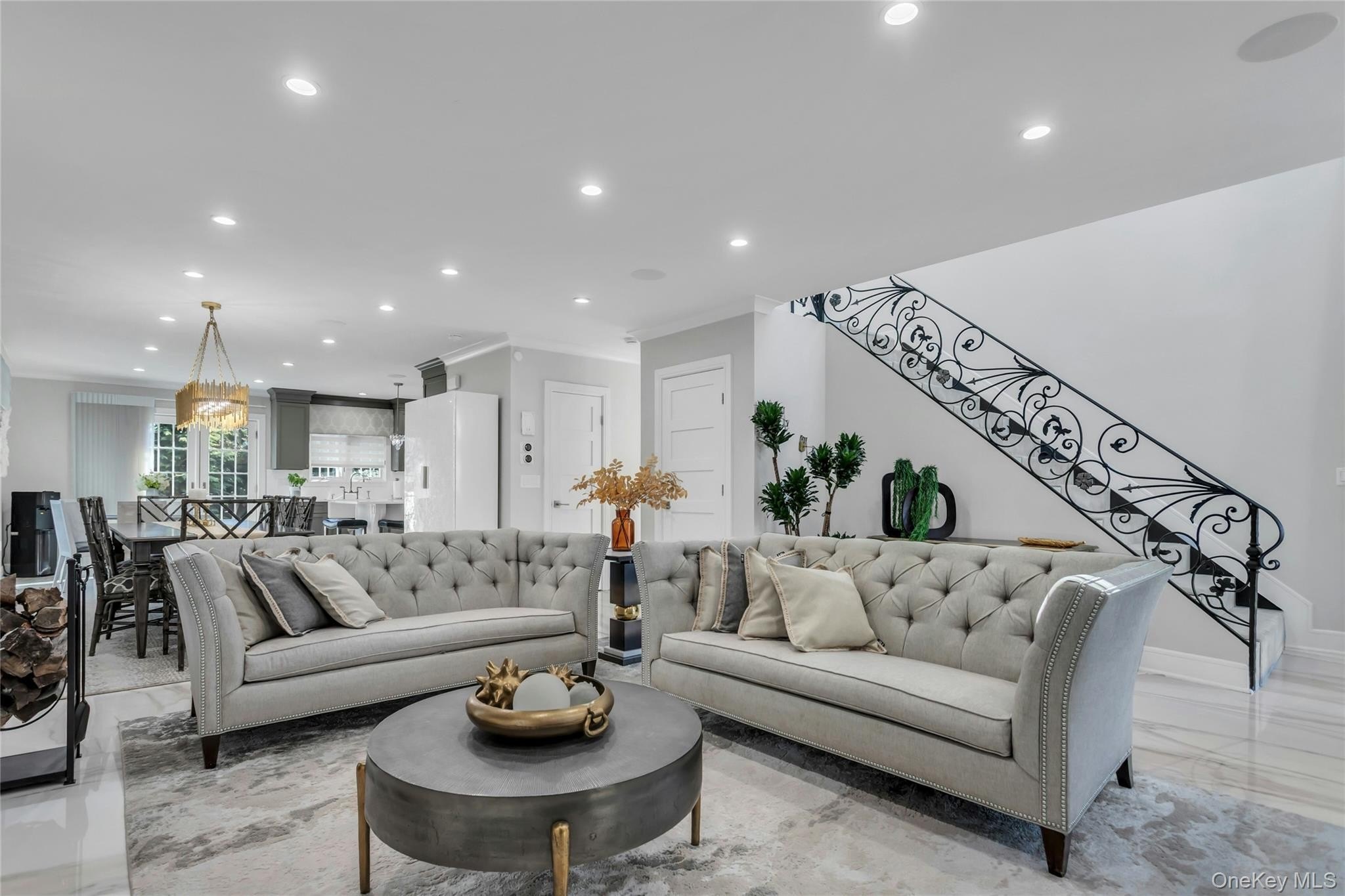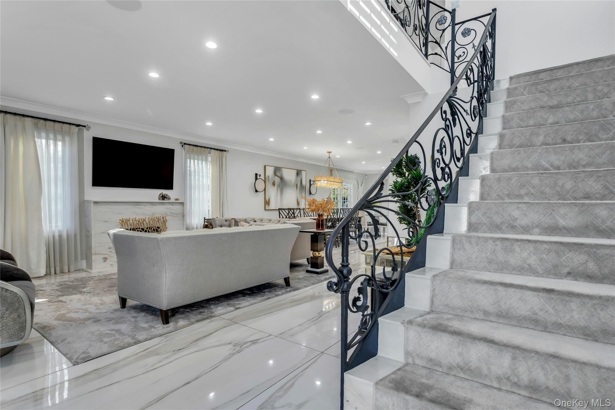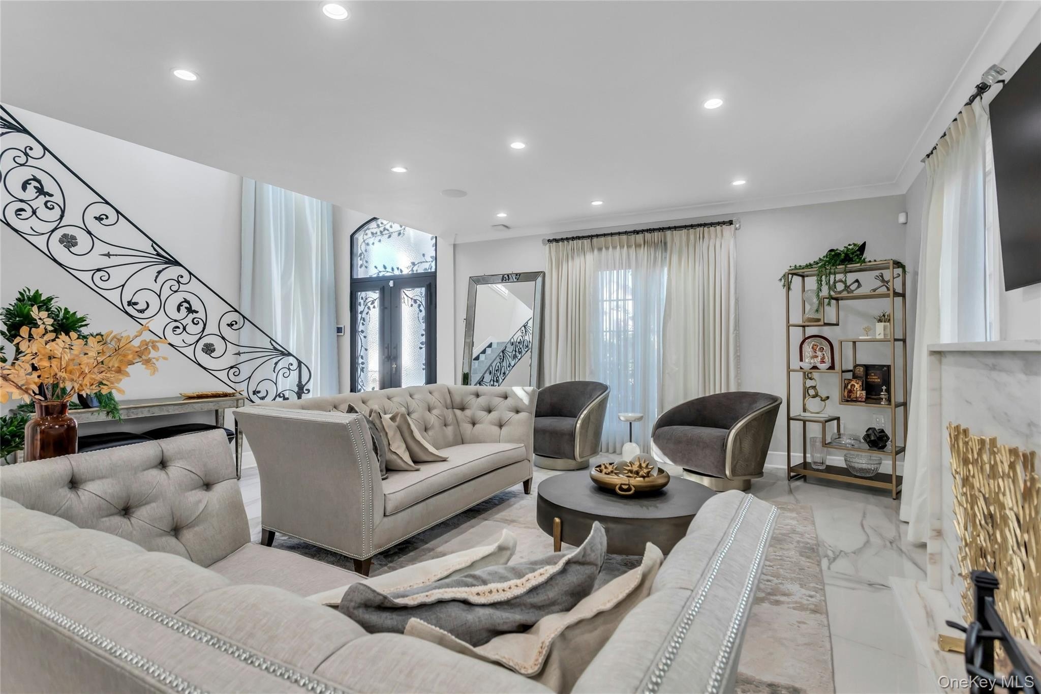 The Epitome of Modern Luxury Living in Beechhurst! Welcome to this beautifully landscaped, exquisite single-family residence offering over 2,000 square feet of interior living space plus a full finished basement. Fully updated in 2016 and meticulously maintained, this home blends sophisticated design, high-end finishes, and thoughtful functionality at every turn. Step inside to a dramatic double-entry foyer with cathedral ceilings, leading to an open-concept layout. The inviting living area with a wood-burning fireplace creates the perfect ambiance for relaxing or entertaining, flowing seamlessly into an elegant dining area and a custom chef's kitchen featuring quartz countertops and Viking appliances. Upstairs, the primary suite is a true retreat with a spa-inspired marble bathroom, while three additional bedrooms share another full marble bath, each with Toto Neorest toilets and luxurious finishes. The fully finished basement offers a versatile living space-ideal for a home office, gym, or media room. Step outside to a private backyard oasis, perfect for gatherings or quiet evenings under the stars, complete with an outdoor TV. Additional features include central heating and cooling, radiant heated floors throughout, and Control4 smart home technology that seamlessly manages indoor and outdoor multi-zone speakers, sprinklers, and Nest security cameras and thermostats. The home is further enhanced by Andersen windows, Juliet balconies, a one-car garage with private driveway, and a DaVinci slate roof that blends durability with timeless elegance. This Beechhurst residence truly represents the epitome of luxury living-a rare find offering comfort, technology, and style in perfect harmony.