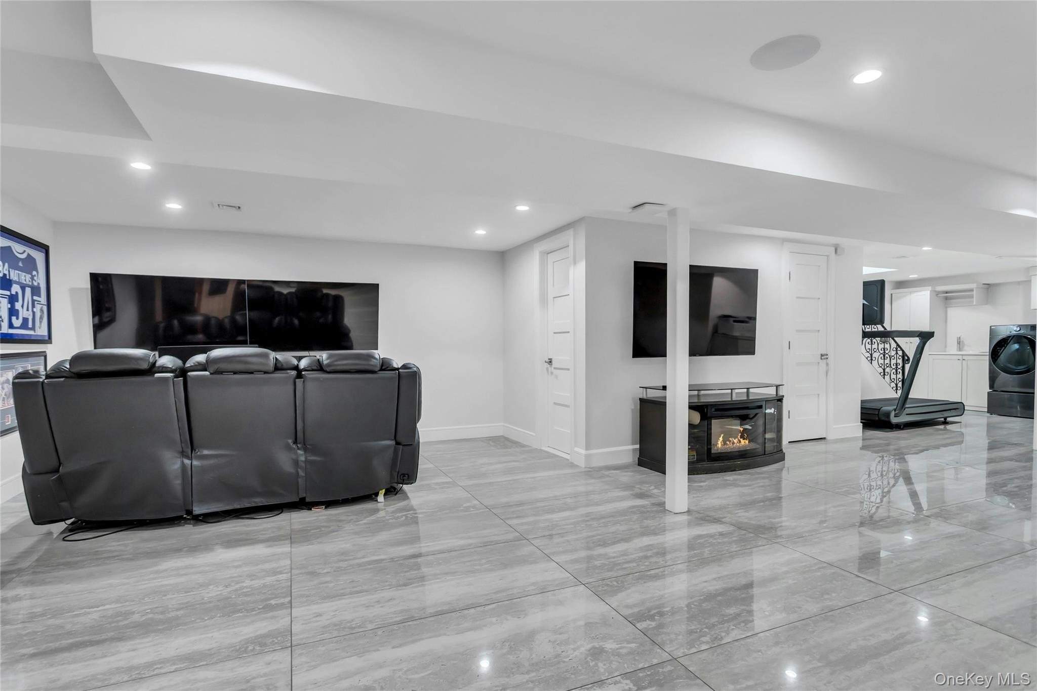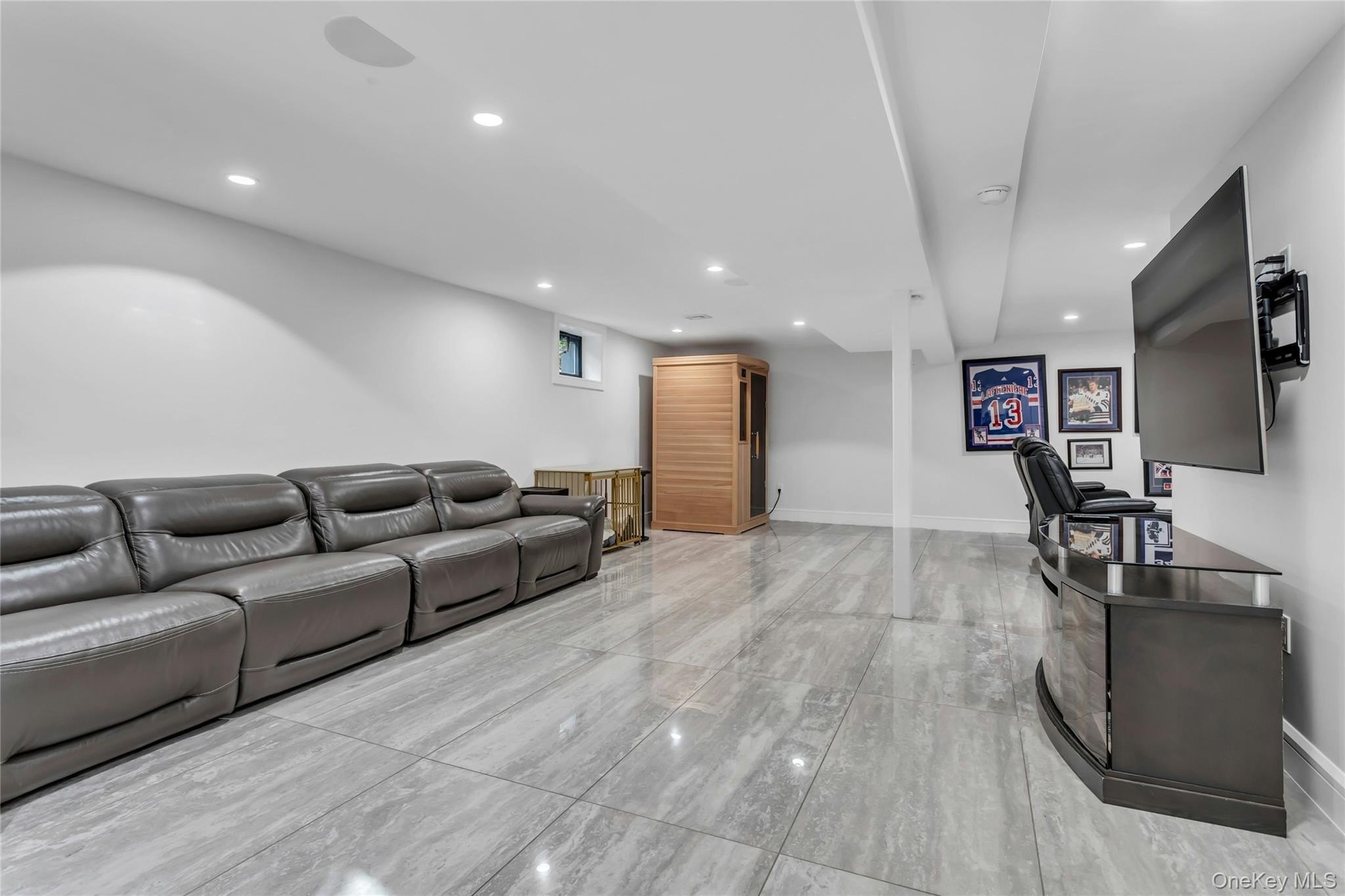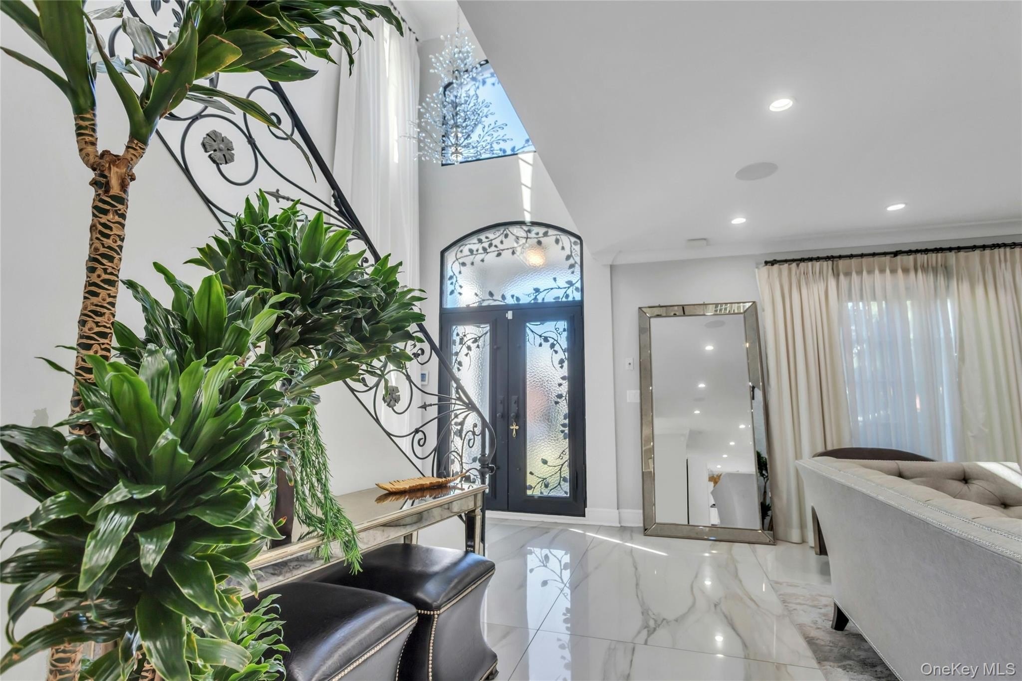 The Epitome of Modern Luxury Living in Beechhurst! Welcome to this beautifully landscaped, exquisite single-family residence offering over 2,000 square feet of interior living space plus a full finished basement. Fully updated in 2016 and meticulously maintained, this home blends sophisticated design, high-end finishes, and thoughtful functionality at every turn. Step inside to a dramatic double-entry foyer with cathedral ceilings, leading to an open-concept layout. The inviting living area with a wood-burning fireplace creates the perfect ambiance for relaxing or entertaining, flowing seamlessly into an elegant dining area and a custom chef's kitchen featuring quartz countertops and Viking appliances. Upstairs, the primary suite is a true retreat with a spa-inspired marble bathroom, while three additional bedrooms share another full marble bath, each with Toto Neorest toilets and luxurious finishes. The fully finished basement offers a versatile living space-ideal for a home office, gym, or media room. Step outside to a private backyard oasis, perfect for gatherings or quiet evenings under the stars, complete with an outdoor TV. Additional features include central heating and cooling, radiant heated floors throughout, and Control4 smart home technology that seamlessly manages indoor and outdoor multi-zone speakers, sprinklers, and Nest security cameras and thermostats. The home is further enhanced by Andersen windows, Juliet balconies, a one-car garage with private driveway, and a DaVinci slate roof that blends durability with timeless elegance. This Beechhurst residence truly represents the epitome of luxury living-a rare find offering comfort, technology, and style in perfect harmony.