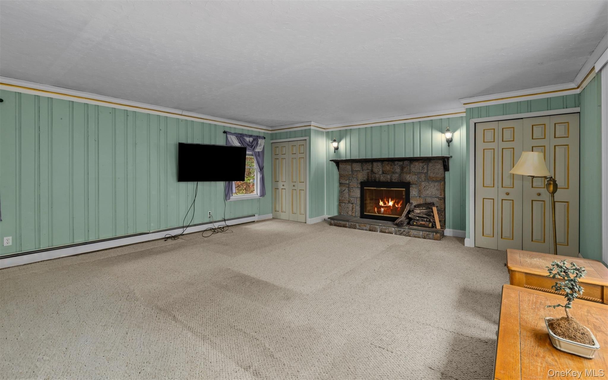 Welcome to this spacious expanded ranch featuring beautiful hardwood floors and a warm, inviting layout. The home offers two separate living areas/den spaces, each with its own fireplace-perfect for entertaining or relaxing year-round. The eat-in kitchen provides plenty of room for casual dining and convenience with a nearby half bath and laundry room. This home includes three bedrooms and two and a half bathrooms, offering comfort and functionality for today's lifestyle. The full, partially finished basement provides excellent storage and bonus living potential. Set on .72 acres, the property offers a generous yard with endless possibilities for outdoor enjoyment and expansion.