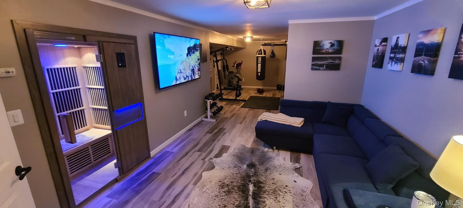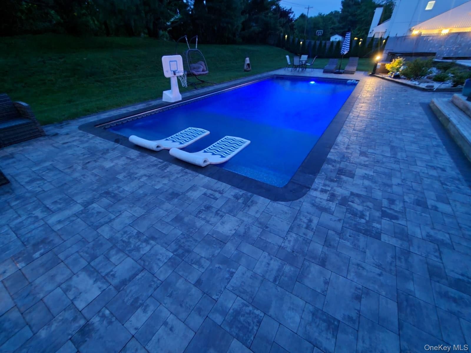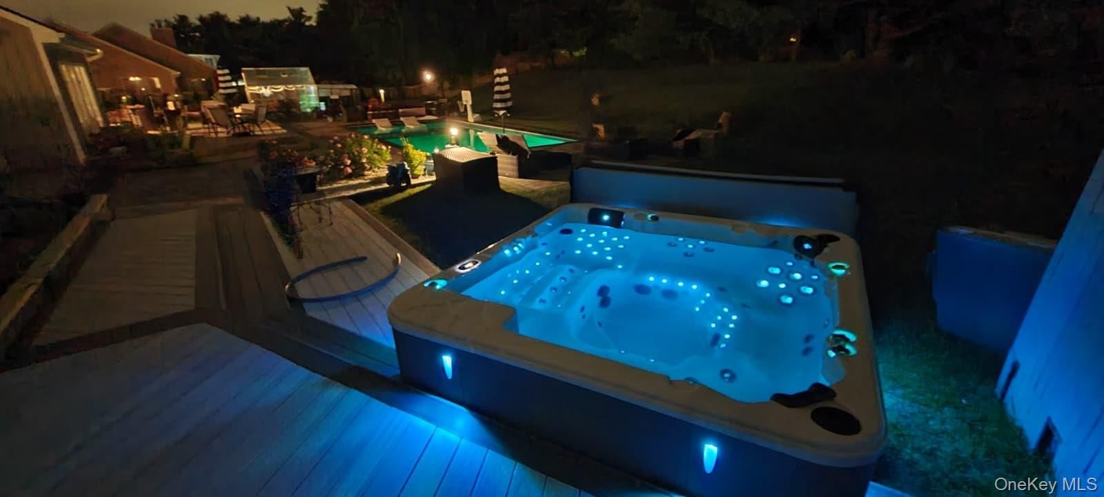 Beautifully updated center hall ranch in the Miller Farms section of Miller Place. Approximately 2900 sq ft plus semi-finished lower level with gym, sauna, and guest quarters. Huge 2900 sq ft basement. Cathedral ceilings up to 16 ft throughout most of the home. Features 3 bedrooms, 2.5 baths, bamboo hardwood floors, LED lighting, and dual-sided fireplace. Kitchen with Cambria quartz, 72" refrigerator/freezer, and custom coffee/wine station. Primary suite opens to deck with sunken hot tub. Exterior updates include newer roof, siding, furnace, hot-water heater, and 2-zone central AC. Newer heated saltwater inground pool with approx. 1,900 sq ft of pavers, Bull outdoor kitchen, greenhouse, and raised garden beds. New double-width driveway (2024), 11-zone sprinklers, solar system, universal EV charger, video security, and vinyl-fenced yard. Minutes to Trader Joe's, Starbucks, Stop & Shop, and North Shore beaches. Truly a turn-key luxury home.