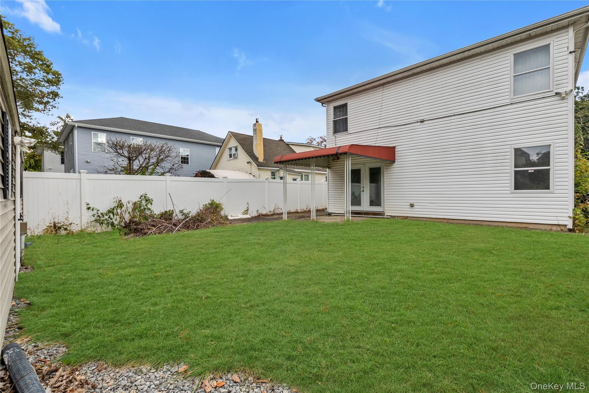 Enjoy comfort, light, and flexibility in this well-kept home built in 2004. The upper level features an open-concept living and dining area with gleaming hardwood floors, a modern kitchen with stainless steel appliances, and three spacious bedrooms with a full bath. The finished lower level offers additional living space with its own entrance-ideal for guests, remote work, or potential mother-daughter use (with proper permits). Step outside to a backyard with a patio perfect for al fresco dining, plus a large shed for extra storage. Ideally located across from the scenic Roosevelt Preserve and just minutes from Rev. Arthur Mackey Sr. Park, offering walking paths, ball courts, a pond, and one of the largest playgrounds in Nassau County. Enjoy the peaceful setting with convenient access to shopping, dining, schools, the LIRR, major highways, and Jones Beach. This home blends space, flexibility, and access to nature in a location that truly has it all. Some images here are virtually staged.