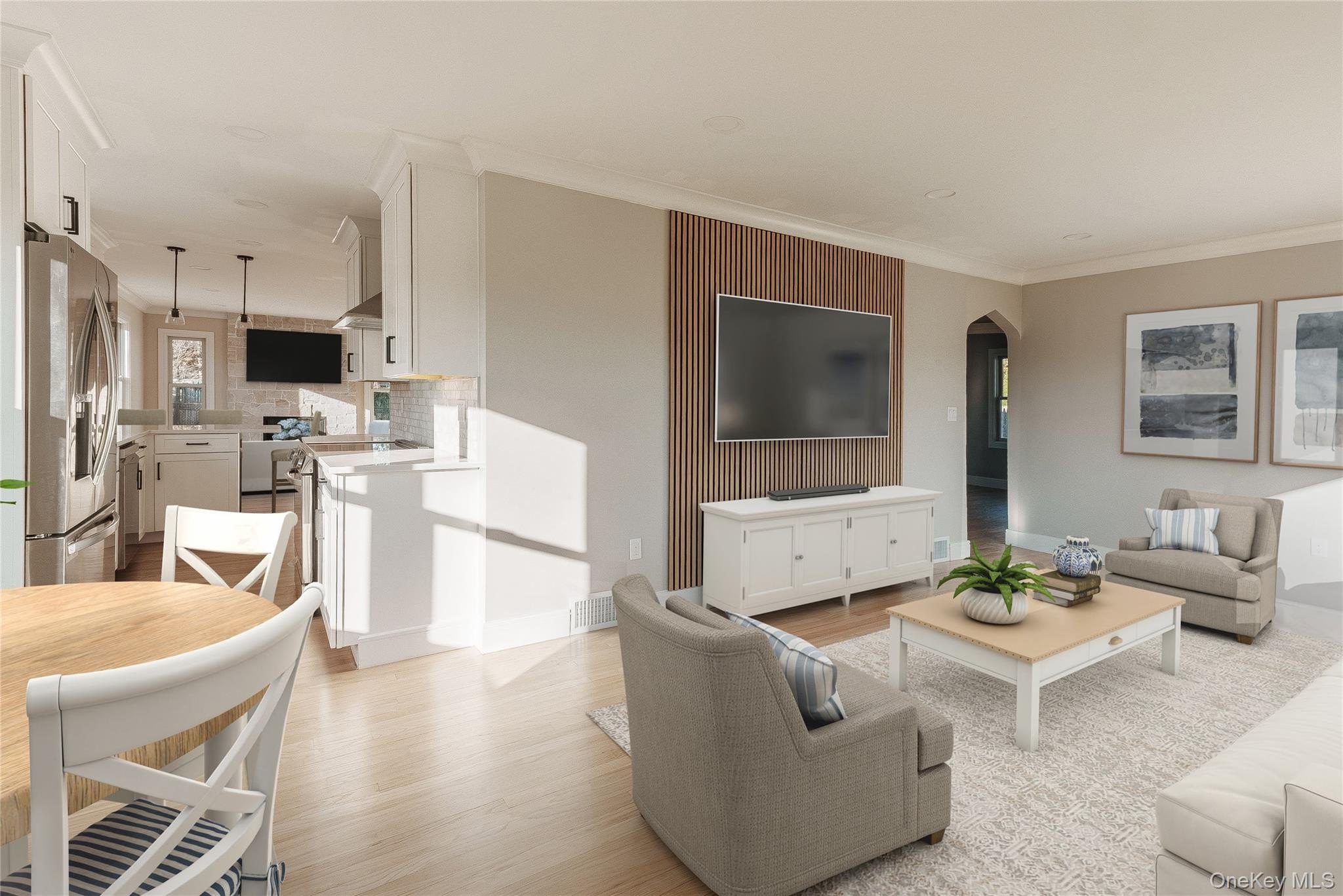 Welcome to your dream home, a beautiful, totally renovated ranch that perfectly blends modern comfort with classic charm. This stunning property boasts three spacious bedrooms and two full bathrooms, offering ample space for families and individuals alike. With a generous 1200 square feet of living area, you'll find room to relax and enjoy life. Step inside and be greeted by an abundance of natural light streaming through the brand-new windows. The fresh and inviting eat-in kitchen is designed for both functionality and style, featuring modern appliances and elegant finishes that make cooking a delight. The meticulous renovations extend to the bathrooms, which have been thoughtfully updated. Rich hardwood floors flow seamlessly throughout the home, adding warmth and character to every room. The family room, complete with a cozy fireplace, invites gatherings and relaxation-a perfect spot to unwind after a long day. The full basement offers endless possibilities, whether you envision a recreation area, a home gym, or additional storage space. Located on a quiet dead-end block, you will enjoy a serene environment while still being close to essential amenities. Transportation options, multiple supermarkets, and a variety of restaurants on Main Street are just a short distance away, making it convenient to enjoy local dining and entertainment. With new siding, a new roof, new central air and upgraded electrical systems, this home is not only visually appealing but also turn-key ready for its new owners. Don't miss your chance to own this completely renovated gem-schedule a viewing today and experience the perfect blend of comfort, style, and convenience.