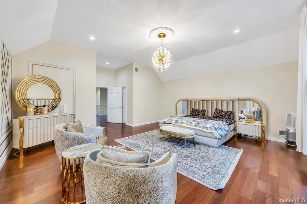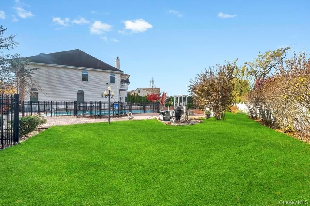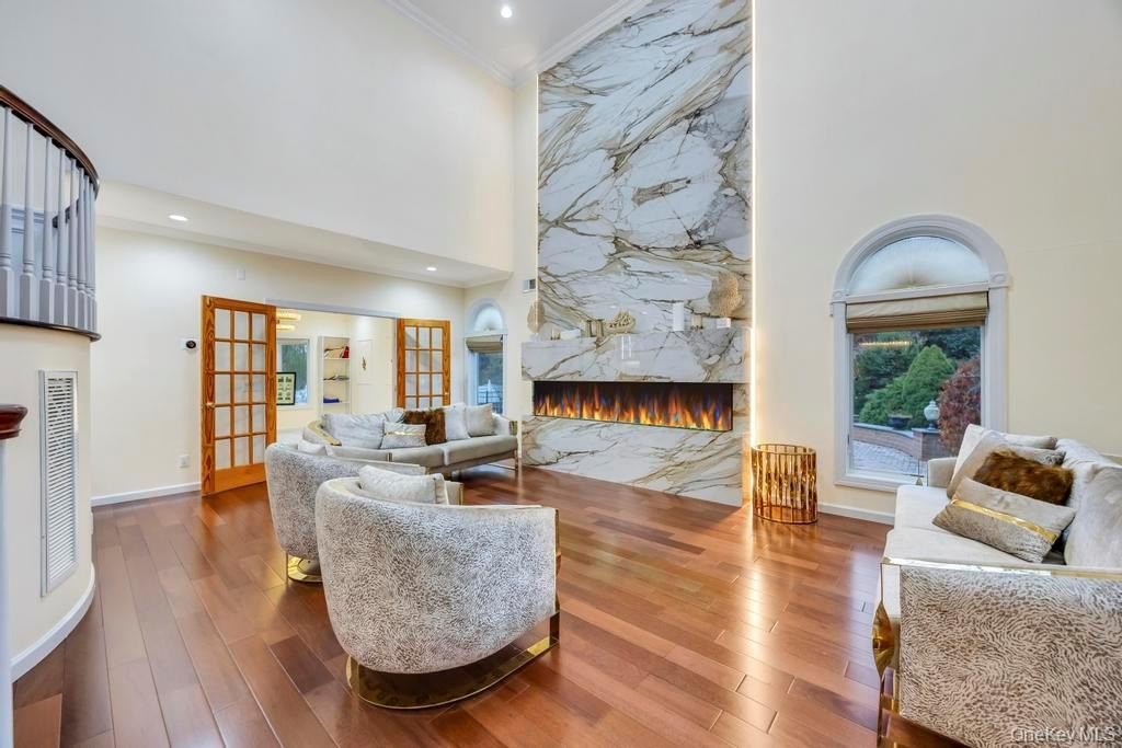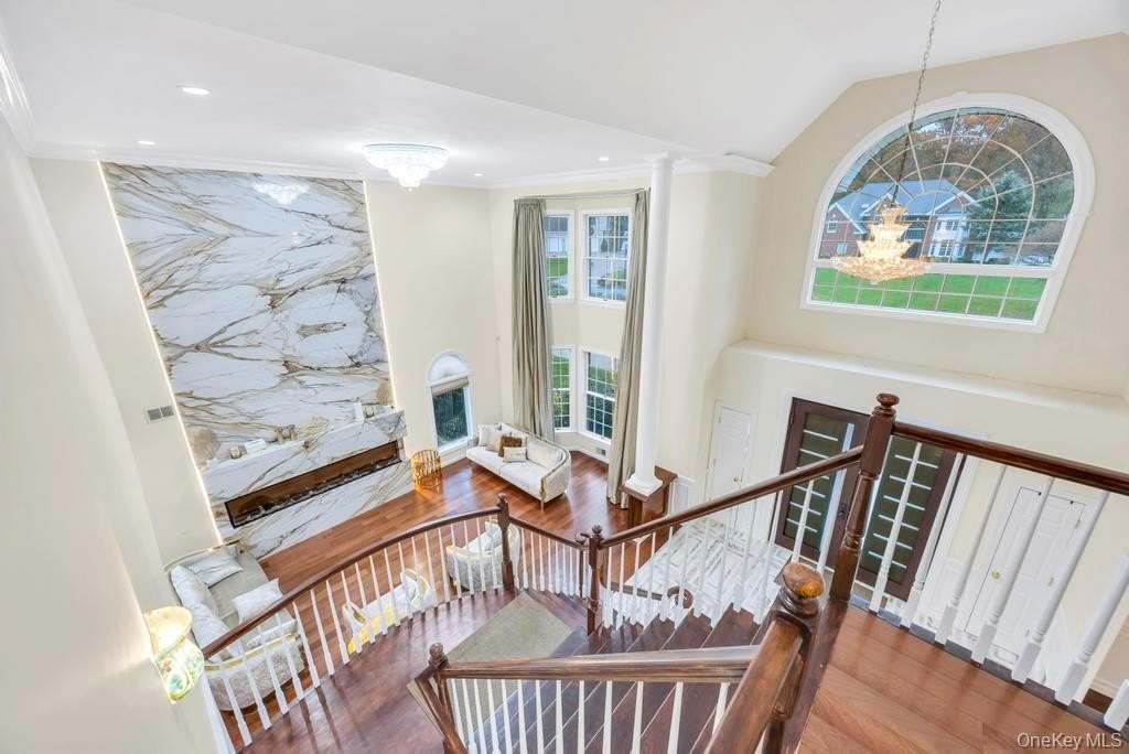 Exquisitely updated, Palatial 5600 square foot 6-bedroom, 5 1/2 bath Post Modern brick-faced Colonial built in 2001 is located in the exclusive Sweet Hollow Farms gated community on a private road with only 21 residences. Situated on .98 acres on a cul-de-sac this luxuriously home offers a grand circular foyer made of Italian marble, includes gas and custom electric fireplaces, 3 balconies, 3 skylights, Central air conditioning, radiant heat floors throughout select living areas, a master bath as well as a 625 square foot 3 car attached garage with updated flooring, a circular driveway, iron driveway gates, a 16x32' heated vinyl lined in-ground swimming pool, a jetted hot tub and an extensive patio with an outdoor shower. The in-ground sprinkler system consists of 10 zones in front and 6 zones in the rear, ensuring a lush lawn for your enjoyment. New Premium hardwood floors on both the 1st and 2 nd floor, along with a combination of Italian marble flooring in the kitchen, exuding refined European artistry. Heating, hot water, fireplaces, and pool heaters are all natural gas. The floor plan in this home is both spacious and functional, offering a dramatic 2-story entry. A brand new kitchen includes custom Italian kitchen cabinetry, crafted for a flawless, tailored, and sleek finish, along with professional-grade appliances, including Sub-Zero refrigeration and Wolf Gas Range and Dishwasher. The contemporary kitchen island opens into the family room with a fireplace, a formal living room with high ceilings, a formal dining room, and a guest bedroom. All the bedrooms in this home are substantial in size, with the master suite being approximately 26x19' with a fireplace, 2 walk-in closets, a luxurious private master bath, and an outside balcony. The brand-new attic has additional living space. The gigantic, fully finished walk-out basement offers a large tiled recreation room, storage, multiple utilities, a full bath, and an outside entrance. There are two 150-amp electric panels. Looks like 4-zone gas hot air heat, plus 3-zone radiant heat, and 1-zone dedicated to the 56-gallon water heater. Original architectural roof from 2001. This home is part of the Sweet Hollow Farms Home Owner's Association, Inc. with $2200 annual dues, which covers, among other things: gate maintenance & repairs, common area electric, sprinklers, landscaping, street lights, snow removal, taxes, road maintenance (privately owned road), etc. Garbage removal is with the Town of Huntington and part of each individual homeowner's tax bill. Each homeowner gets their own water bill and hires their own private landscaper. Award-winning Half Hollow Hills School District. Additional information: Appearance: Excellent, Separate Hot water Heater:56G + shade store window treatments, smart toilets and showers.