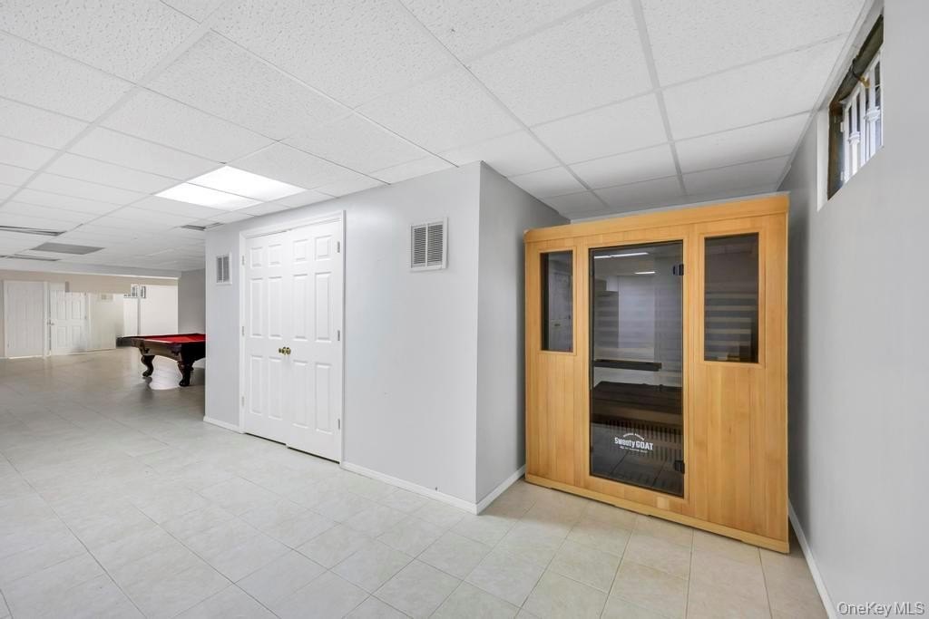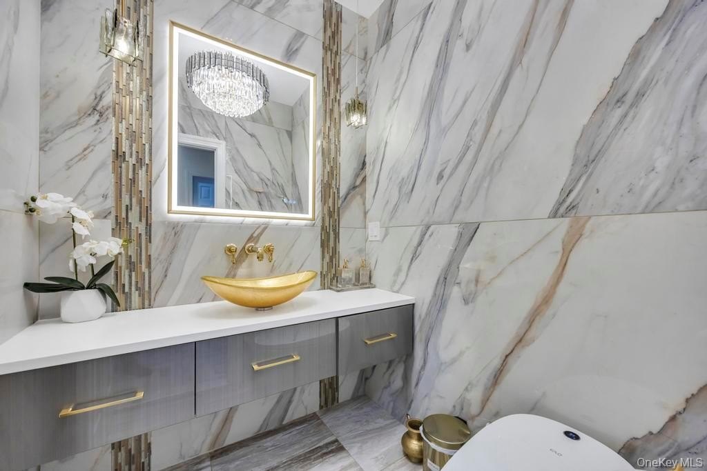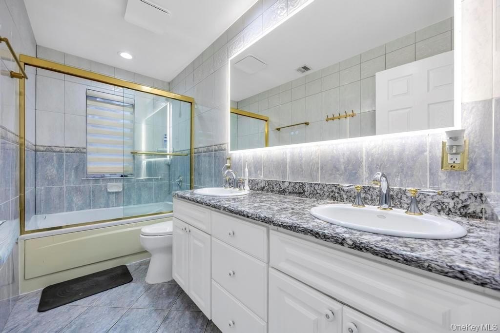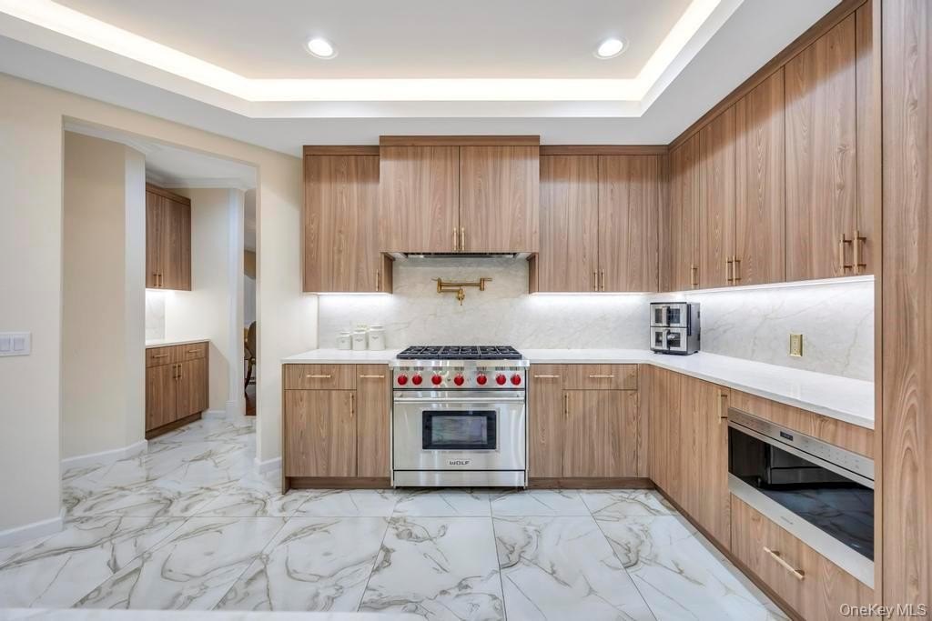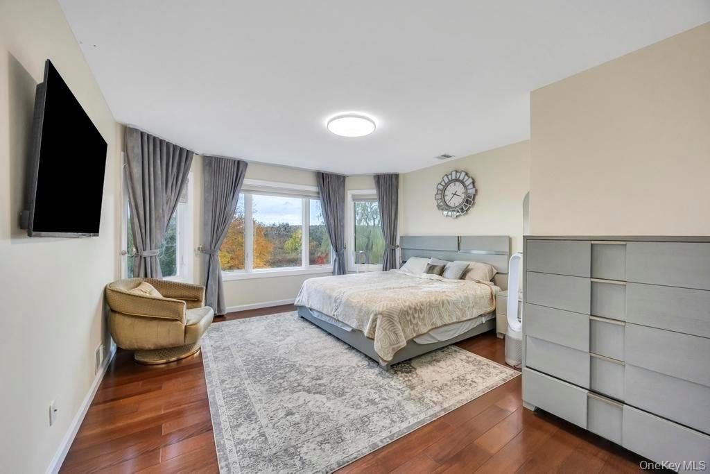 Exquisitely updated, Palatial 5600 square foot 6-bedroom, 5 1/2 bath Post Modern brick-faced Colonial built in 2001 is located in the exclusive Sweet Hollow Farms gated community on a private road with only 21 residences. Situated on .98 acres on a cul-de-sac this luxuriously home offers a grand circular foyer made of Italian marble, includes gas and custom electric fireplaces, 3 balconies, 3 skylights, Central air conditioning, radiant heat floors throughout select living areas, a master bath as well as a 625 square foot 3 car attached garage with updated flooring, a circular driveway, iron driveway gates, a 16x32' heated vinyl lined in-ground swimming pool, a jetted hot tub and an extensive patio with an outdoor shower. The in-ground sprinkler system consists of 10 zones in front and 6 zones in the rear, ensuring a lush lawn for your enjoyment. New Premium hardwood floors on both the 1st and 2 nd floor, along with a combination of Italian marble flooring in the kitchen, exuding refined European artistry. Heating, hot water, fireplaces, and pool heaters are all natural gas. The floor plan in this home is both spacious and functional, offering a dramatic 2-story entry. A brand new kitchen includes custom Italian kitchen cabinetry, crafted for a flawless, tailored, and sleek finish, along with professional-grade appliances, including Sub-Zero refrigeration and Wolf Gas Range and Dishwasher. The contemporary kitchen island opens into the family room with a fireplace, a formal living room with high ceilings, a formal dining room, and a guest bedroom. All the bedrooms in this home are substantial in size, with the master suite being approximately 26x19' with a fireplace, 2 walk-in closets, a luxurious private master bath, and an outside balcony. The brand-new attic has additional living space. The gigantic, fully finished walk-out basement offers a large tiled recreation room, storage, multiple utilities, a full bath, and an outside entrance. There are two 150-amp electric panels. Looks like 4-zone gas hot air heat, plus 3-zone radiant heat, and 1-zone dedicated to the 56-gallon water heater. Original architectural roof from 2001. This home is part of the Sweet Hollow Farms Home Owner's Association, Inc. with $2200 annual dues, which covers, among other things: gate maintenance & repairs, common area electric, sprinklers, landscaping, street lights, snow removal, taxes, road maintenance (privately owned road), etc. Garbage removal is with the Town of Huntington and part of each individual homeowner's tax bill. Each homeowner gets their own water bill and hires their own private landscaper. Award-winning Half Hollow Hills School District. Additional information: Appearance: Excellent, Separate Hot water Heater:56G + shade store window treatments, smart toilets and showers.