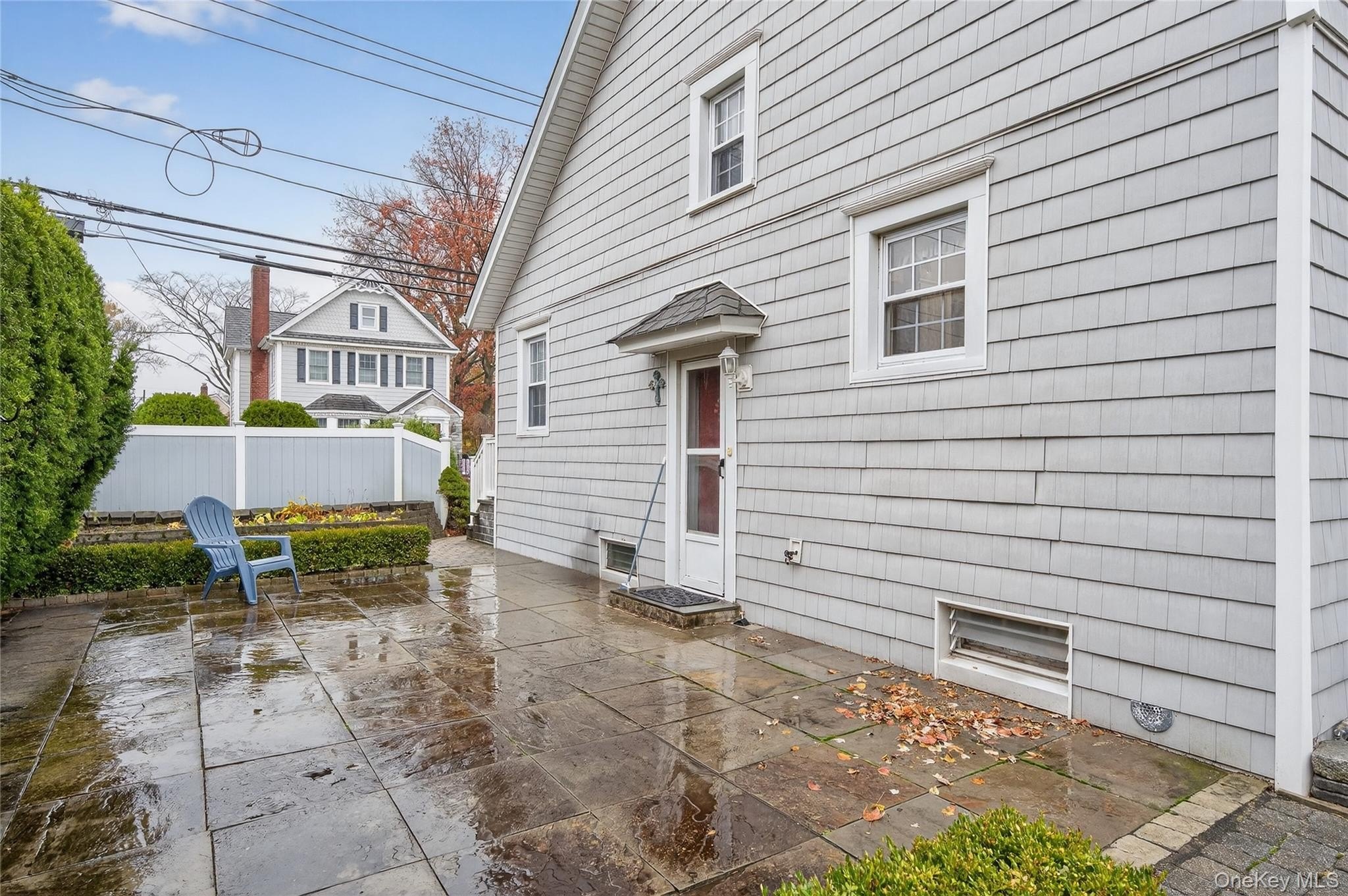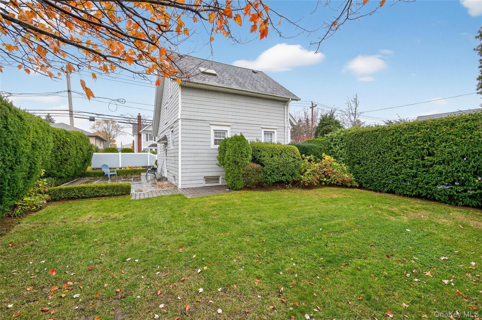 This charming Colonial offers 2 spacious bedrooms and a full bathroom. The main level features a large living room with a cozy wood-burning fireplace, a dining area, and a kitchen. Upstairs, you'll find two generously sized bedrooms and a full bathroom. This home also includes an unfinished basement with an outside entrance, offering great potential for additional living space or storage. Additional highlights include central air conditioning, gas heating, and an updated roof. The property features a beautifully sized yard with a private patio, green space, and a one-car garage, along with ample parking in the driveway. Conveniently located right next to the LIRR, parks, shops, schools, restaurants. Very LOW TAXES! Not In The Village!