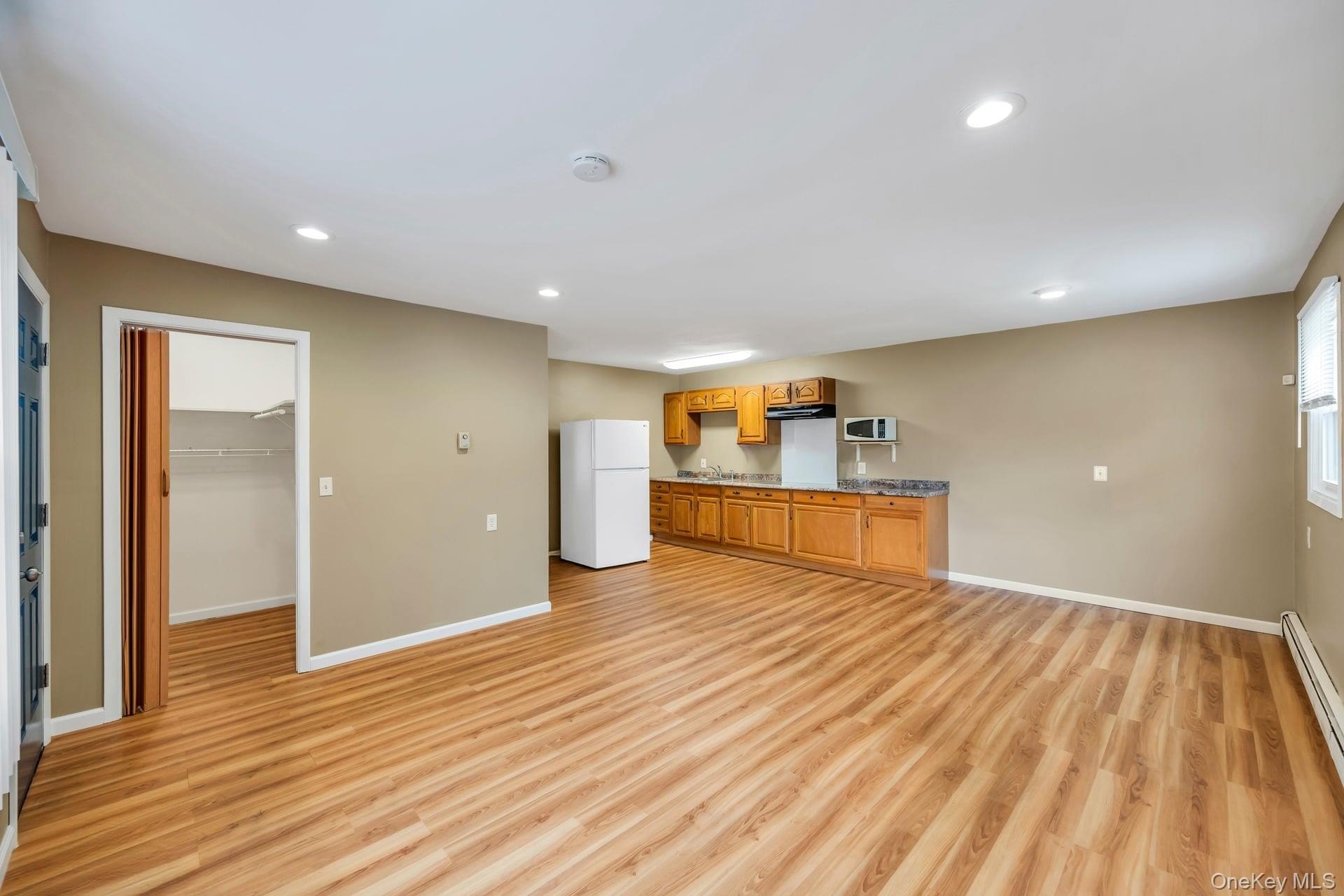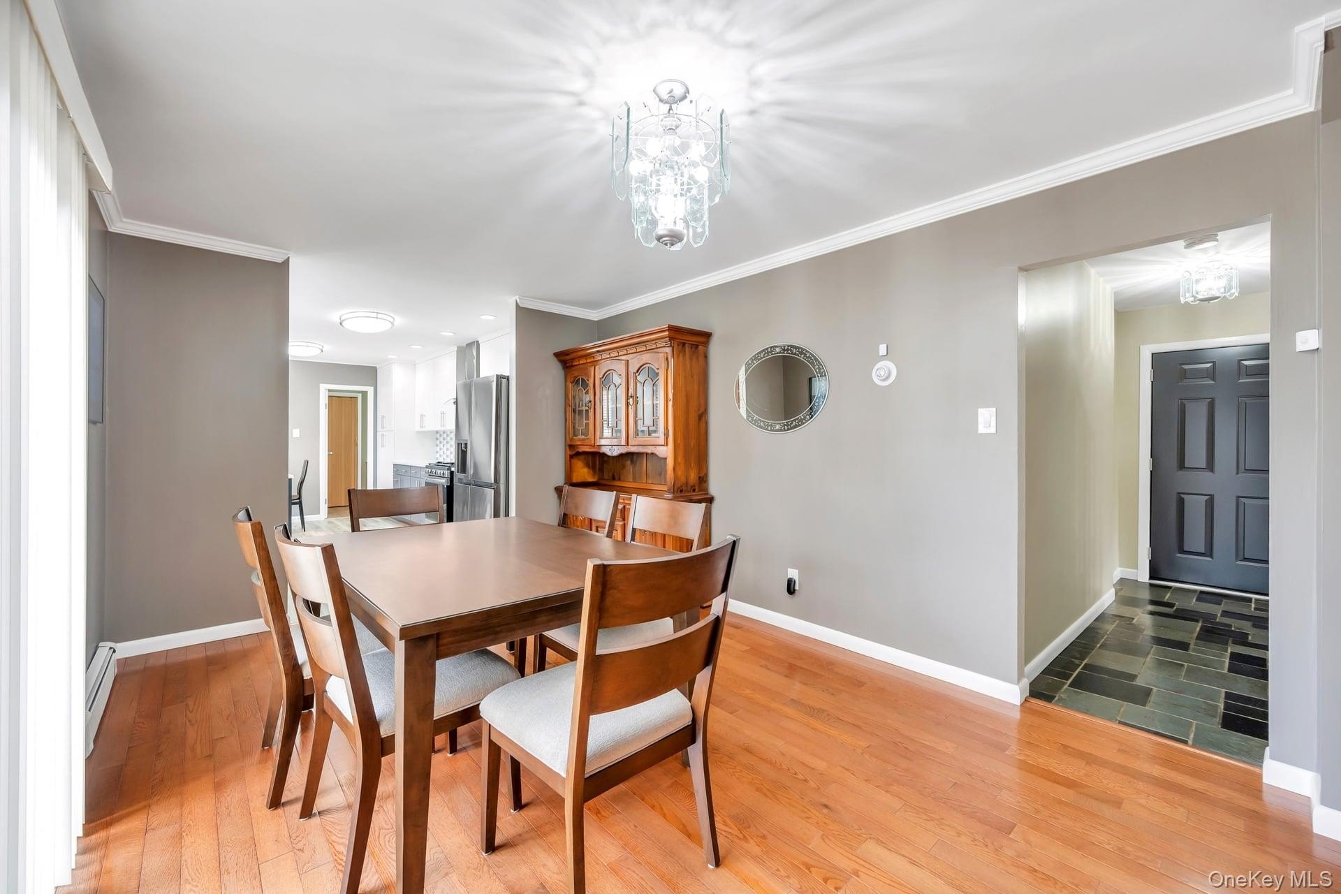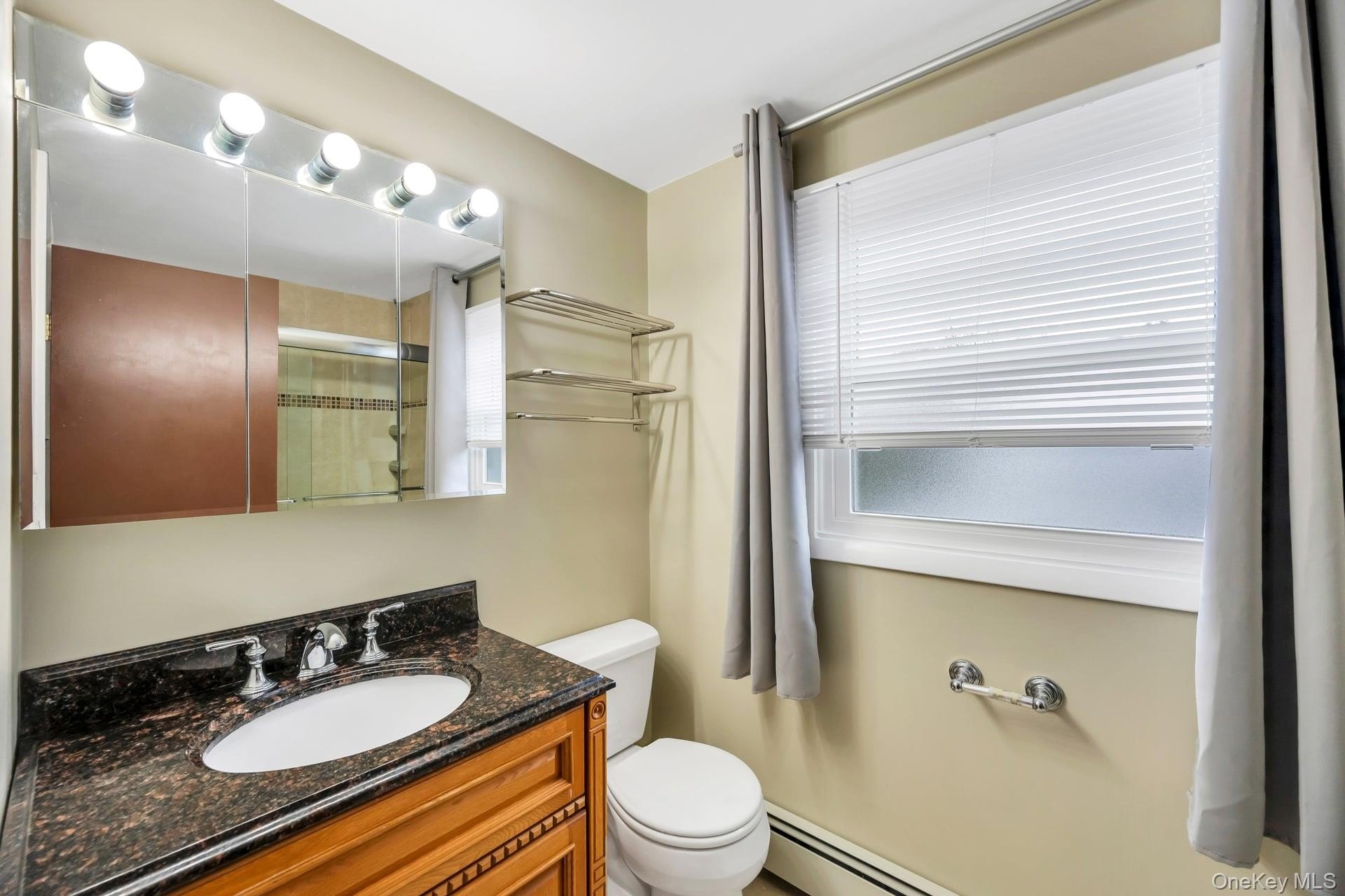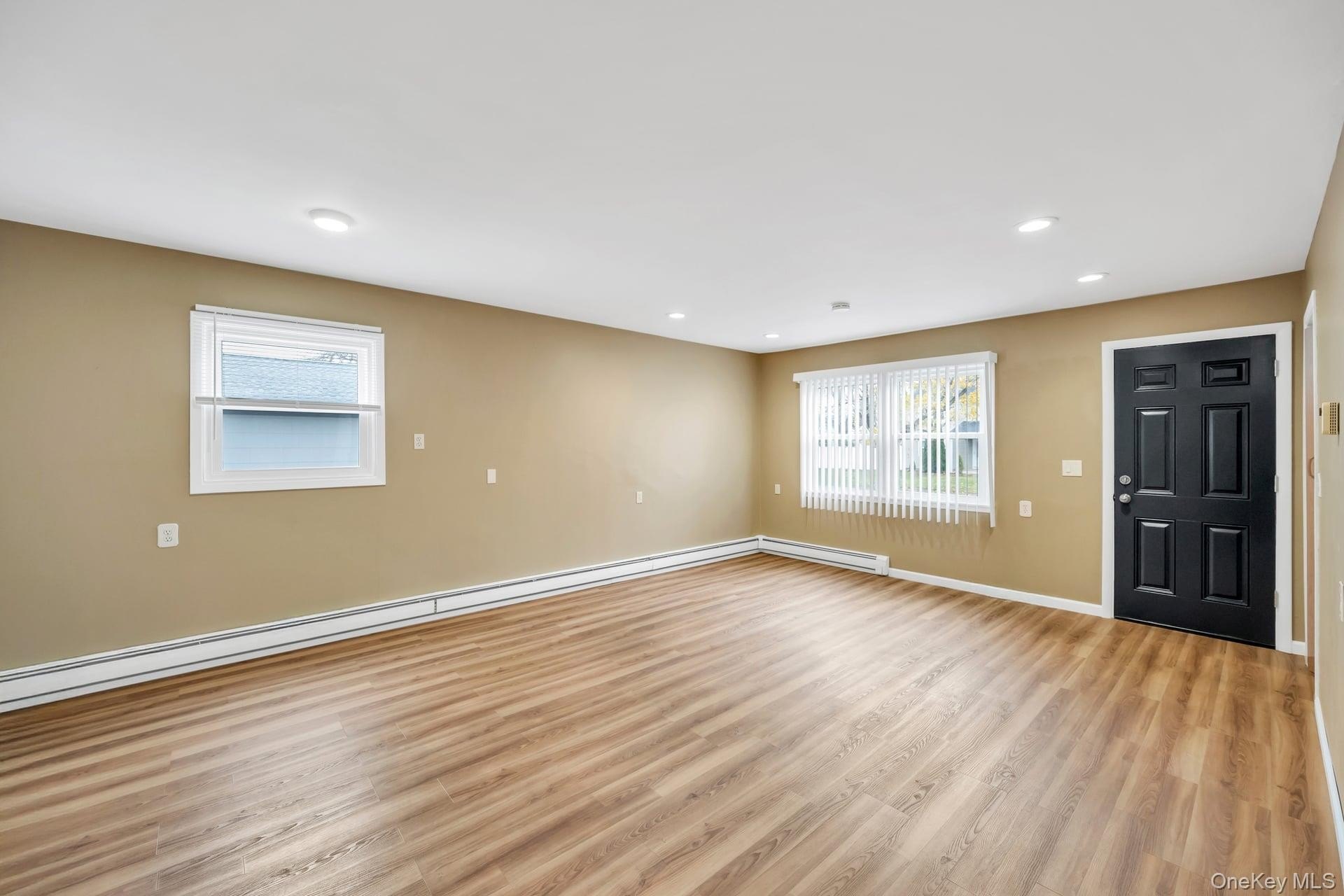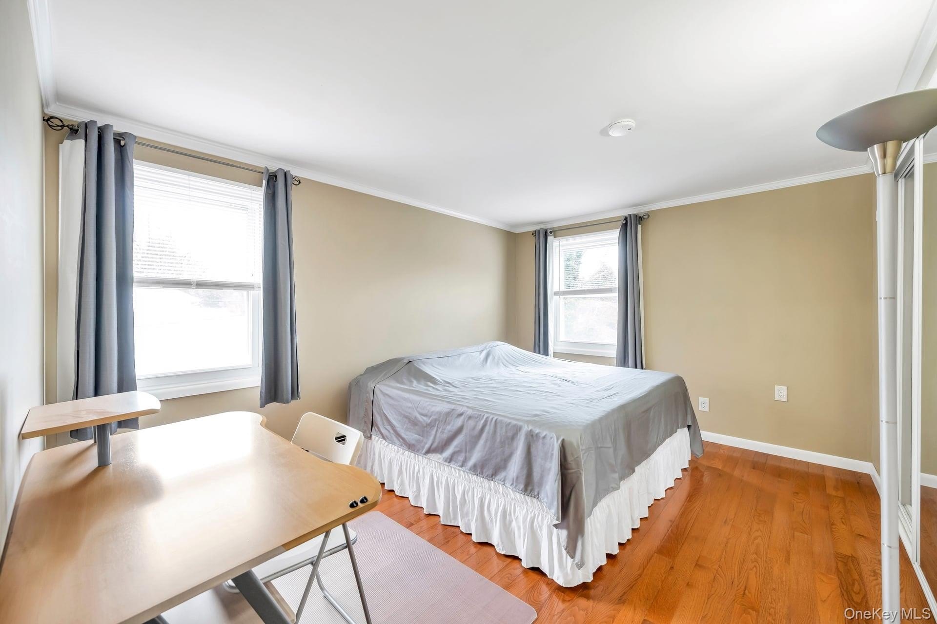 Incredible opportunity in the highly desirable Lake Grove Village, perfectly positioned in the sought-after T-section, offering sewer and sidewalks on an oversized corner lot. This expanded colonial immediately impresses with beautiful vinyl siding, a brick front facade, and a garage conversion with its own separate entrance, full bathroom, and certificate of occupancy-ideal for extended living or flexible use. The gorgeous home features real owned outright solar panels, practically off the grid. The property features an expanded blacktop driveway with Belgium block border and cement skirt, providing exceptional off-street parking. The private backyard is fully enclosed with beautiful vinyl fencing and enhanced by mature landscaping, a large stamped concrete patio perfect for entertaining, a stone retaining wall, and two oversized storage sheds. Inside, the open floor plan showcases beautiful hardwood floors throughout, a formal living room, custom molding and recessed lighting throughout, a spacious dining room, and an updated chef's kitchen with grey bottom and white top cabinets, subway tile backsplash, quartz countertops, stainless steel appliances, an LG refrigerator, and a propane 5-burner stove. The first floor also offers a dedicated mudroom with washer and dryer and a separate entrance, plus an additional half bath off the kitchen. Upstairs, the enormous primary suite features hardwood floors, double closets and an updated primary bath with a glass stand-up shower, while the additional bedrooms are generously sized with hardwood floors and the hallway bath includes a tub and glass shower. Additional home features include professionally updated windows in select areas including the bathrooms and front of the house, one electric meter, three heating zones, pull-down attic stairs, a four-zone sprinkler system, 150-amp electrical service, a full unfinished basement with high ceilings and updated windows, a Weil-McLain boiler with Riello head and water storage tank only two years old, white PVC fencing, LED lighting, crown molding, cameras and alarms, and excellent closet space within the garage conversion. This rare offering delivers space, flexibility, and tremendous value in one of the most desirable pockets of Lake Grove.