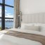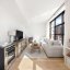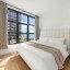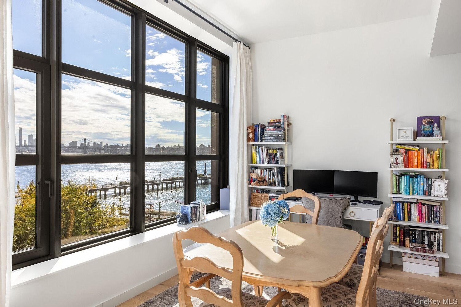 Perfectly positioned on the 4th floor offering intimate connection to the dazzling East River views, this oversized one-bedroom residence offers both impressive scale and thoughtful design. With ceiling heights soaring over 10-feet complimented by undulating walls of windows, this home combines airy openness with high-end finishes for a truly refined living experience. The expansive living and dining area provides exceptional flexibility-perfect for entertaining, live/work, or easily convertible to a two-bedroom layout if desired. A custom Italian kitchen is a showpiece in itself, featuring a full suite of Miele appliances, European Dolit marble countertops and island, a garbage disposal, and sleek cabinetry designed for both style and function. The spacious primary bedroom offers water views and comfortably fits a king-size bed. The bedrooms also features custom built-out closets that maximize storage and organization. The spa-like bathroom impresses with penny round marble tiles, premium fixtures, and a clean, contemporary aesthetic. Additional highlights include in-unit Bosch laundry, central air conditioning with Nest control, elegant finishes throughout, and a thoughtfully designed floor plan that balances modern luxury with everyday comfort. Residents at The Huron enjoy over 30,000 sqft of curated amenities and direct access to the maturing Brooklyn waterfront. Active spaces include a 50ft indoor saltwater pool overlooking the river, a state-of-the-art fitness center with Peloton bikes, a movement/dance studio with mirrors and ballet bars and separate locker rooms with a sauna. There is a stunning resident's lounge with pool table, a formal dining room, a co-working area with pods, booths, and conference space, a game room, and a children's playroom. Outdoor spaces include a manicured waterfront promenade and an 8,000 sqft private park with recreation areas designed for kids. Additional services include 24-hour concierge, private storage, on-site attended parking, a pet spa, a bicycle room, and a package room with cold storage. The Huron is moments from a variety of local restaurants, bars, cafes, and shops, and it is close to Transmitter Park, Newtown Barge Playground, and Greenpoint Beach. Public transportation options include the G subway line and the NYC Ferry.