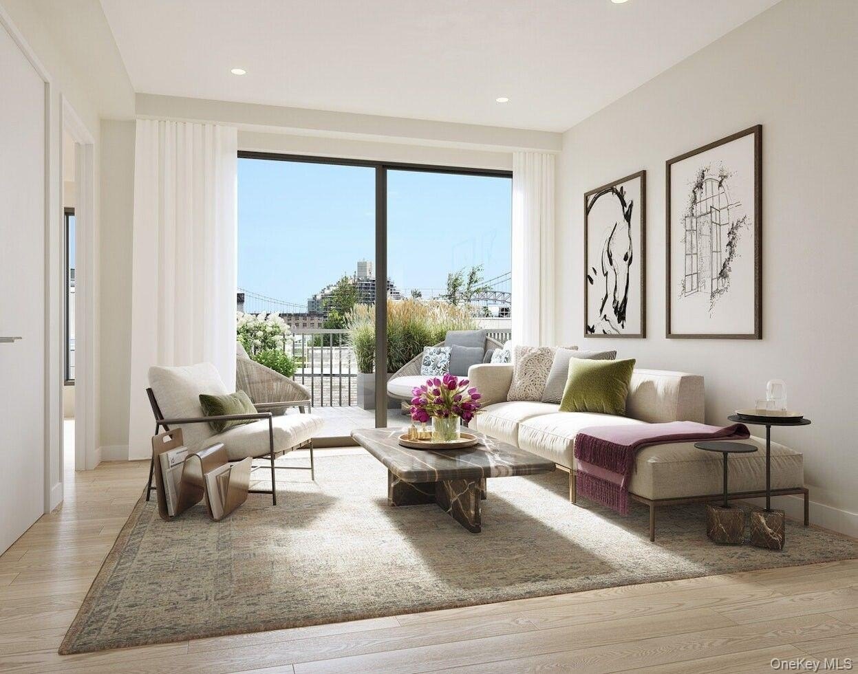 Introducing Residence 2D at VELA, a brand new 2-bedroom plus home office and 2-bathroom condo in Astoria, a sanctuary that seamlessly blends the elegance of West Astoria with the allure of modern design. The entryway provides a coat closet and foyer leading into the kitchen. Outfitted with maintenance-free quartz countertops and backsplash that harmonizes perfectly with sleek imported chestnut and white-laqcuer cabinets, the open kitchen is the perfect place to prep a delicious meal. Custom niches are built into multiple walls to maximize storage and provides unique detailing. State-of-the-art stainless steel appliances include a Bertazzoni gas oven and paneled dishwasher- the stackable washer and dryer is whisper quiet and efficient. And for that dash of Nordic charm- Scandinavian-designed kitchen hardware adds a subtle yet significant touch throughout. Wide plank engineered oak floors, large framed windows, and a well designed layout show off 1,006 square feet of meticulous design. The primary bedroom accommodates king-sized furniture and boasts a large closet and a ton of natural light via its dual exposure- an extra window from your private balcony gives extra dimension. In the primary bath, luxury is redefined- imported porcelain tiles and sleek double vanities set off a clean modern glass shower with a built-in niche and Moen fixtures and hardware. The spacious guest bedroom has a private balcony with full glass sliding doors. The guest bath features a modern, timeless finish with neutral tones, inviting you to indulge. With 29 distinctive units presented by the esteemed Mortar Group, VELA effortlessly weaves innovation, luxury, and contemporary artistry into Astoria's iconic landscape and features private outdoor space for every home. Residents at VELA enjoy an array of amenities and direct access to the maturing Astoria waterfront. Amenities include a state-of-the-art fitness center with Peloton bikes, dedicated yoga studio, a fabulous roof deck with Manhattan skyline views and barbecue grills, package room and bike storage. Additional services include a virtual doorman system, parking and private storage units. Touted as one of the most desirable residential areas, western Astoria offers a quick commute to Manhattan, Queens and Brooklyn via ferry, bus and subways, as well as easy access to highways, shopping, parks and local restaurants.