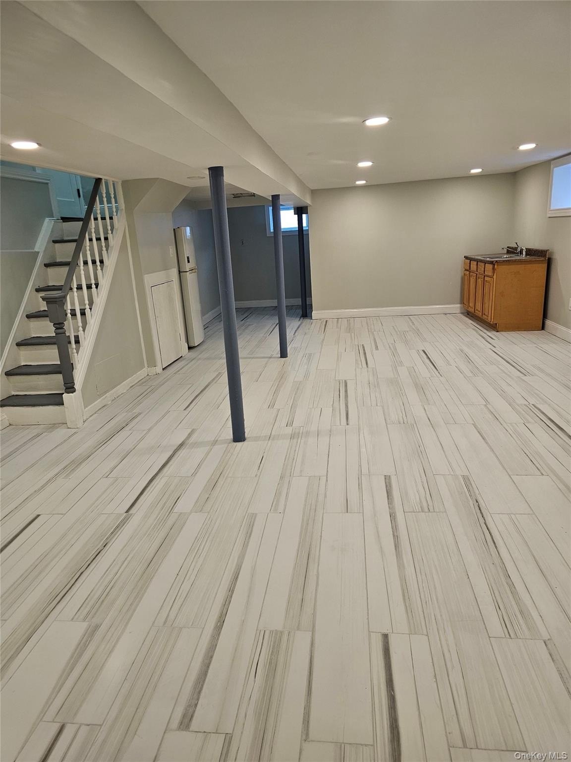 Beautifully renovated legal two-family home located in Laurelton, Queens, features two vacant floors - each with separate entrances! This turn-key property has two updated units. The first unit offers, 2 bedrooms, full bathroom, eat-in-kitchen and a living room, while the second unit includes, 2 bedrooms, bathroom, eat-in-kitchen, living room - new wood flooring through-out both units. The fully finished basement is designed with Porcelain Tile flooring, full bathroom, separate entrance, and a kitchen setup - ideal for extended living, or recreation. The house boasts year-round comfort with two separate Unit Mini Split A/C and heating systems. Enjoy a large fenced backyard with a garage and off street parking in the driveway. This property is conveniently located near public transportation, schools, shopping, parks, and easy access to major highways. Don't miss this opportunity to own a move-in-ready multi-family home!