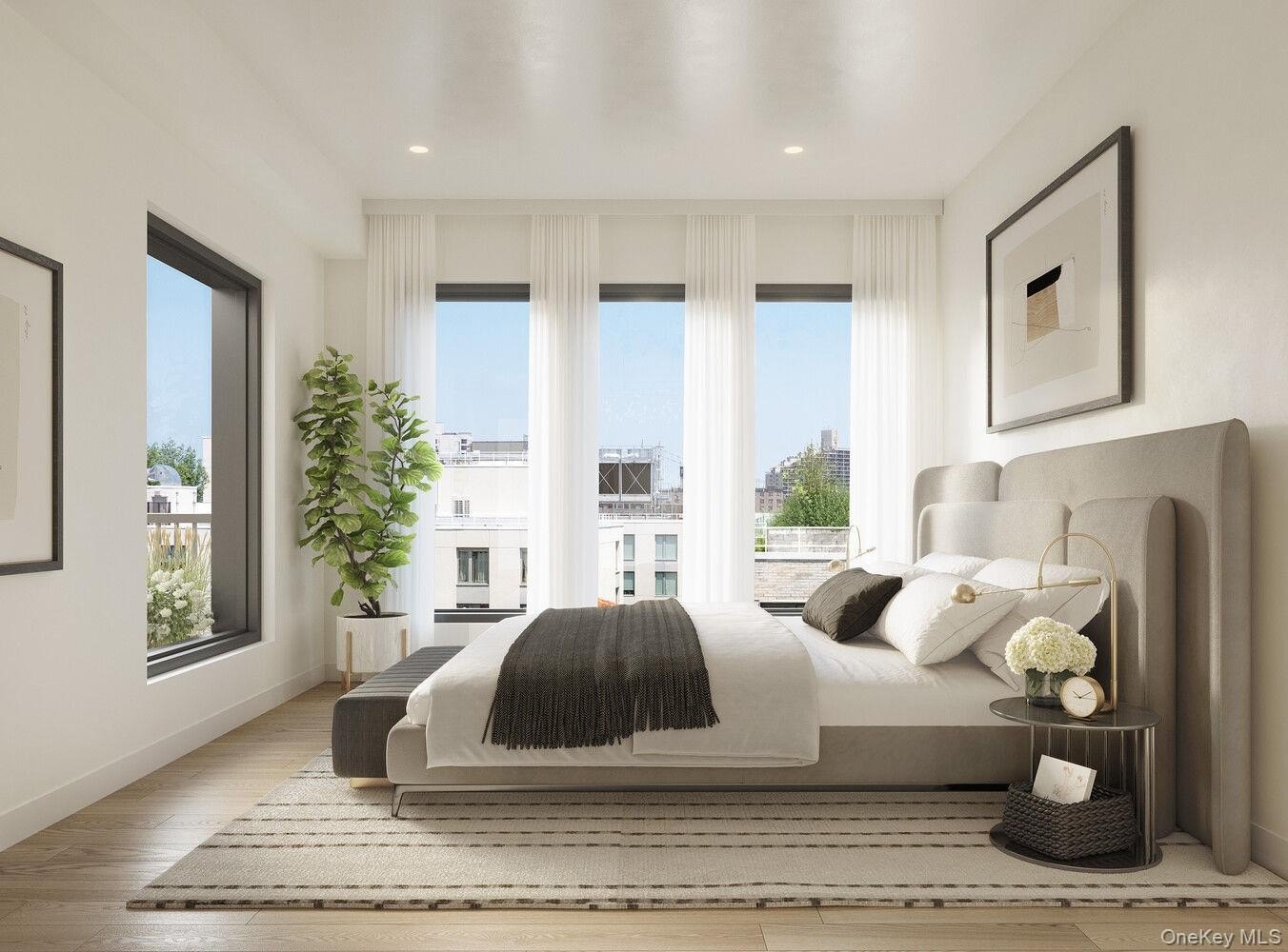 Introducing Residence 1A at VELA, a brand new 2-bedroom and 2-bathroom condo in Astoria, a sanctuary that seamlessly blends the elegance of West Astoria with the allure of modern design. The entryway provides a coat closet and foyer leading into the kitchen. Outfitted with maintenance-free quartz countertops and backsplash that harmonizes perfectly with sleek imported chestnut and white-laqcuer cabinets, the open kitchen is the perfect place to prep a delicious meal. Custom niches are built into multiple walls to maximize storage and provides unique detailing. State-of-the-art stainless steel appliances include a Bertazzoni gas oven and paneled dishwasher- the stackable washer and dryer is whisper quiet and efficient. And for that dash of Nordic charm- Scandinavian-designed kitchen hardware adds a subtle yet significant touch throughout. Wide plank engineered oak floors, large framed windows, and a well designed layout show off 1,132 square feet of meticulous design. The primary bedroom accommodates king-sized furniture and boasts a large closet and a ton of natural light via its huge windows gives extra dimension. In the primary bath, luxury is redefined- imported porcelain tiles and sleek double vanities set off a clean modern glass shower with a built-in niche and Moen fixtures and hardware. The equally spacious secondary bedroom offers versatility and comfort. The guest bath features a modern, timeless finish with neutral tones, inviting you to indulge. What truly sets this unit apart is its expansive backyard, the only one of its kind in the entire building and neighborhood, offering an exceptional outdoor space rarely found in the area. With 29 distinctive units presented by the esteemed Mortar Group, VELA effortlessly weaves innovation, luxury, and contemporary artistry into Astoria's iconic landscape and features private outdoor space for every home. Residents at VELA enjoy an array of amenities and direct access to the maturing Astoria waterfront. Amenities include a state-of-the-art fitness center with Peloton bikes, dedicated yoga studio, a fabulous roof deck with Manhattan skyline views and barbecue grills, package room and bike storage. Additional services include a virtual doorman system, parking and private storage units. Touted as one of the most desirable residential areas, western Astoria offers a quick commute to Manhattan, Queens and Brooklyn via ferry, bus and subways, as well as easy access to highways, shopping, parks and local restaurants.