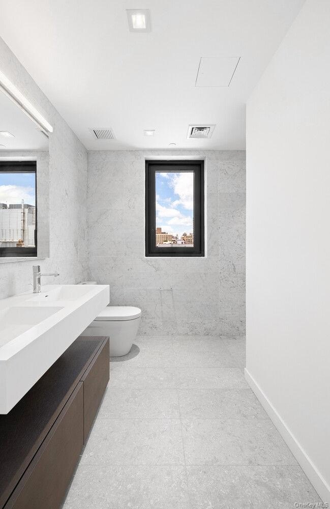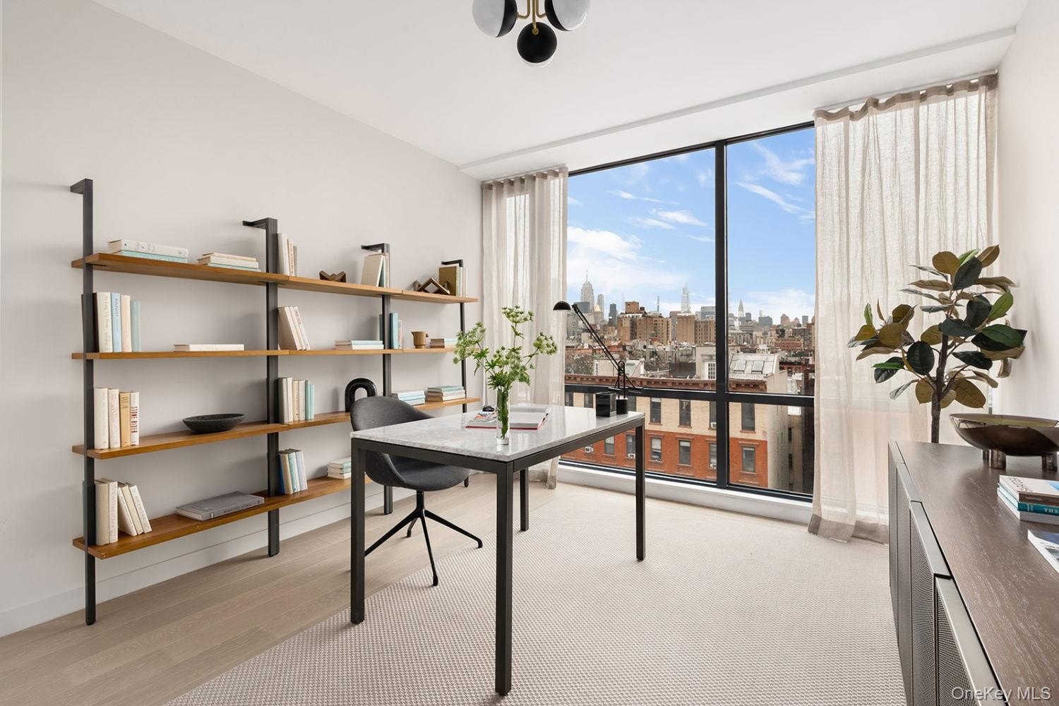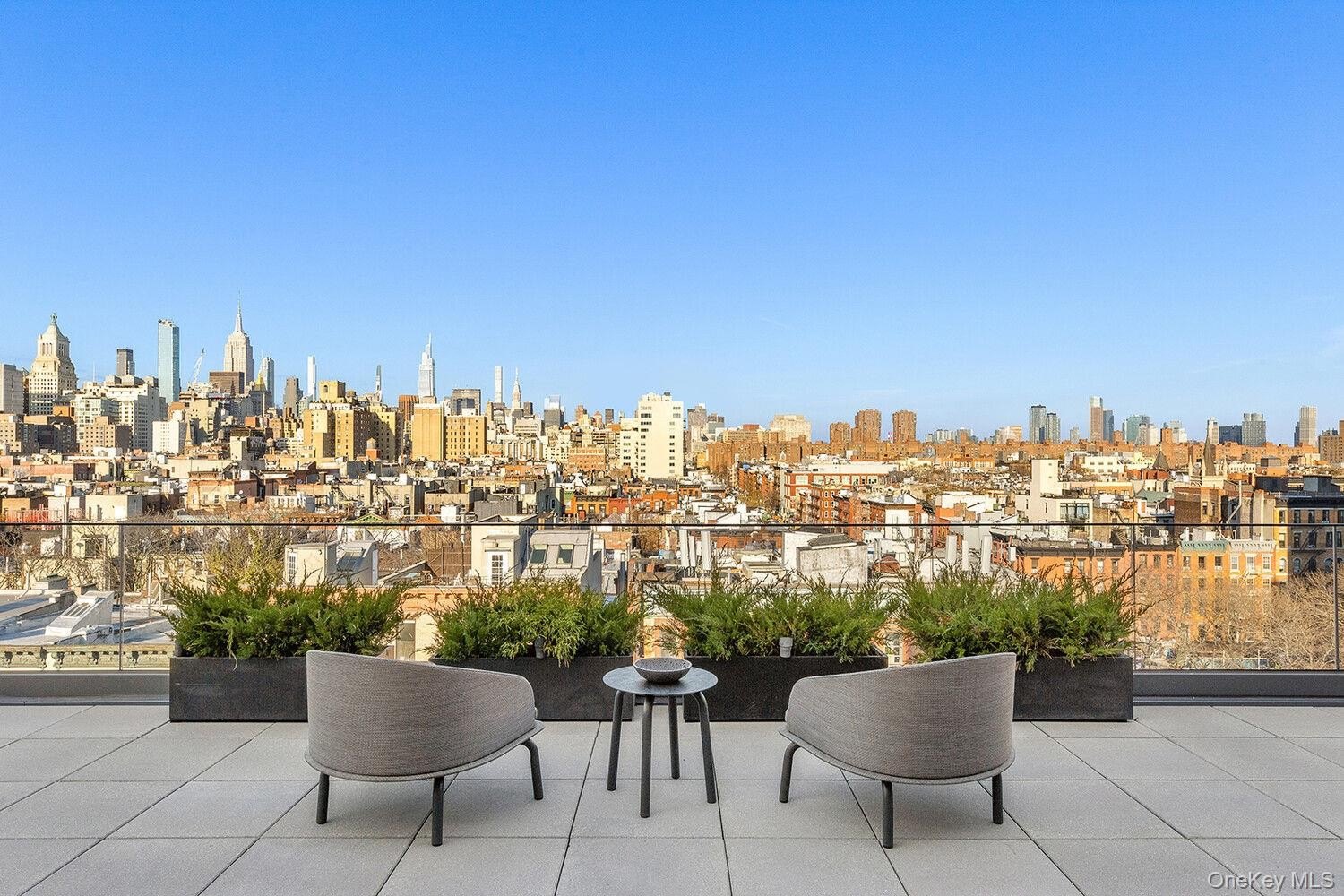 Ciao, East Village! Italian Modernism Redefined Private Roof Terrace with STUNNING views Flooded with Light Experience the pinnacle of East Village sophistication in this extraordinary 2.5-bedroom plus dining room and atrium, 2.5-bathroom penthouse at 75 First Avenue-an architectural statement of modern Italian luxury. With interiors by famed designer Stefano Pasqualetti, this residence captures refined European minimalism and luminous urban living. Natural light floods through floor-to-ceiling windows, illuminating a seamless open-plan layout with wide-plank light gray oak floors and elegant finishes throughout. Enter through a gracious foyer with a powder room and coat closet that opens into an expansive living, dining, and kitchen area designed for effortless entertaining and everyday comfort. A sunlit dining alcove doubles perfectly as a private home office. The chef's kitchen combines artistry and utility, with an eat-in peninsula, white and beige matte lacquer cabinetry, Calacatta Oro marble surfaces, a sleek Fantini faucet, and premium Miele appliances-all crafted to elevate your culinary experience. The primary suite is a private sanctuary featuring a custom walk-in closet and a windowed en-suite bath adorned with a bespoke double vanity, infinity drain shower, and a symphony of Nublado Raw marble and Piasentina stone finishes. The secondary bedroom also includes a walk-in closet and an elegant en-suite bath. Ascend a stylish staircase to the tranquil solarium-an intimate glass retreat-opening onto the show-stopping rooftop terrace. This private outdoor oasis overlooks the East Village with iconic New York Skyline views to the Empire State Building and beyond. There is endless potential for alfresco dining, yoga at sunrise, or sunset gatherings under the stars. 75 First Avenue stands as a striking glass cantilever condominium offering 22 distinguished residences in one of downtown's most coveted addresses. Amenities include a 24-hour doorman, residents' lounge with a travertine fireplace, private dining area and wet bar, fitness center, landscaped roof deck, bike room, and additional storage. Moments from Tompkins Square Park, the Bowery, NoHo, LES, Nolita and vibrant culinary and cultural destinations, life at 75 First Avenue is a rare blend of European elegance and East Village creative energy. Nearby subway options include the F and 4/6 lines. Pets welcome.