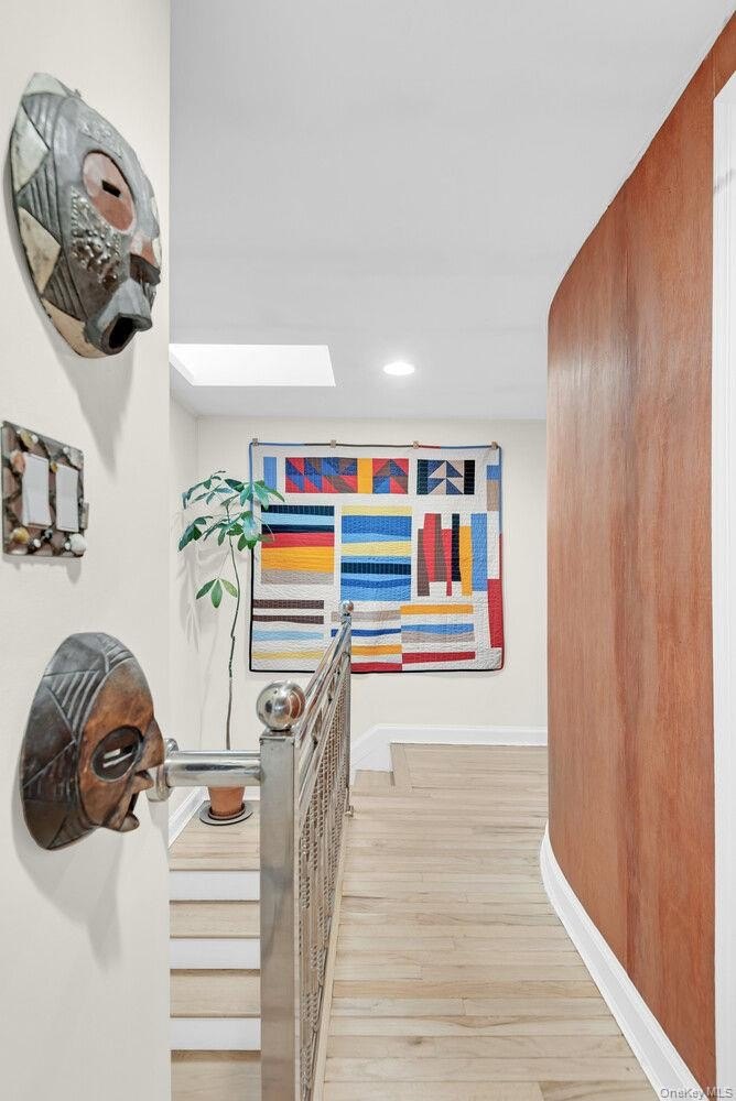 **Nestled discreetly on one of New York City's extremely rare residential unpaved roads, this endearing standalone home boasts sweeping Manhattan skyline views from across the gently lapping shores of Jamaica Bay. Located in the very heart of Rockaway Beach, this two bedroom, one and a half bath home offers a welcomingly serene aura on this quiet and fabled block.** **Upon entering, residents and guests are greeted by an expansive, open concept living room and dining area boasting a traditional woodburning fireplace; ideal for those quiet, off-season evenings or for festive gatherings. Recently renovated, oversized Anderson display windows offer an abundance of warmth and natural light, cast upon newly installed, natural finish oak flooring throughout. The thoughtfully spaced, gourmet kitchen offers a stainless steel appliance package with ample cabinetry storage and plenty of space for customization.** **The primary suite on the second floor offers water views featuring custom millwork and built in storage fashioned in stunning mahogany and exotic kubuk hardwoods. A secondary bedroom or office adorns the stylishly curved, wood-paneled hallway with skylights indulging in natural light. A full bath with walk-in shower is located on the upper floor, and powder room on the first floor.** **The semi-finshed, 450 SF basement contains laundry as well as ample storage for surfboards, fishing and recreational gear with a secondary egress to the paved perimeter of the home.** **Conveniently located to restaurants, nightlife, JFK, public transport and the NYC ferry - scheduled to run from the Rockaways to the Upper East Side beginning in December. Do not miss your opportunity to own on this most pleasant block on Rockaways' treasured Dormans Court.**